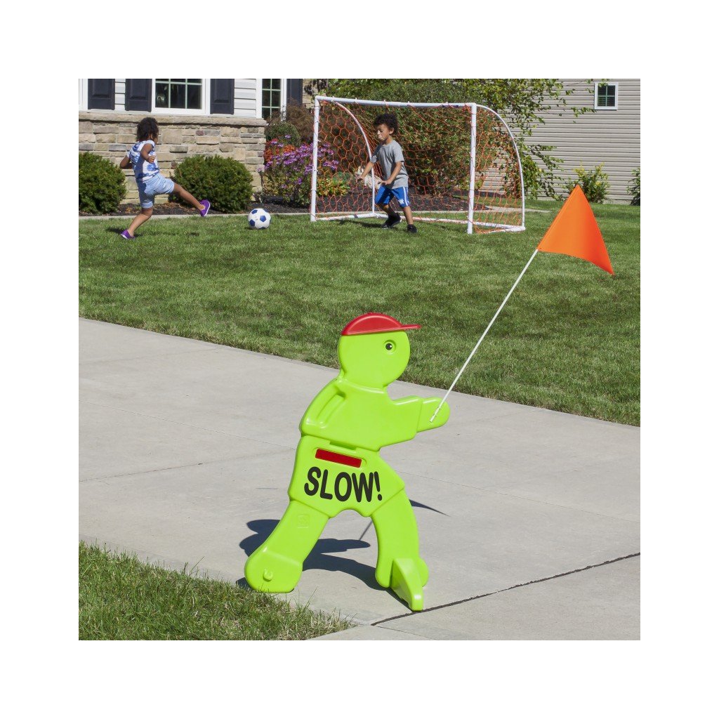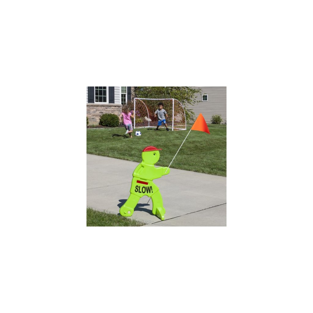 Tento plastový pomocník v neónovej farbe dá signál, že sú deti blízko a upozorňuje tak vodičov, aby spomalili a boli opatrní pri prechádzaní vašou ulicou. Či už ste doma, pri kempovaní alebo blízko ihrísk – nastavte bezpečnostnú značku Safety Sam, ktorá vodičom pripomenie, aby v oblasti dbali na zvýšenú opatrnosť. Fluorescenčný povrch s reflexnou nálepkou a červenou výstražnou zástavkou je vždy viditeľná, aby upozornila vodiča a ostatných ľudí okolo. Umiestnite Safety Sam na rušnú križovatku blízko škôlky alebo školy alebo dajte von zakaždým, keď sa deti hrajú vonku Vďaka ľahkému telu a rukoväti ho ľahko umiestnite kamkoľvek. Pre optimálnu účinnosť sa odporúča vždy uschovať, akonáhle deti skončia, aby bola postava viditeľná iba počas hry. Široká základňa pojme piesok, aby sa zabránilo prevráteniu Rozmery: 46,4 x 94 x 121,9 cm (s vlajkou), 46,4 x 61,6 x 81,9 cm (bez vlajky)Dodatočné parametre