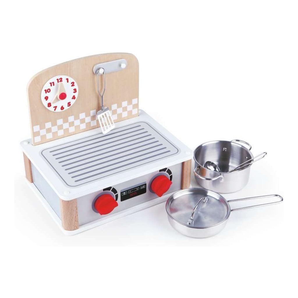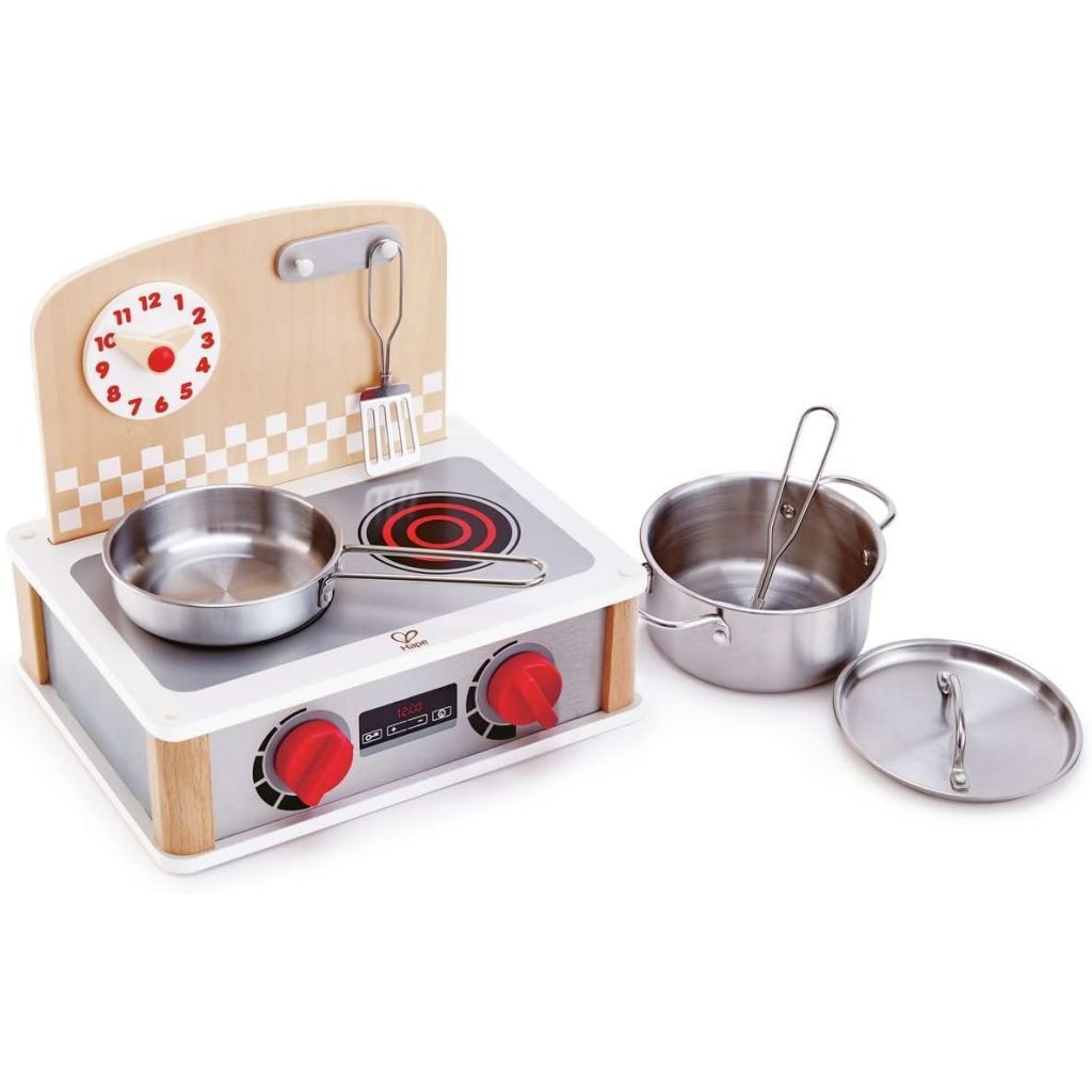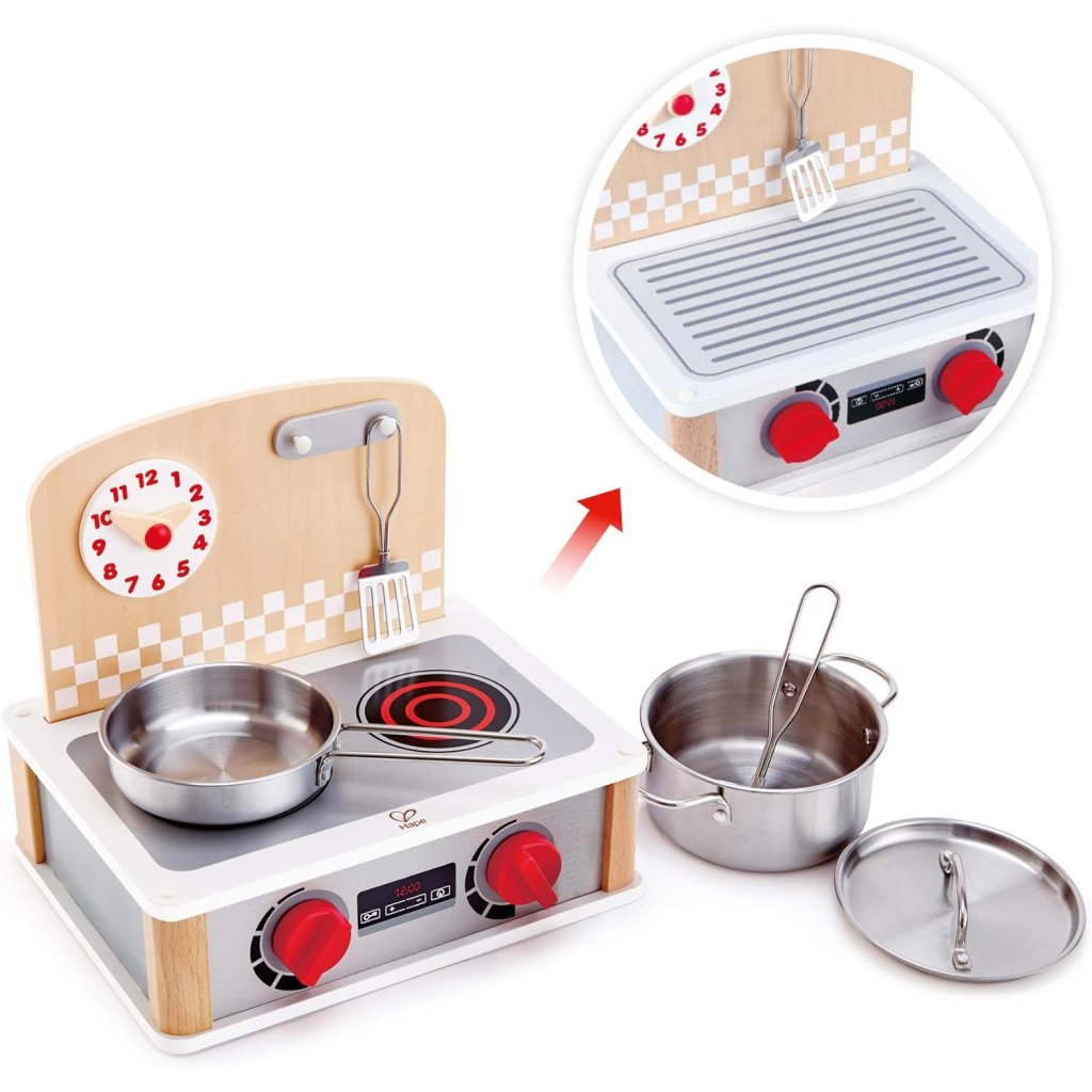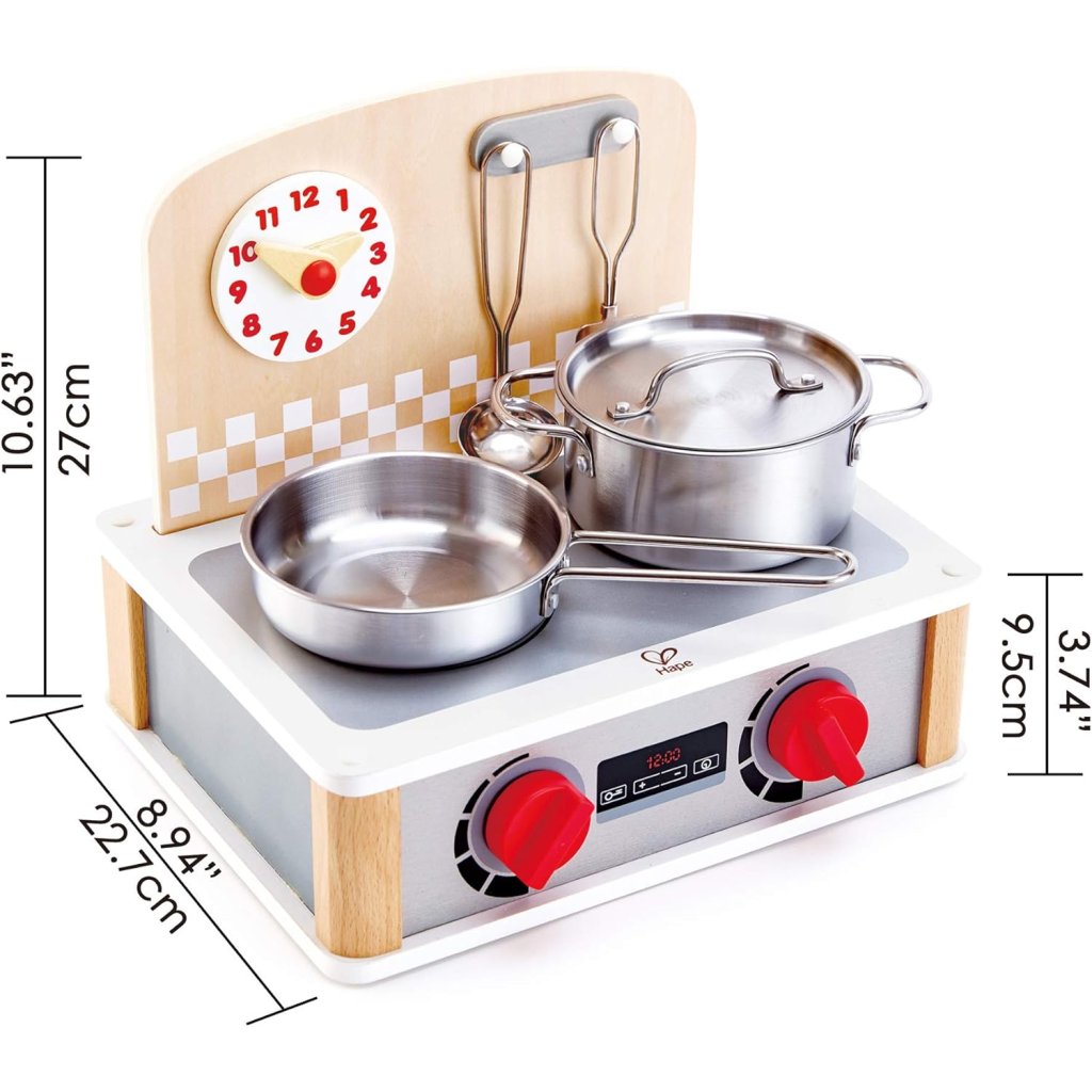 Kuchynka disponuje dvoma platničkami a otočnými gombíkmi. Sada riadu súčasťou: panvica, hrniec s pokrievkou a obracačky. Nastaviteľné hodiny Moderný design, kvalitné spracovanie, odolný materiál Podporuje mechanické zručnosti a rozvíja jemnú motoriku Vyrobené z kvalitného a odolného materiálu. Rozmery balenia: 30 × 23 × 26 cm. Vhodné pre detí od 3 rokov. Spoločnosť Hape patrí medzi popredných výrobcov detských hračiek. Hračky vyrába prevažne z udržateľných materiálov. Na výrobu sa používa bambusové drevo. Hračky sú navrhnuté tak, aby boli šetrné k životnému prostrediu. Sú veľmi kreatívne, vyznačujú sa inovatívnym dizajnom a precíznym spracovaním. Hračky Hape nielen že spĺňajú, ale často aj prekračujú, najprísnejšie medzinárodné štandardy pre kvalitu a bezpečnosť.Dodatočné parametre