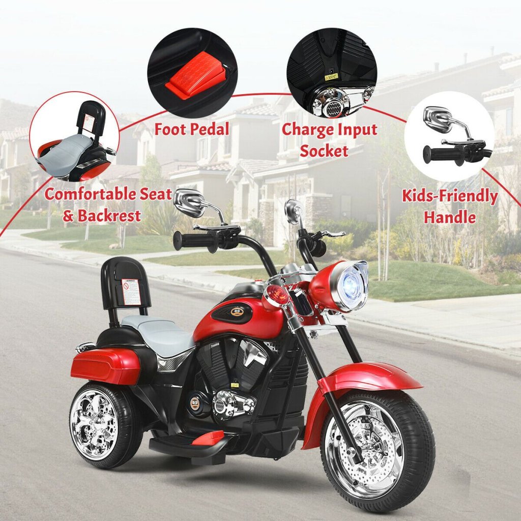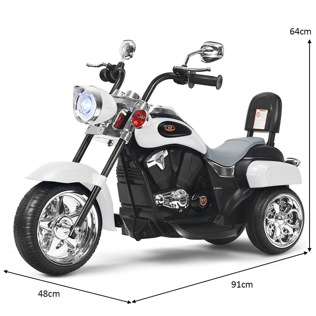 Tota motorka je ideálna pre malých motorkárov! Deti vďaka pedálu a riadidlám majú ovládanie motorky pod palcom. Plynulý rozjazd zabraňuje silnému zrýchleniu. 3 PP kolesá odolné proti opotrebeniu sú vhodné pre všetky druhy povrchov, vrátane asfaltu a cementu. Pokiaľ je batéria príliš slabá, možno motorku tiež ľahko tlačiť pomocou rukoväte. Táto motorka na batérie je skvelým darčekom pre deti vo veku od 3 do 8 rokov. Toto vozidlo je perfektným darčekom pre deti k narodeninám alebo sviatkom. Parametre: Farba: biela Materiál: PP, železo Rozmery: 91 x 48 x 64 cm Rýchlosť: 2,5 - 3 km/h Batéria: DC 6V, 4,5AH Čistá hmotnosť: 6,2 kg Nosnosť: 30 kg Odporúčaný vek: od 3 rokov Obsah balenia: 1 x motocykel 1 x nabíjačka 1 x inštrukcieDodatočné parametre