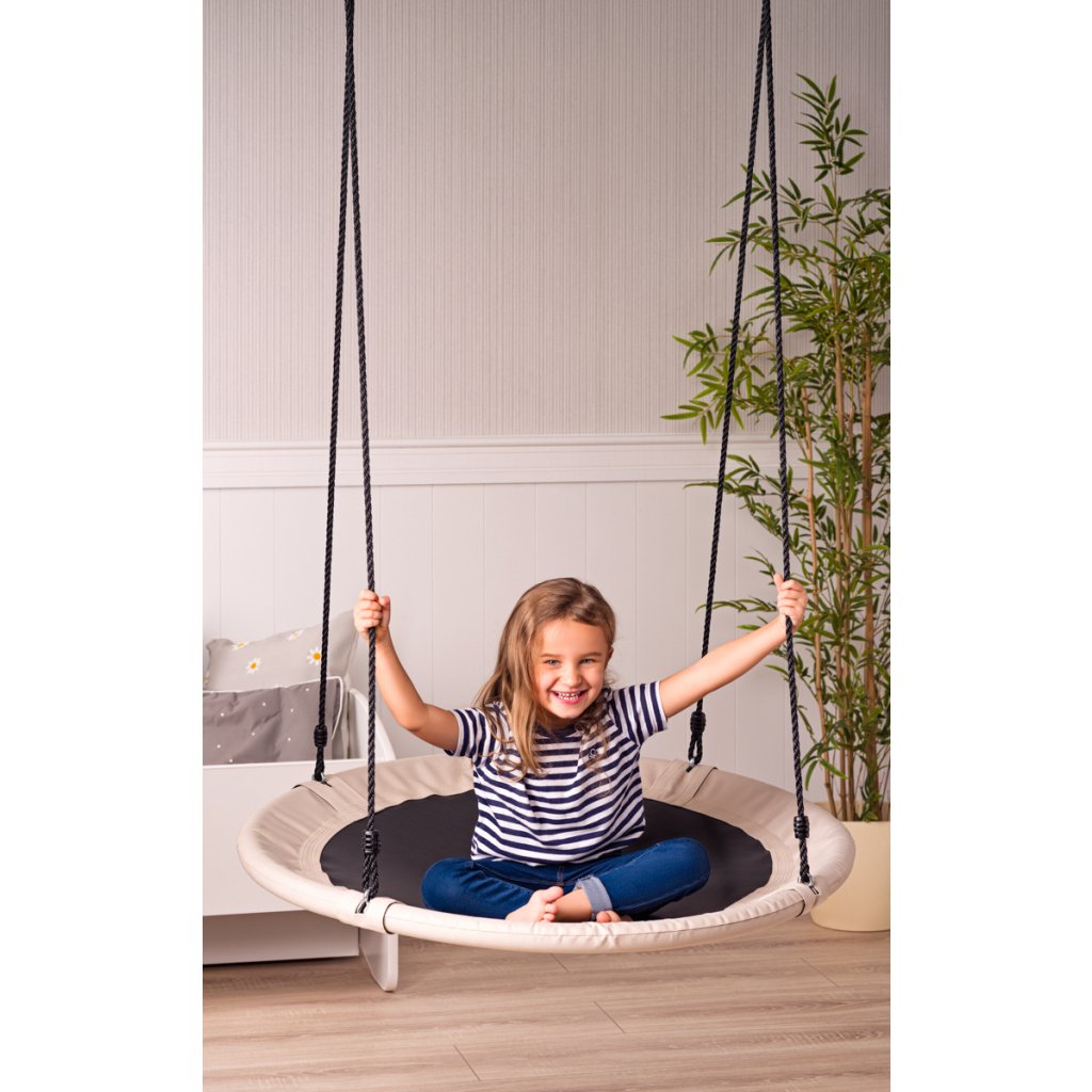 Závesný hojdací kruh s priemerom 100cm, v tvare hniezda, na ktorom sa deti nielen pohopu, ale môžu si aj oddýchnuť v ľahu. Prekvapí Vás nielen svojou veľkosťou, ale aj komfortom. Pevná tkanina zaistí pohodlné pohojdanie, ale aj posedenie a relaxáciu. Hojdačka je určená na vonkajšie použitie, je vhodná pre 1 - 2 deti. Priemer: 100 cm Maximálna nosnosť 150 kg. Nastaviteľné laná. Dĺžka lán 95-155 cm. Materiál: impregnovaná látka s UV filtrom Vek: 3+Dodatočné parametre