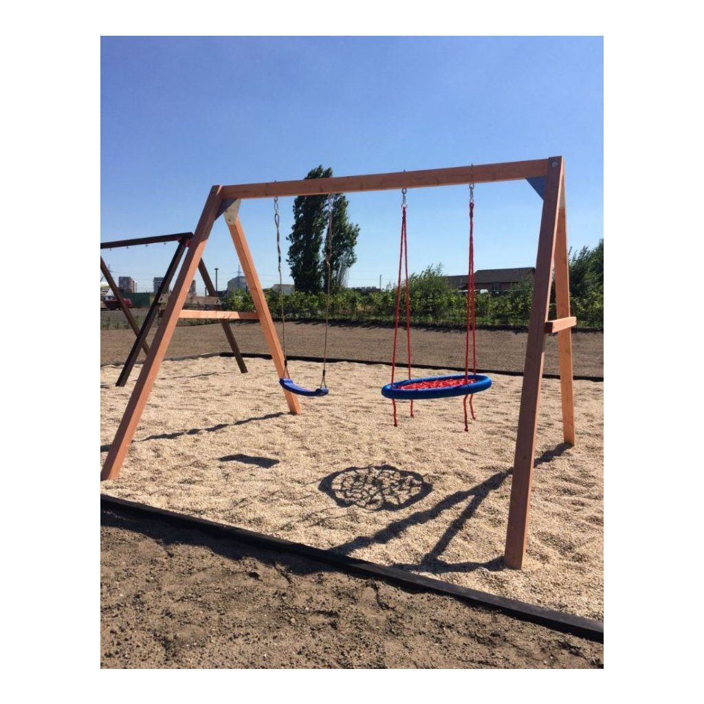 Detskú, priestorovo nenáročnú hojdačku Swingset ( hojdačkový rám ) možno jednoducho umiestniť na takmer akúkoľvek záhradu. Drevený rám umožňuje zavesenie dvoch kusov závesných hojdačiek či herných prvkov podľa Vášho výberu.