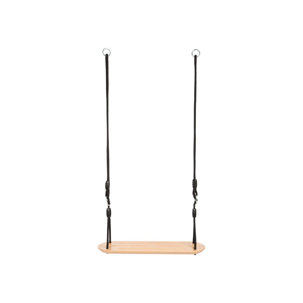 Vzlietnite vysoko do oblakov. Táto krásna a priestranná hojdačka z dreva je klasická hojdačka, ktorá vyniká kvalitným vzhľadom vďaka prírodnému drevu v kombinácii s čiernymi lanami. Robustné laná sú výškovo nastaviteľné. Kovový krúžok umožňuje hojdačku rýchlo zavesiť aj zložiť. Je vyrobená z robustného masívneho dreva a lana z materiálu odolného voči poveternostným vplyvom, vhodná do interiéru aj exteriéru. Vďaka veľkej sedacej ploche a nosnosti je ideálna aj pre dospelých. Trénuje ovládanie tela, silu a obratnosť. Kto sa dokáže rozhojdať najviac? Drážky na povrchu sedadla zaisťujú, že je hojdačka protišmyková a bezpečná. Hlavné vlastnosti: -nastaviteľné laná -z materiálu odolného voči poveternostným vplyvom -trénuje ovládanie tela, silu a rovnováhu -zábava vhodná na hranie doma aj vonkuDodatočné parametre