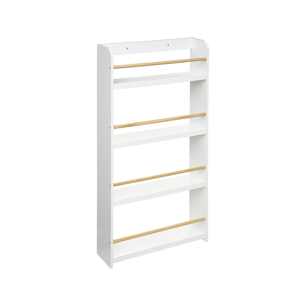 Nádherná knižnica v bielom prevedení z kolekcie Gold, je tak veľmi roztomilá, že by ju chcel mať každý vo svojej izbičke. Vaše ratolesti si môžu do knižnice upratovať svoje obľúbené hračky alebo knižné príbehy. Komoda má štyri police ideálne pre knižky, obľúbené figúrky a hračky, ktoré deti chcú mať neustále na očiach. Napokon začne upratovanie deti baviť!!! Môžete zladiť celú izbu z rovnakej kolekcie. Kvalitou produktu sme si istí, a to vďaka značke Atmosphera, ktorá má dlhoročnú históriu. Parametre: Rozmery: dĺžka: 55 x šírka 15 x výška 118 cm Materiál: drevo - MDFDodatočné parametre