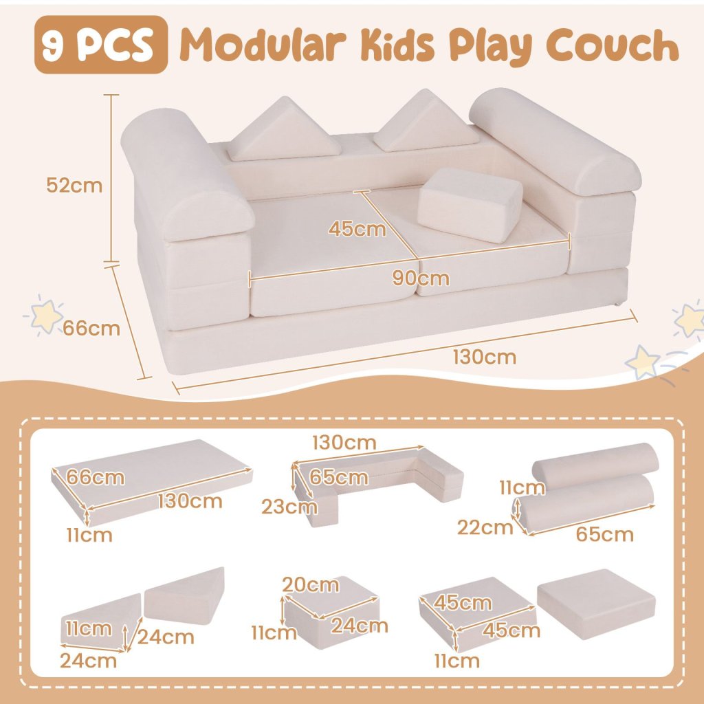 Táto modulárna detská pohovka je dokonalou kombináciou pohodlného nábytku a zábavnej stavebnice, ktorá podporuje kreativitu, pohyb a hru detí. Vďaka premyslenému dizajnu pozostávajúcemu z viacerých mäkkých, ale pevných častí môžu deti ľahko vytvárať všetky druhy tvarov, konštrukcií a herných prostredí podľa vlastnej fantázie – od domčekov a tunelov po stoly a lezecké konštrukcie. Keď si chcú oddýchnuť, môžu ju jednoducho poskladať do pohodlného sedadla alebo ležadla. Všetky časti sú vyrobené z vysoko kvalitných, bezpečných a ľahko umývateľných materiálov, ktoré vydržia každodenné detské hry. Táto multifunkčná pohovka rastie s vaším dieťaťom a prináša nielen funkčnosť do každej detskej izby, ale aj nekonečné možnosti hry a učenia sa prostredníctvom zábavy. Špecifikácie: Farba: béžová Materiál: pena, semiš Rozmery produktu: 130 x 66 x 52,5 cm Vhodný vek: od 3 rokov Čistá hmotnosť: 9,5 kgDodatočné parametre