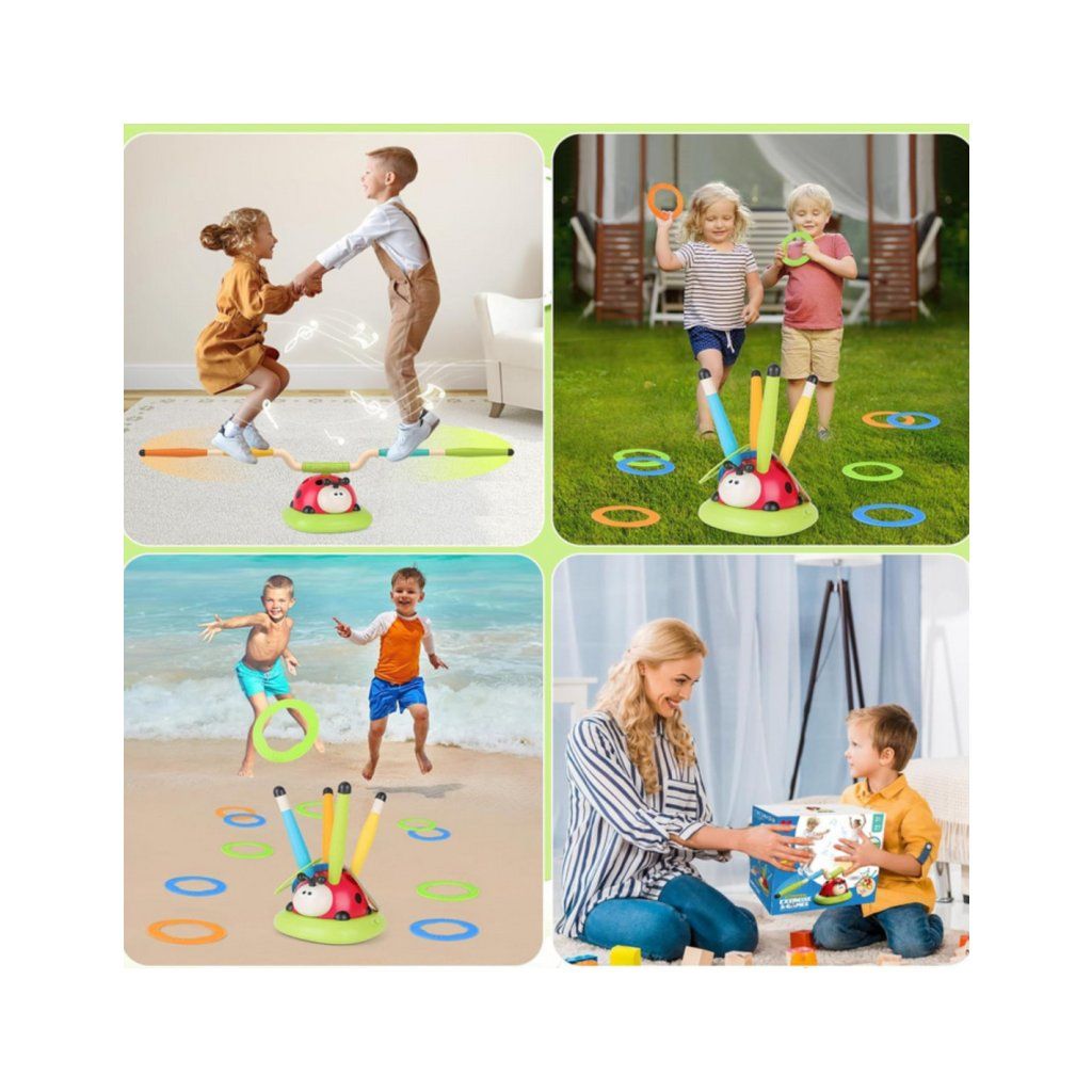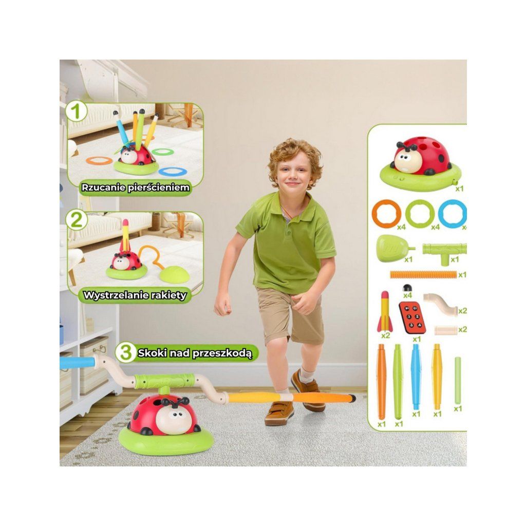 Skákacia hra 2v1 Lienka je multifunkčná hračka, ktorá prináša deťom hodiny aktívnej zábavy a zároveň rozvíja ich motorické schopnosti. Táto interaktívna hra kombinuje dve obľúbené činnosti - automatickú skákaciu hru a hru na presnosť, kedy deti hádžu na ciele a vystreľujú raketu. Roztomilá lienka, ktorá tvorí základňu hry, sa pri každom pohybe otáča a vytvára dynamickú a pútavú skúsenosť, ktorá deti motivuje k pohybu a súťaživosti. Hra podporuje rozvoj koordinácie oko-ruka, rovnováhy, rýchlych reakcií a celkovej motoriky. Vďaka kombinácii pohybu a zábavy deti získavajú nielen zábavu, ale aj zdravý pohyb, ktorý je pre ich vývoj veľmi prínosný. Táto hračka ponúka nekonečné možnosti hier, motivuje k aktívnemu pohybu a zábavným spôsobom podporuje rozvoj základných zručností. Parametre: Rozmery: 112 × 18 × 22 cm Obsah balenia: - 1 × Základňa – roztomilá lienka - 2 × otočné paže / vrhacie stĺpiky - 12 × Farebné obruče - 1 x diaľkové ovládanieDodatočné parametre