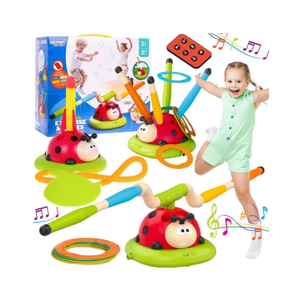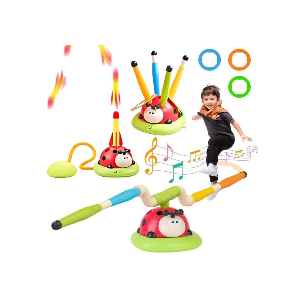 Detská záhradná hra zručnosti Lienka 3v1 (švihadlo, hod na cieľ, vystreľovač rakiet)