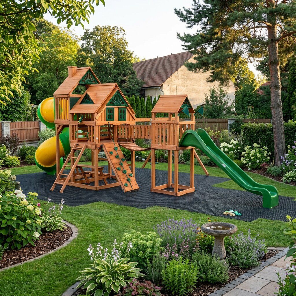 Náš tip - najvýhodnejší materiál pre vytvorenie dopadové plochy tlmiace pád z výšky až 3 m sú gumené zatrávňovacie dosky Grass a Saf. Ich inštalácia je jednoduchá pokládka na terén bez nutnosti zemných prác.