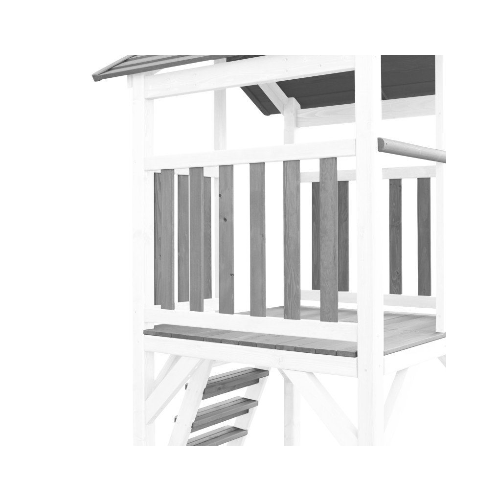 Zostava Beach Tower poskytuje vďaka otvorenému priestoru vrchného domčeka deťom pocit, akoby sa ocitli v skutočnom plážovom domčeku. Kombinácia bielo-šedého dreva dáva tejto veži letný vzhľad, vďaka ktorému každá záhrada žiari