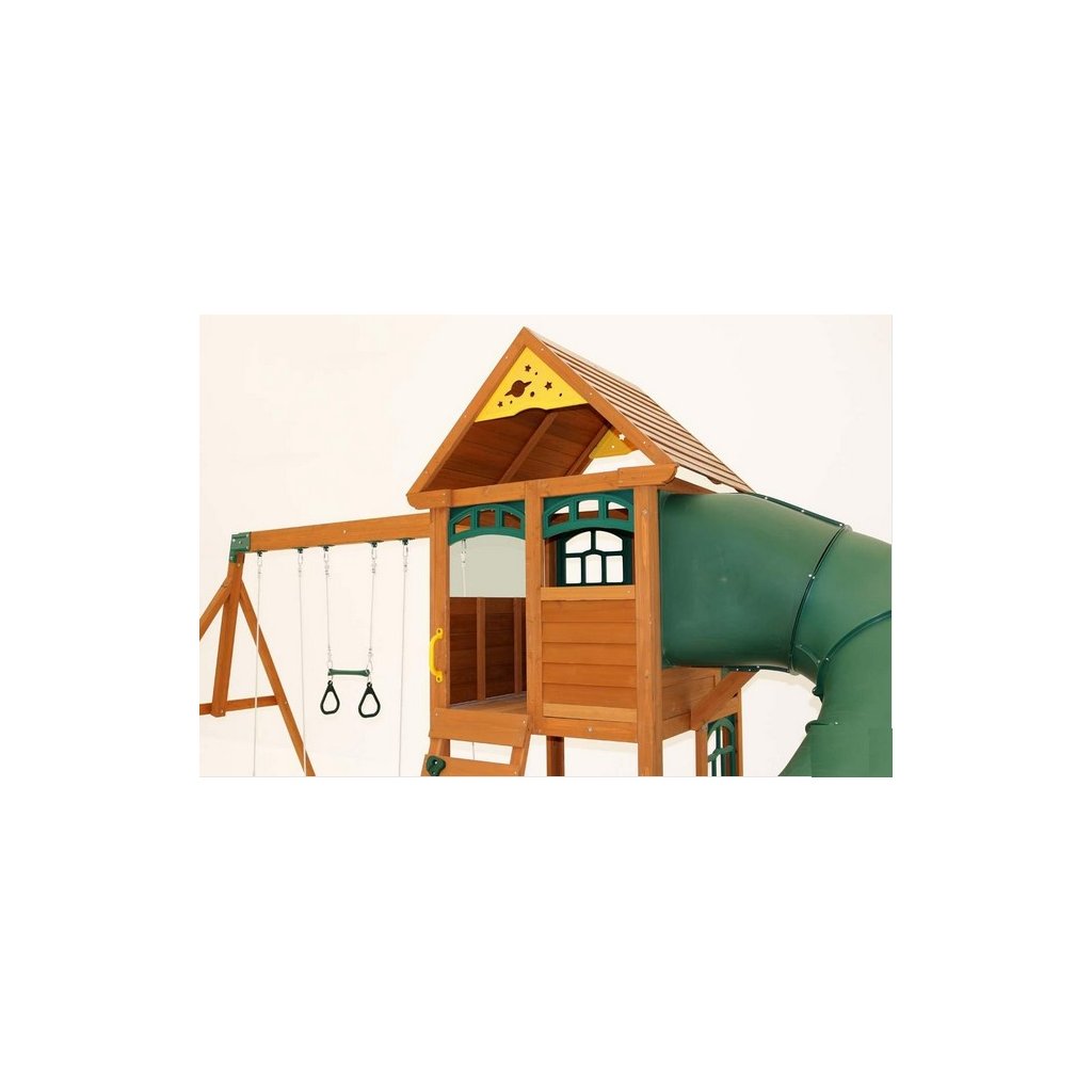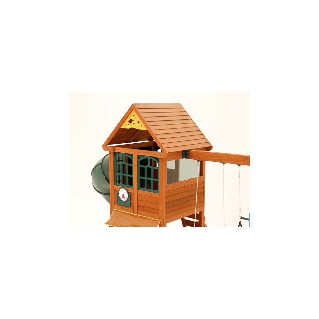 Luxusná herná veža je koncipovaná ako domček a je z prednej aj zadnej strany tvorená z panelov s mnohými integrovanými oknami.Herná veža je vybavená mimoúrovňovou pozorovateľnou pri nástupnej plošine tobogánu, z ktorej majú deti báječný výhľad do okolia.