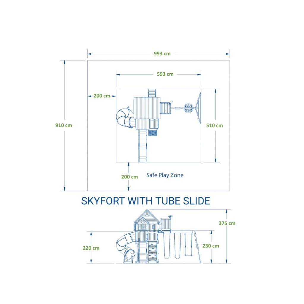 Luxusné ihrisko Skyfort ešte lepšie ako predtým!! Doplnené o tobogán s dĺžkou 365cm a 300 cm dlhou šmykľavkou patrí medzi hracie zostavy veľkosti XL.