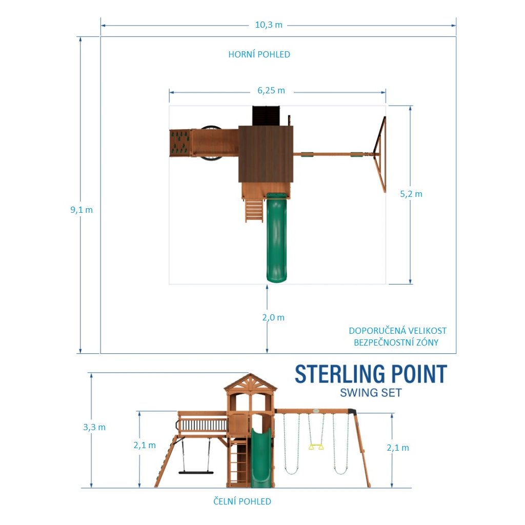 Detské ihrisko Sterling Point so šmykľavkou patrí medzi hracie zostavy veľkosti Large.