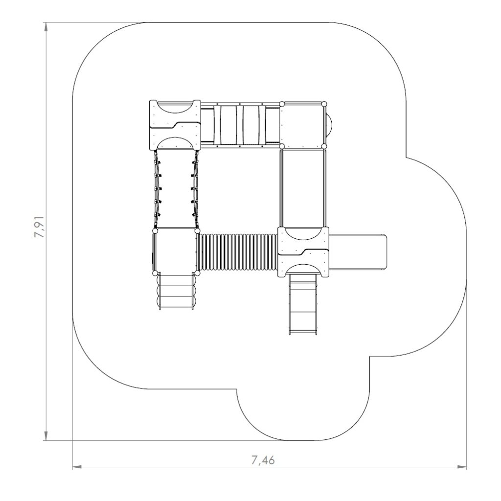 Sestava dětského hřiště se skluzavkou se skládá z těchto částí: 2 x domek se stříškou – podesta ve výšce 0,6 m 2 x domek bez stříšky – podesta ve výšce 0,6 m propojovací mostek s bočními sítěmi propojovací mostek pevný s bariérami lanový mostek s plastovými nášlapy prolézací tunel šikmá lezecká stěna skluzavka z nerezového plechu tl. 2 mm schody s bariérou Dětské hřiště se skluzavkou 11580 je vyrobené z odolné nerezové konstrukce, barevných HDPE desek a nerezového spojovacího materiálu. Dětské hřiště se skluzavkou 11580 je velmi pěkně vypracované, dětem nabídne mnoho možností ke hře - nerezovou skluzavku, přechod po pevném mostu s bariérou, pevném mostu s lanovým zábradlím, dobrodružném mostu s nášlapy nebo prolézacím tunelem mezi věžemi, vše je doplněno několika herními (interaktivními) panely. Vstup na sestavu zajišťují pohodlné schody s bariérou a také šikmá lezecí stěna s kameny. Sestava je vhodná pro dětská hřiště, pro děti všech věkových kategorií. Tuto herní sestavu ocení děti v mateřských školách, na dětských hřištích, ale i u restaurací nebo hotelů. Herní prvky z nerezové oceli, mají životnost 50let a jsou bezúdržbové !!! Herní prvky české značky SAPrimo jsou jedinečné svým materiálem, designem a především výrobce klade velký důraz na kvalitu výrobku. Konstrukce herního prvku je vyrobena z odolné nerezové oceli, která není nijak barevně povrchově upravena a nemůže tak docházet k tomu, že by se časem olupoval lak. Z nerezové oceli je rovněž veškerý spojovací materiál a závitové tyče lan a sítí. Upozornění - nerezovou skluzavku nikdy neumísťujte na přímé slunce, v letních měsících mohou na skluzavce vznikat vysoké teploty a hrající se děti by se mohli popálit! Skluzavku nejlépe natočte směrem na sever nebo ideálně sestavu umístěte do trvalého stínu. Výška pádu herní sestavy z nerezu - 11580 je 0,6 m, jako dopadové plochy dostačuje udržovaný trávník. Pokud na pozemku, kde chcete domek umístit není tráník doporučujeme zde položit pryžové desky, nebo 30 cm vrstvu kačírku, písku nebo drcené kůry. Dětské hřiště se skluzavkou - nerez 11580 je certifikované dle EN 1176 pro veřejná dětská hřiště.Dodatočné parametre