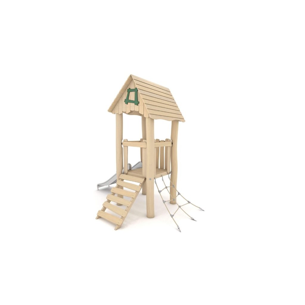 Velmi pěkně vypracovaná akátová sestava s nerezovou skluzavkou Weston je určena do zahrad mateřských a základních škol, na veřejná dětská hřiště, ale doporučujeme ji umístit i ke komerčním objektům - restauracím, hotelům, penzionům, a pod., kde se jistě stane lákadlem pro děti. Krásná masivní herní sestava s nerezovou skluzavkou z akátu - Weston je vyrobená z kvalitního a odolného akátového dřeva. Herní sestava je složena z těchto částí - věž se střechou, která je zabetonována pevně do terénu. Vstupy na sestavu jsou možné po šikmém dřevěném žebříku a nebo po šplhací síti. K sestavě je připojena kvalitní nerezová skluzavka, která je v ceně výrobku. Tato herní sestava je pro děti velmi atraktivní a zajímavá, může nahradit více herních prvků. Dřevo je ošetřené vysoce odolnou zdravotně nezávadnou lazurou. Upozornění - nerezovou skluzavku nikdy neumísťujte na přímé slunce, v letních měsících mohou na skluzavce vznikat vysoké teploty a hrající se děti by se mohli popálit! Skluzavku nejlépe natočte směrem na sever nebo sestavu umístěte do trvalého stínu. Výška volného pádu této sestavy s nerezovou skluzavkou Weston je 1 m a proto může herní sestava mít jako dopadovou plochu jen udržovaný trávník a není nutné tvořit speciální dopadové plochy. Pokud není na pozemku kvalitní trávník nebo hrozí jeho vyšlapání, doporučujeme zde položit pryžové zatravňovací desky Grass nebo Saf z naší nabídky. Sestava se skluzavkou na dětská hřiště Weston je certifikovaná dle EN 1176 pro veřejná dětská hřiště.Dodatočné parametre