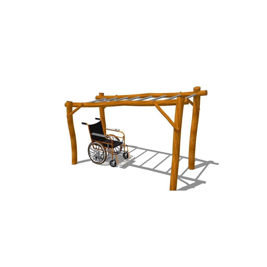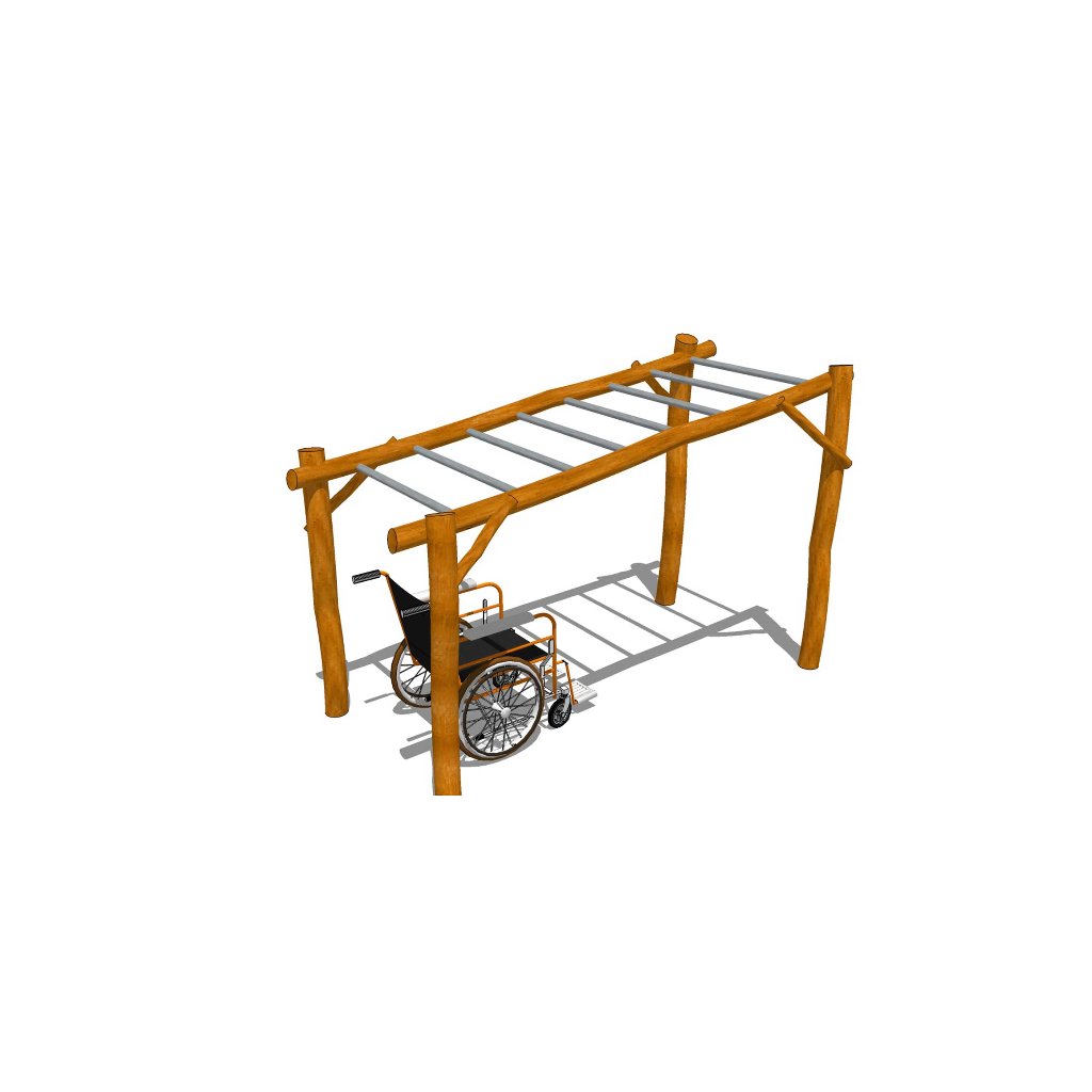 Kvalitní akátová sestava Prolézačka nejen pro hendikepované je určena do zahrad mateřských a základních škol, na veřejná dětská hřiště, ale doporučujeme ji umístit i ke komerčním objektům. Na šikmo umístěné ručkovací ploše mohou posilovat hendikepovaní na vozíku, ale i zdarvé menší děti. Jistě se budou na takovémto dětském hřišti všichni rádi setkávat a společně cvičit na této workoutové sestavě pro hendikepované. Zajímavě řešená a masivní šphací sestava Prolézačka nejen pro hendikepované I. je vyrobená z kvalitního a odolného akátového (dubového) dřeva a voděodolné překližky. Sestava obsahuje šikmo umístěný ručkovací žebřík s kovovými špruslíky, které jsou proti korozi ošetřené zinkem. Konstrukce sestavy je zabetonována přímo pevně do terénu. Dřevo je ošetřené vysoce odolnou slabovrstvou lazurou. Výška pádu Průlezky nejen pro hendikepované I. z akátového dřeva je 1 m, proto není nutné zřizovat dopadový tlumící povrch, stačí udržovaný trávník. Pokud není na pozemku kvalitní trávník nebo dochází k jeho vyšlapávání doporučujeme zde položit pryžové zatravňovací desky Grass nebo Saf z naší nabídky, viz. související zboží. Dětské hřiště je určeno pro děti od 6 do 15 let. Šplhací sestava na dětská hřiště Prolézačka nejen pro hendikepované I. z akátu je certifikovaná dle EN 1176 pro veřejná dětská hřiště.Dodatočné parametre