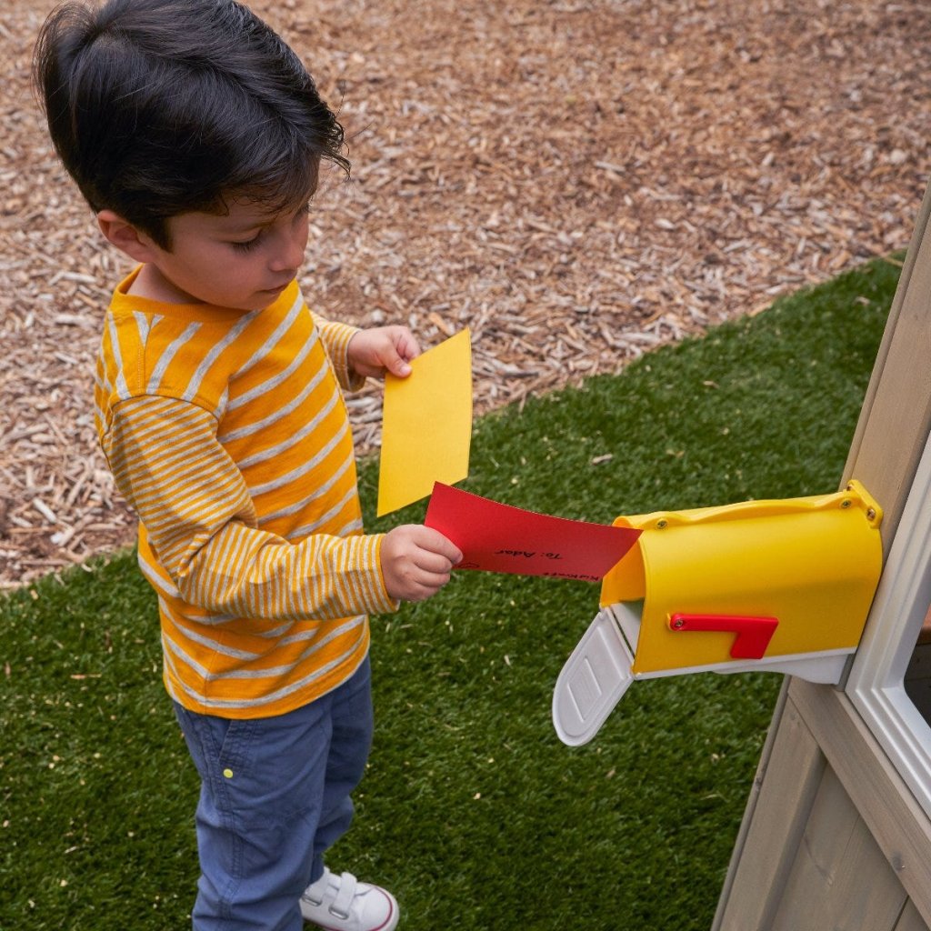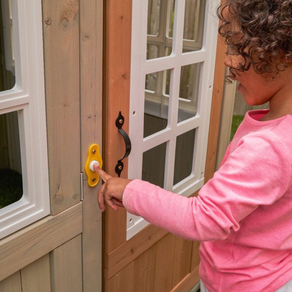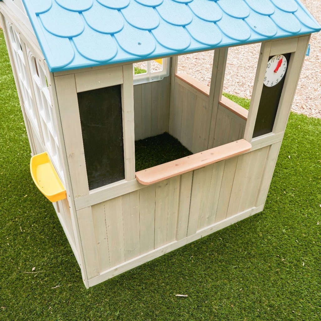 Môžu sa hrať na kaviareň, či bistro a rozprávať sa pri pultíku so svojimi priateľmi, zavolať kamarátom bezdrôtovým telefónom (atrapy). Neprekvapí ich ani nečakaná návšteva, ktorá sa ohlási dverným zvončekom. Ako správni hostitelia môžu deti svoju návštevu pohostiť dobrôtkami servírovanými na barový pultík, môžu si aj spoločne prečítať poštu, ktorú si vyzdvihnú v listovej schránke. Menu, ktoré budú deti servírovať môžu vypísať na tabuli, ktorá je súčasťou vybavenia domčeka, vrátane času servírovania - súčasťou domčeka sú aj hodiny s nastaviteľnými ručičkami. Vstup do domčeka je zaistený priestrannými dverami, rustikálne okná s hrantíkmi len dokresľujú ilúziu skutočného domu. Domček je tiež vybavený veľkým oknom francúzskeho typu a ďalšími okienkami. Strecha domčeka je v tyrkysovom prevedení. Celý domček je designovo sfarbený.