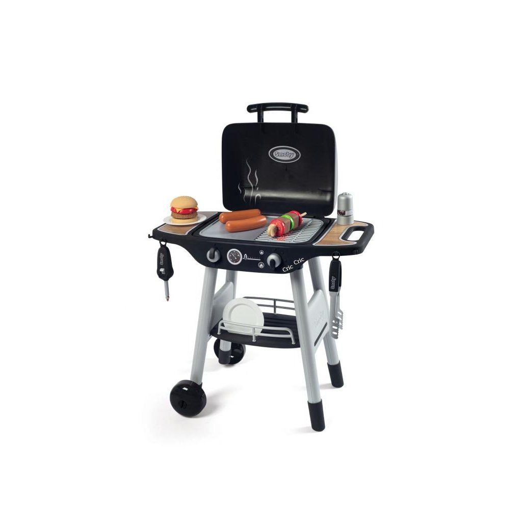 Detský gril s vekom, stolčekom na kolieskach a množstvom príslušenstva, kde sa môžu pripravovať najrôznejšie gurmánske špeciality. Set obsahuje 18 ks príslušenstva: makety potravín a grilovacie náčinie Rozmery: 50 x 72,2 x 37 cmDodatočné parametre