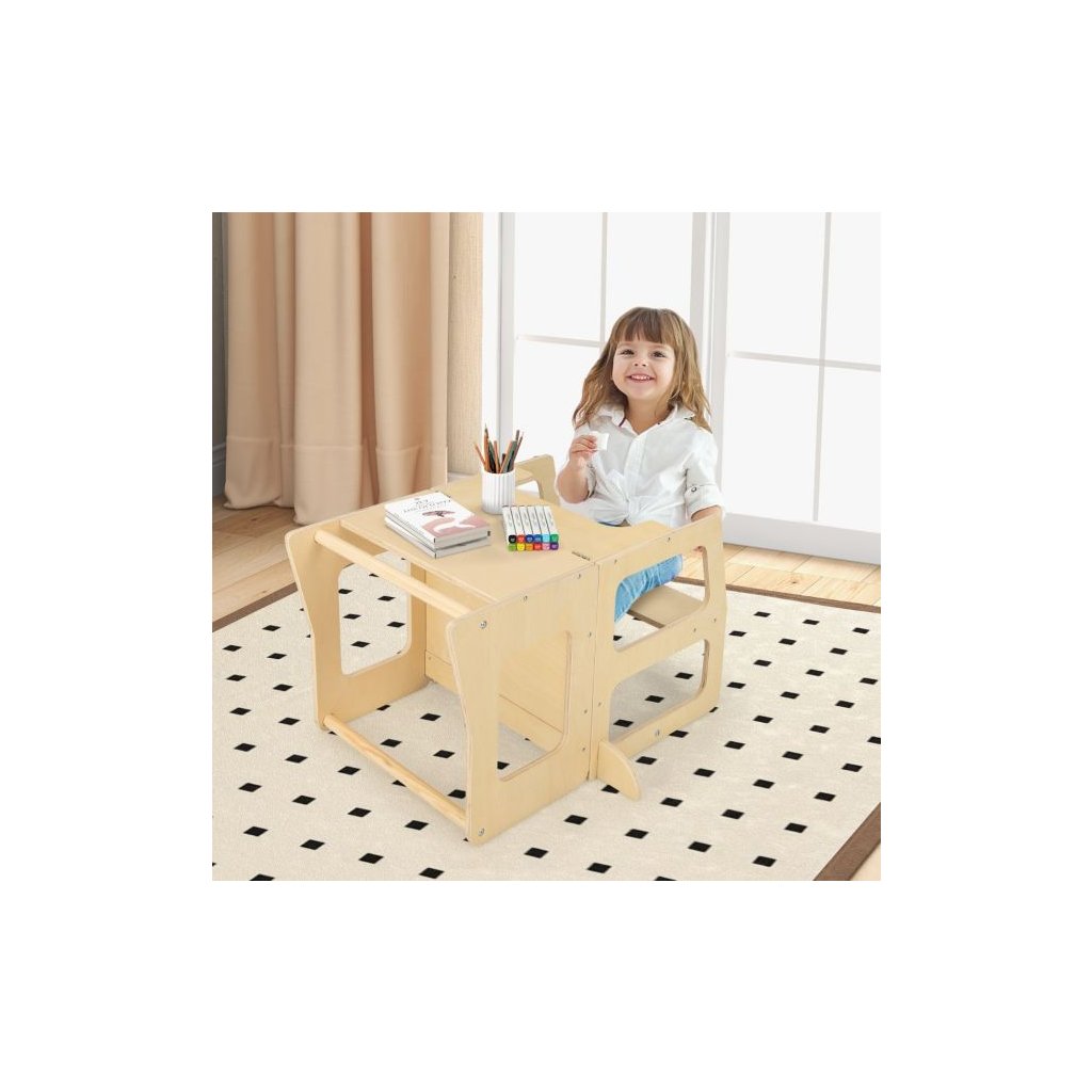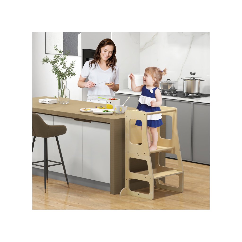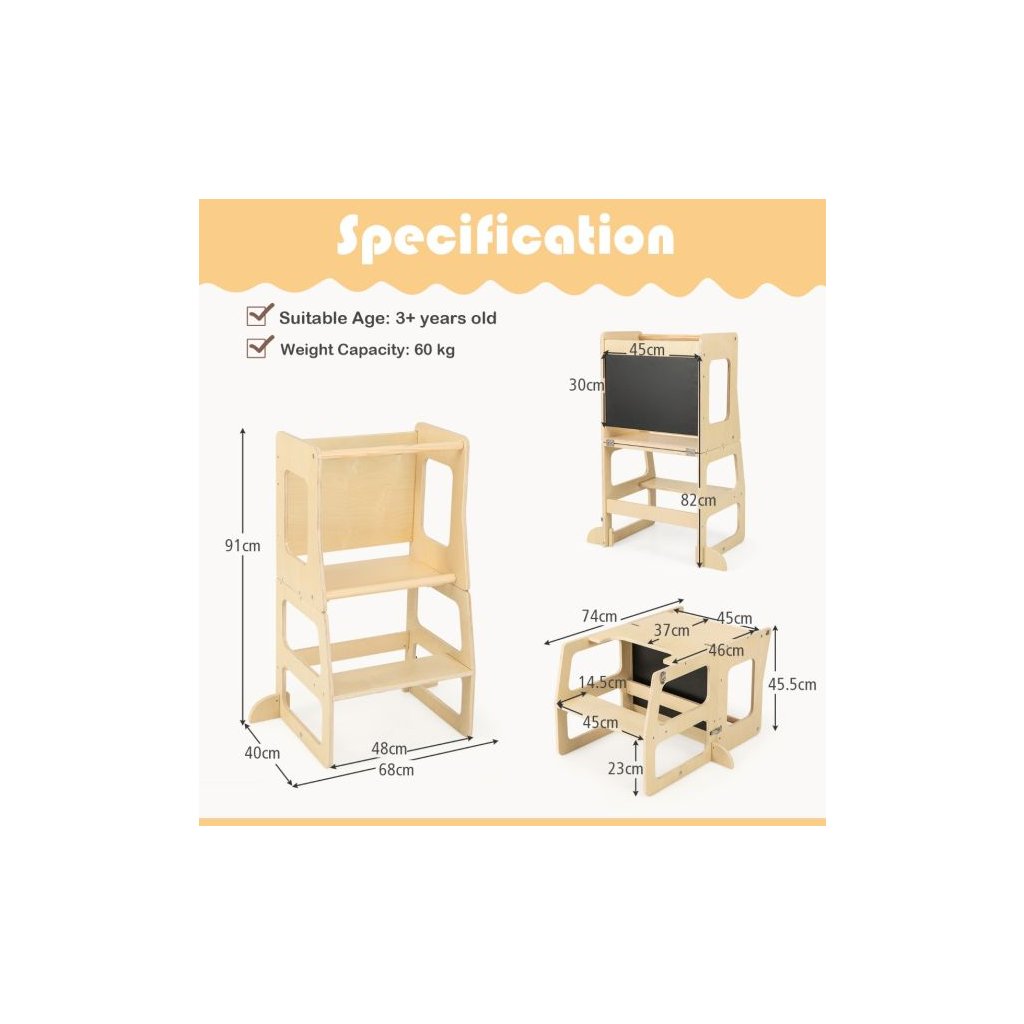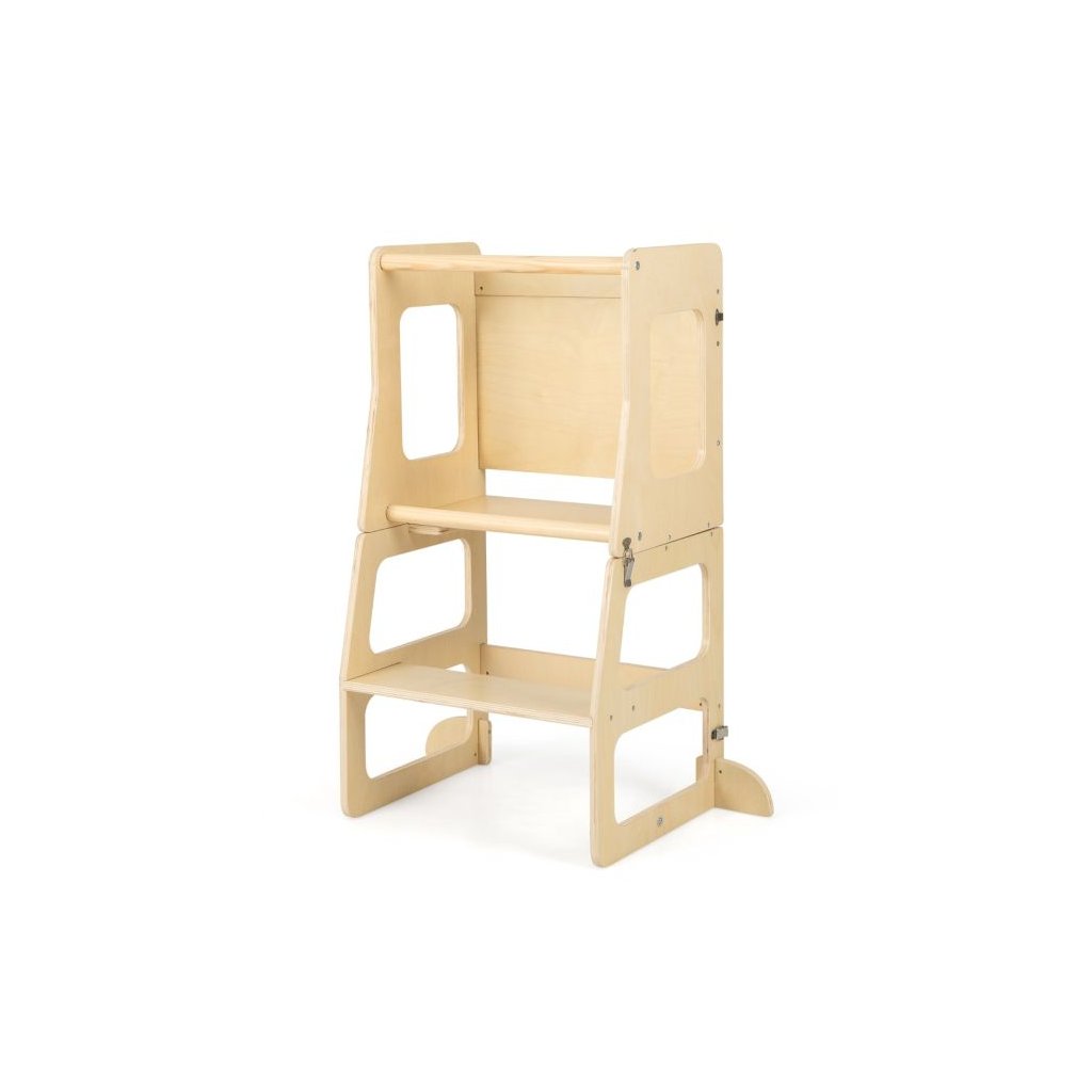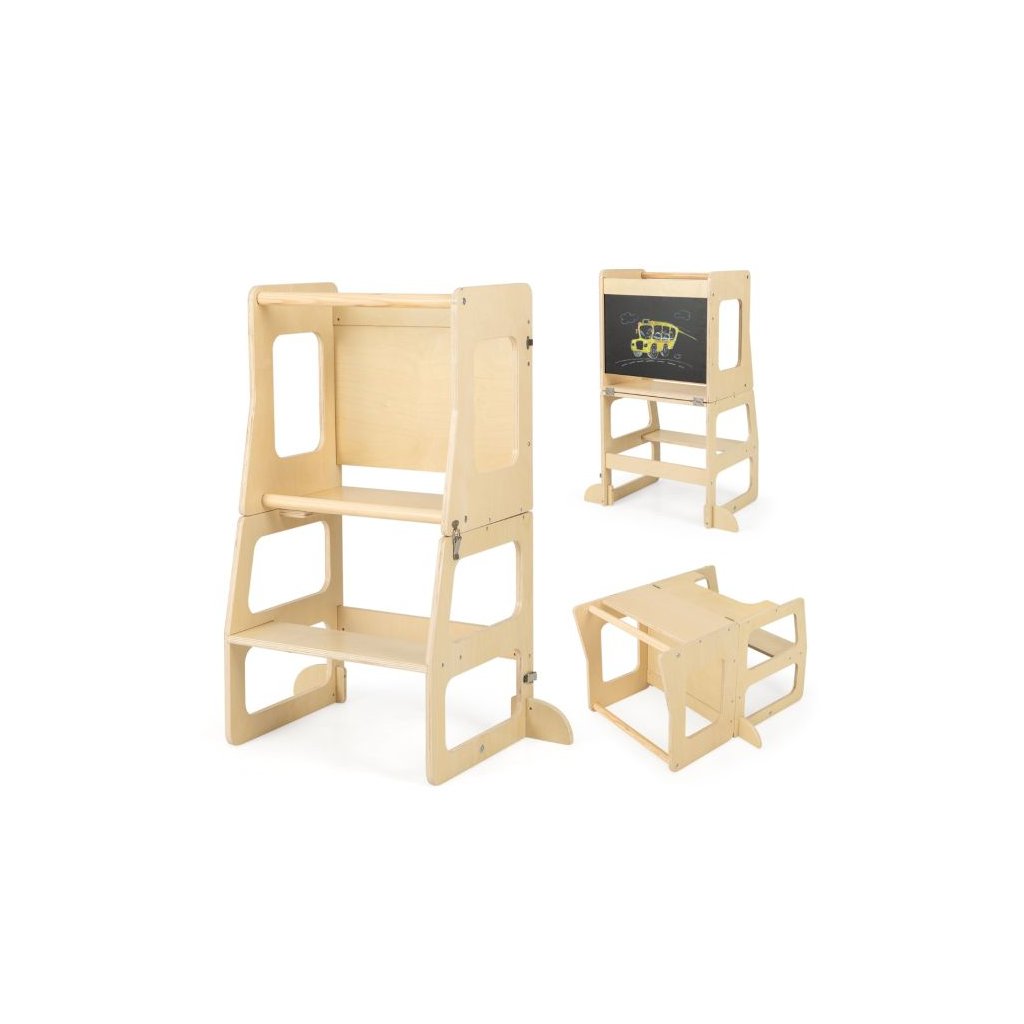 Učiaca veža v minimalistickom drevenom prevedení sa stane nepostrádateľným pomocníkom každej domácnosti s malými deťmi. Rozvíja a podporuje samostatnosť a schopnosti detí v bežných každodenných činnostiach, ako je čistenie zúbkov, asistencia rodičom v kuchyni, v dielni, umožní dosiahnuť deťom na ich obľúbené hračky a pod. Skvelým bonusom je variabilita učiacej veže, ktorá umožňuje vežu jednoduchým pohybom prestavať na stolček so stoličkou. Maľovanie, stavanie kociek, či hranie sa kdekoľvek majú deti chuť, tak už nebude problém. Veža sa veľmi ľahko prenáša. Ďalšiu dávku zábavy poskytne integrovaná tabuľa na kriedy. Severský dizajn skvele zapadne aj do moderne ladeného interiéru, drevené prevedenie odkazuje k tradničnému materiálu, a farebne neutrálne prevedenie je vhodné pre chlapcov aj dievčatká. *Stabilná konštrukcia sa postará o bezpečnosť Vašich detí *Vysoké bočnice zadná prepážka chránia deti pred pádom *Moderný dizajn v naturálnom prevedení *Kresliaca tabuľa súčasťou veže *Ľahko prestaviteľná na stolík s posedením Parametre: Farba: Prírodné Materiál: Drevo Celkové rozmery stoličky: 68 x 40 x 91 cm (D x Š x V) Celkové rozmery stola a sedadla: 74 x 45 x 45,5 cm (D x Š x V) Nosnosť: 60 kg Vhodný vek: 1 rok Čistá hmotnosť: 7 kgDodatočné parametre