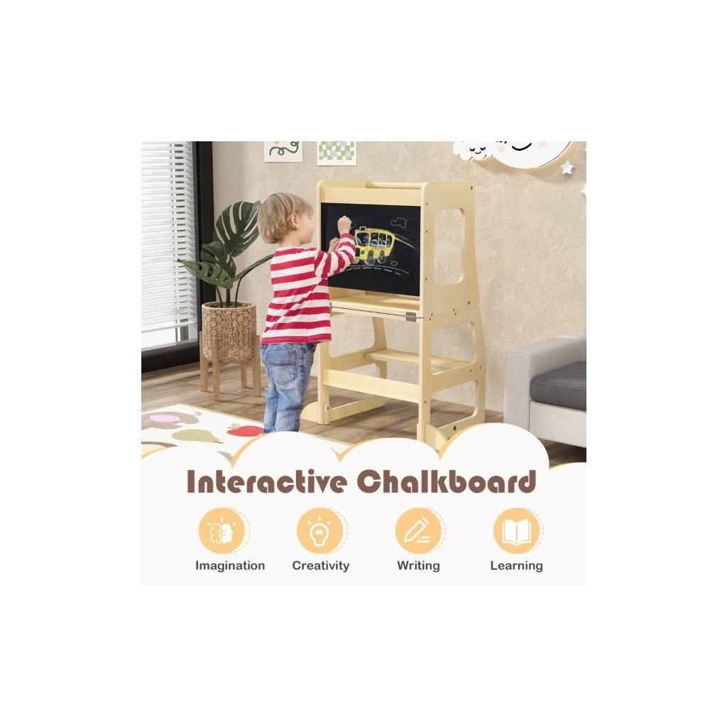 Drevená učiaca veža Montessori 3v1 s tabuľou
