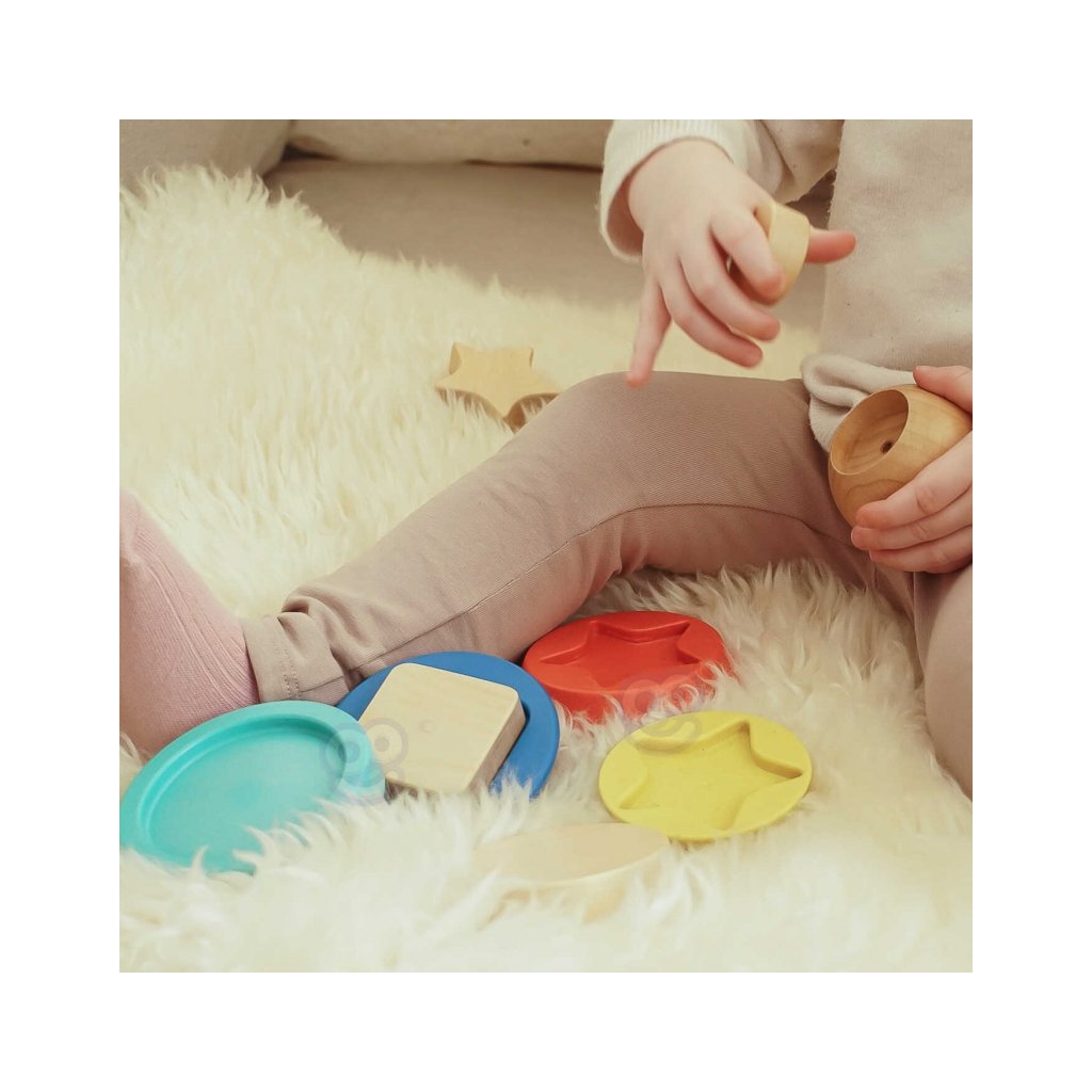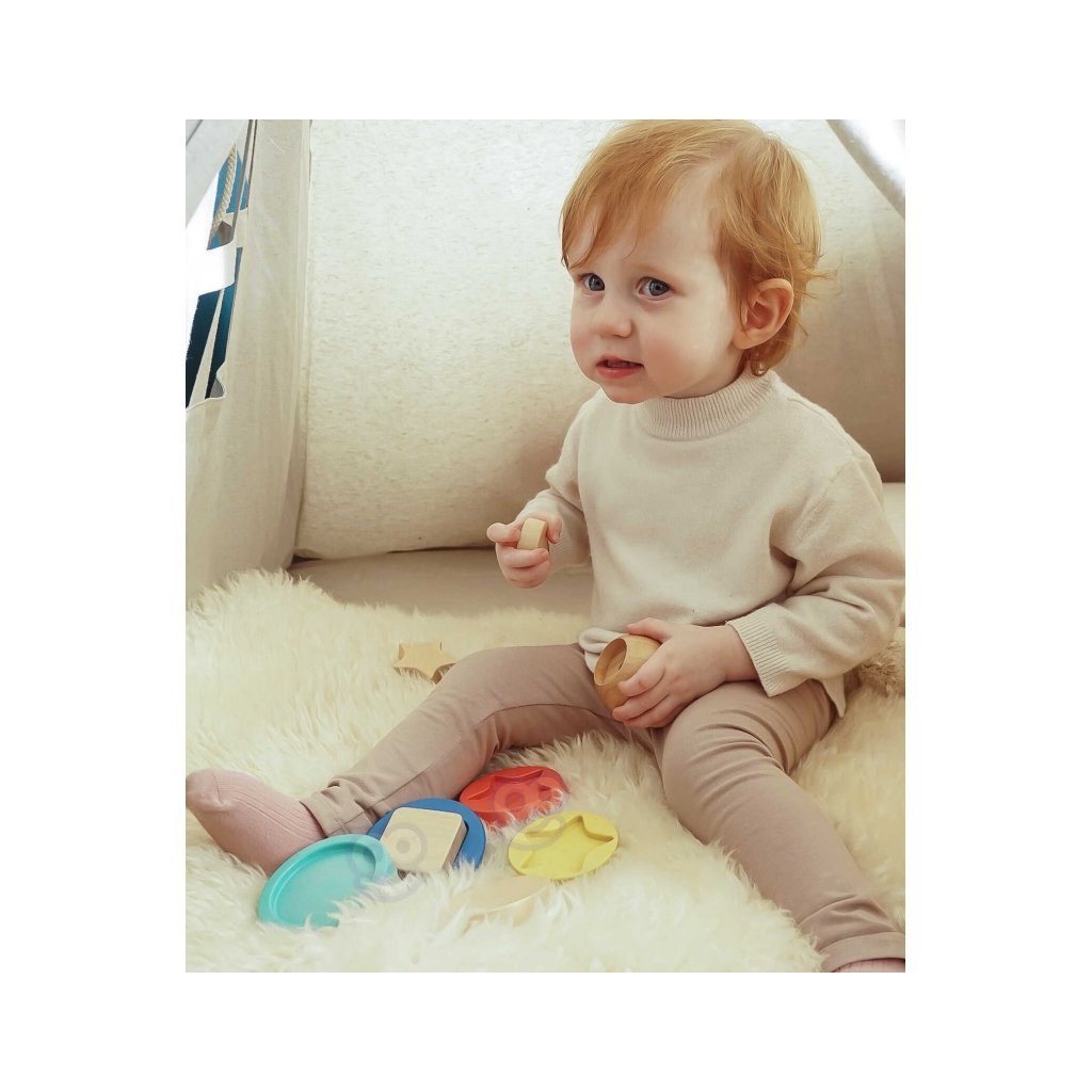 Ponorte sa do sveta farieb, tvarov a zručností s roztomilým dreveným medvedíkom, ktorý skrýva prekvapenie vo vnútri. Táto pyramída-ukladanka je určená pre deti od 12 mesiacov a pozostáva z 11 starostlivo spracovaných dielov – prstencov a tvarových kúskov v rôznych farbách a veľkostiach, ktoré spoločne tvoria postavu medvedíka. Dieťa skladá diely na správne miesta, a tým prirodzene rozvíja jemnú motoriku, logické myslenie, vnímanie veľkostí aj farieb. Vďaka hladkému povrchu a zaobleným hranám je bezpečná aj pre menšie rúčky, a výtvory sú potiahnuté netoxickými farbami vhodnými pre deti aj životné prostredie. Parametre: Rozmery: 8.5 x 8.5 x 15 cm Materiál: drevoDodatočné parametre