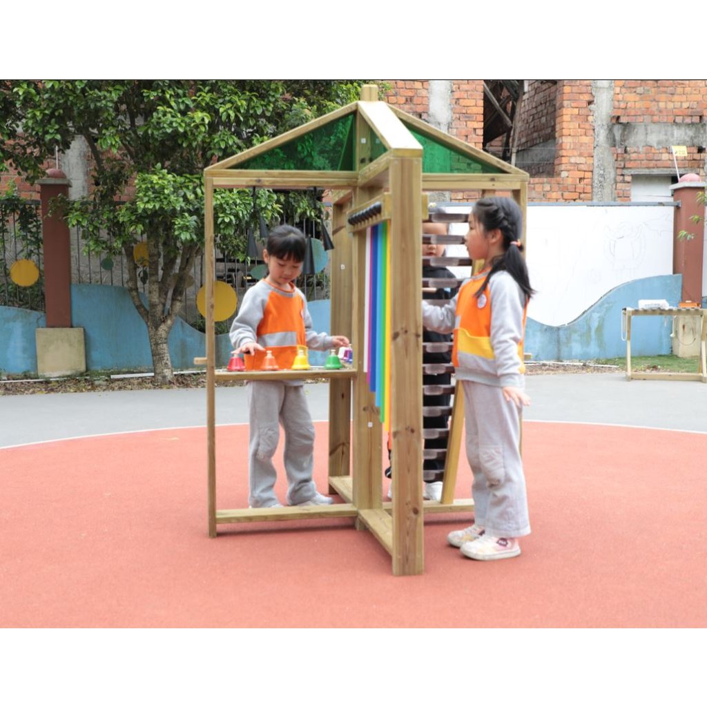 Krásne detské hudobné ihrisko Classic World by Jarabák Hudobné ihrisko pre vašu záhradu! Vďaka sérii EDU od značky CLASSIC WORLD prinášame hudbu a radosť z nej. Toto nádherné ihrisko je plné zábavných hudobných prvkov, ktoré deti podporia v ich fantázii a rozvíjaní zvukových vnemov. Ponúka možnosť deťom všetkých vekových kategórií tvoriť vlastné harmónie a rytmy. Kreativita pri hraní rozkvitne a deťom poskytne príležitosť vyjadriť sa cez hudbu, čo podporuje ich sebavedomie a smelosť. Ihrisko je vyrobené z kvalitného, odolného dreva z udržateľných zdrojov, ktoré odoláva poveternostným vplyvom. Toto ihrisko je nielen zábavné, ale aj ohľaduplné k životnému prostrediu. Drevený povrch je ošetrený netoxickou impregnáciou (zelenej farby), ktorá ho chráni napríklad pred dažďom a zároveň je šetrná k prírode aj zdraviu detí. Spĺňa tiež všetky dôležité normy a predpisy, nenájdete na nej žiadne ostré hrany ani iné nebezpečné prvky. Rozmer: 130 x 120 x 165 cm Vhodné pre deti od 3 rokov Materiál: Drevo Výhody: Odolný materiál Ošetrené netoxickou impregnáciou Podpora rozvoja zvukových vnemov Originálne vonkajšie ihrisko Obsah balenia: Detské hudobné ihrisko Classic World Veľký oxylofón Zvončeky Latinský bicí nástroj Zlatý meinl Boomwhackers 2x paličkyDodatočné parametre
