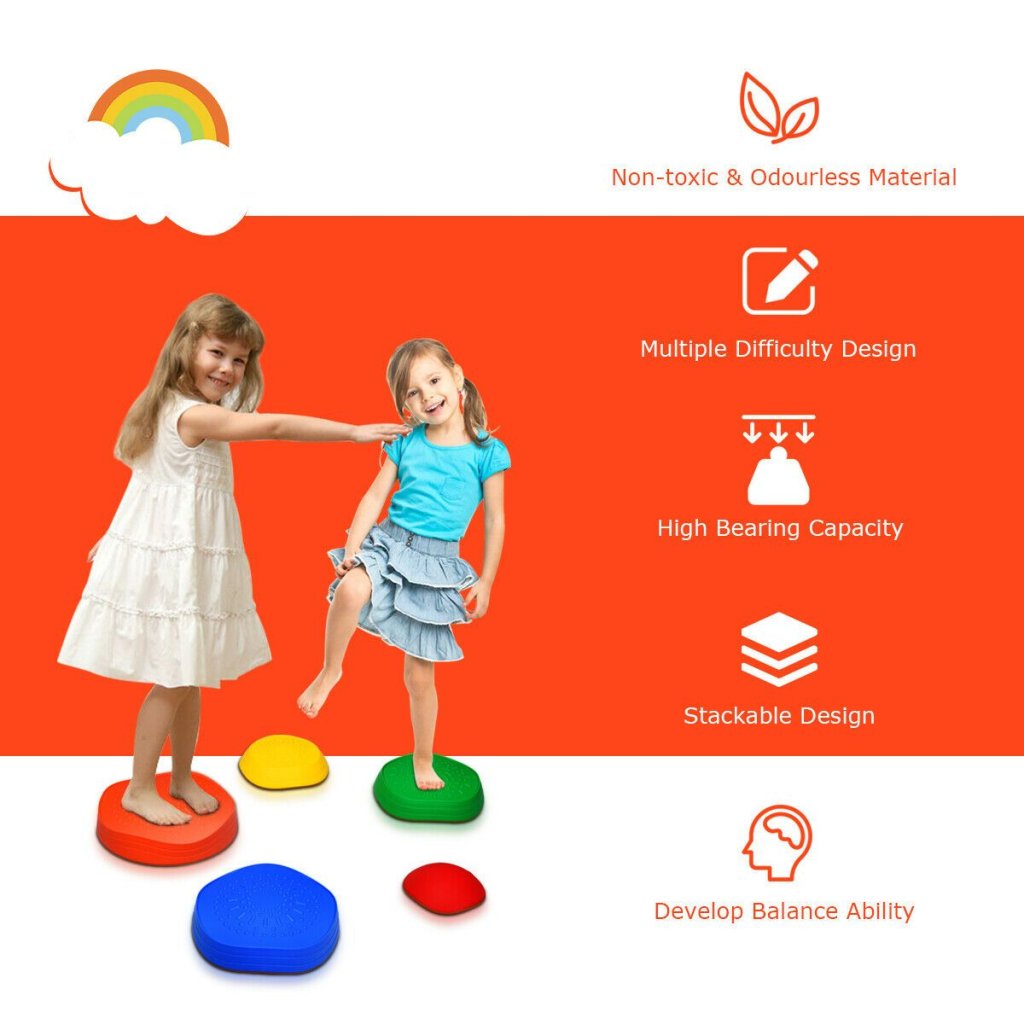 Balančné kamene pre deti premenia každú izbu alebo záhradu na dobrodružnú cestu plnú zábavy, pohybu a fantázie. Vďaka svojmu okrúhlemu tvaru a protišmykovému povrchu sú ideálne pre bezpečné hranie aj cvičenie rovnováhy. Deti môžu po kameňoch preskakovať, stavať si vlastnú „rieku z kameňov“ alebo vytvárať prekážkové dráhy, ktoré rozvíjajú motoriku, koordináciu i sebavedomie. Každý kameň je vyrobený z odolného plastu, ktorý unesie až 80 kg, takže vydrží aj náročnejšie hranie a zábavu s kamarátmi. Protišmyková úprava zaisťuje stabilitu ako na hladkej podlahe, tak aj na tráve alebo piesku. Vďaka ľahkej konštrukcii sa kamene ľahko prenášajú a po hre je možné všetky jednoducho naskladať na seba, takže nezaberú takmer žiadne miesto. Farebný set rôznych veľkostí a výšok podporuje kreativitu a láka deti na pohyb. Balančné kamene sú perfektnou voľbou pre domáce použitie aj vonkajšie hry - ideálna pomôcka pre zábavné učenie rovnováhy, koordinácie a stability formou hry. Parametre: Farba: Viacfarebná Materiál: PP, TPE Celkové rozmery: 36,5 x 27 x 28 cm (D x Š x V) Výška každého nášľapného kameňa: 6/7,5/8/9/9 cm Vhodný vek: od 3 rokov Nosnosť každého nášľapného kameňa: 80 kg Čistá hmotnosť: 1,5 kgDodatočné parametre