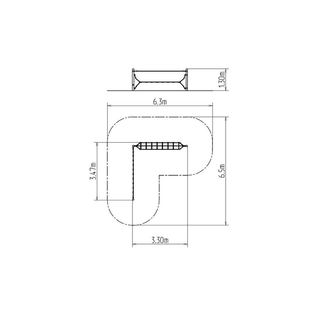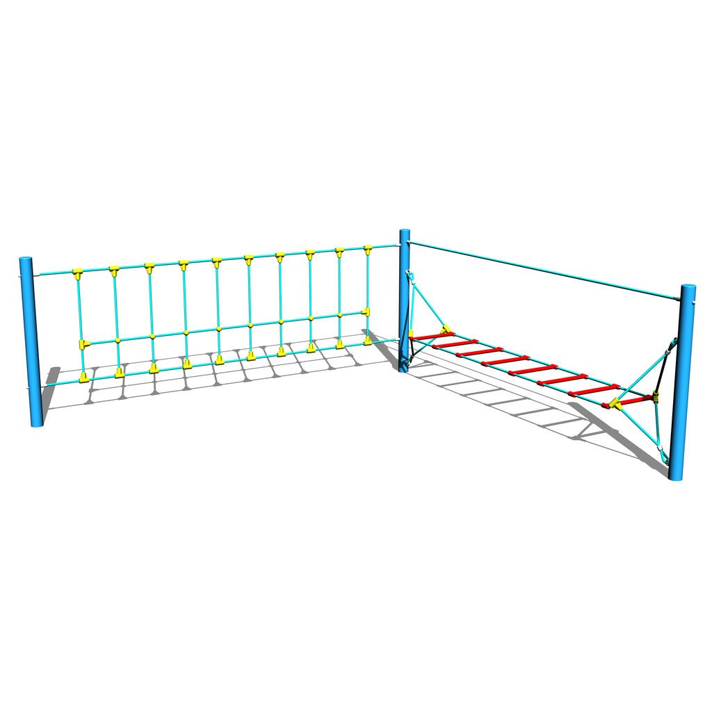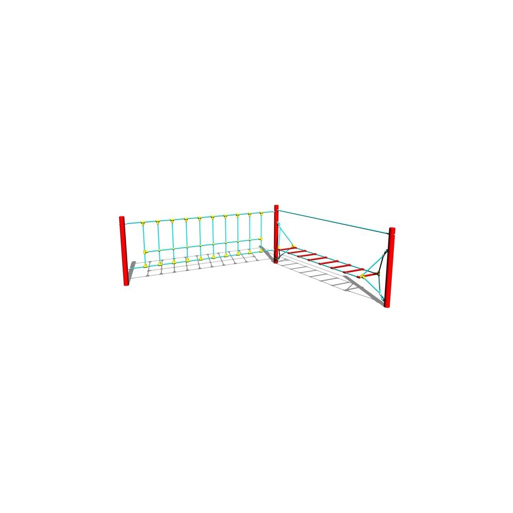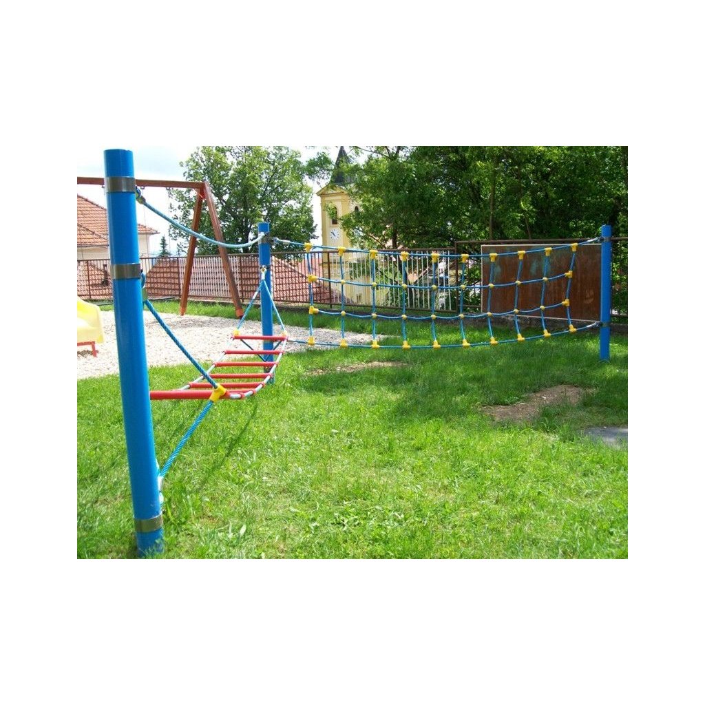 Šplhací sestava - Stezka odvahy 201 je dětská herní sestava pro děti již od 2 let, skládající se ze 2 polí - kolmé sítě s vodorovným vyztužením, vodorovného žebříku s bezpečnostním lanem. Tato šplhací sestava dobře doplní veřejná dětská hřiště a zahrady mateřských a základních škol. Děti si mohou zde procvičovat šplhání, rovnováhu a především sílu a koordinaci pohybů. Nosná konstrukce šplhací sestavy - Stezka odvahy 201 je vyrobena z konstrukční oceli (kovový profil 100 x 100 mm), která je proti korozi chráněna povrchovou úpravou zinkováním a vypalovanou barvou KOMAXIT, čímž se docílí velmi výrazného prodloužení životnosti herního prvku. Barvu konstrukce si může zákazník volit z těchto barev - modré, červené a hnědé, výběr barvy uveďte prosím do poznámky v objednávce. Konstrukce šplhací sestavy Stezka odvahy jsou betonovány přímo do terénu. Veškeré další kovové prvky jsou také upravovány zinkováním a vypalovanou barvou KOMAXIT. Lana a sítě jsou vyrobeny z materiálu HERKULES (16 mm lana z polypropylenu s vnitřním ocelovým jádrem) a jsou spojována plastovými spoji. Použitý spojovací materiál je pozinkovaný nebo nerezový. Dětské hřiště je určeno pro děti od 2 do 10 let, na děti od 2 do 6 let je nutný dohled dospělé osoby. Herní šplhací sestava - Stezka odvahy 201 je certifikovaná dle EN 1176 pro veřejná dětská hřiště.Dodatočné parametre