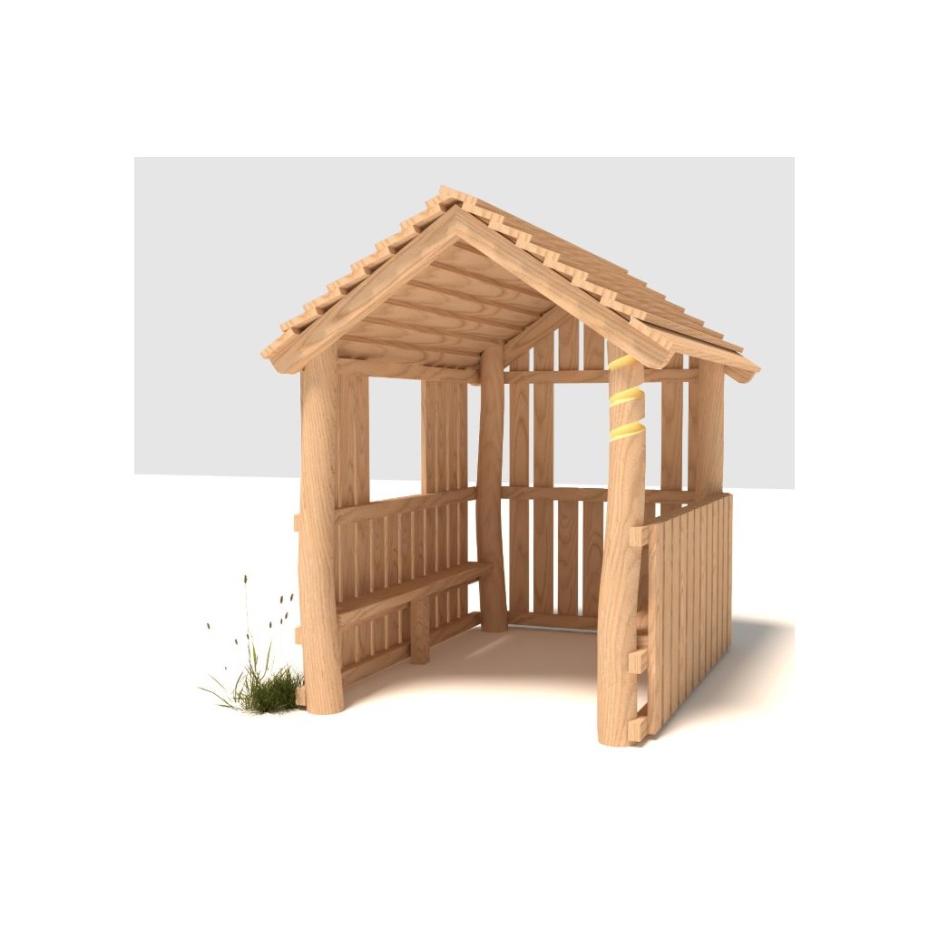 Masivní, velký a odolný domek (altánek) z akátu Fort zaujme všechny děti, najdou zde útočiště pro hru i úkryt před nepřízní počasí. Tento Domeček Fort je vhodný především do mateřských škol, do obcí i na městská veřejná dětská hřiště. Konstrukce domku je tvořena z odolného akátového (dubového) dřeva, které je natřené lazurou (odstín dle přání zákazníka, případně může dřevo zůstat bez ošetření). Domeček z tvrdého dřeva má dlouhou životnost bez větších nároků na údržbu. Domek Fort je kotvený zabetonováním stojek do terénu. Má masivní střechu a je větších rozměrů, může si zde hrát více dětí najednou, interiét je doplněn i o dvě lavice na sezení po bocích domečku. Výška pádu Domečku Fort je do 0,6 m a proto nemusí mít dopadové plochy tlumící pád, stačí zde udržovaný trávník. V případě, pokud se zákazník obává vyšlapání trávníku v okolí domečku, doporučujeme zde položit pryžové zatravňovací desky Gras nebo Saf. Najdete je v souvisejícím zboží. Toto zařízení na dětská hřiště je určeno pro děti od 3 do 14 let, na děti od 3 do 6 let je nutný dohled dospělé osoby. Zařízení dětského hřiště Domeček Fort je certifikovaný dle EN 1176 pro veřejná dětská hřiště.Dodatočné parametre