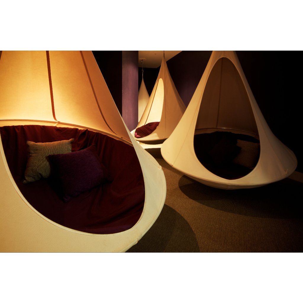 Hojdačku hniezdo Cacoon pre dve osoby môžete zavesiť prakticky kdekoľvek. Zavesená na záhrade zabezpečí dlhé hodiny príjemného hojdania na čerstvom vzduchu. Pokiaľ ju umiestnite do obývacej izby, môžete sa kedykoľvek príjemne oddať relaxácii. Ďalšou možnosťou je ju vziať so sebou na výlet. Garantujeme, že štýlovejšiu hojdačku nikto v okolí mať nebude.