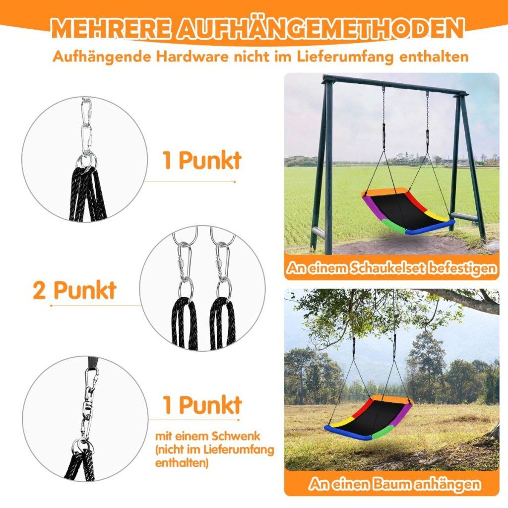 Závesné hojdacie hniezdo, vyrobené z odolného textilného materiálu, na ktorom sa deti nielen pohopu, ale môžu si aj oddýchnuť v ľahu. Hniezdo je vhodné aj na hojdanie viacerých detí naraz, do max. nosnosti 150 kg. Vyrobené z oxfordskej tkaniny a PP, je veľmi trvanlivé a odolné proti opotrebovaniu Hojdačka je zavesená na 2 lanách. Dĺžka lana max. 1,8m. Upozornenie: Nikdy herné prvky neumiestňujte na tvrdý podklad, ako je betón, či dlažba, najvhodnejší podklad pre herný prvok je tráva, kačírok, mulčovacia kôra, piesok, či tlmiace dopadové dlaždice. Špecifikácia: Farba: Viacfarebná Materiál: Oxford tkanina + PP + oceľ Celkové rozmery: 83 x 155 cm (D x Š) Dĺžka nastaviteľného lana: 180 cm Čistá hmotnosť: 5,5 kg Nosnosť: 150 kg Odporúčaný vek: od 3 rokov Rozsah dodávky: 1 x hojdačka 1 x návodDodatočné parametre