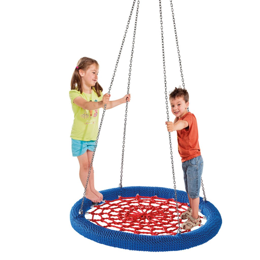 Kvalitné hojdačkové hniezdo vhodné na hru aj odpočinok detí na detských ihriskách, v materských a základných školách. Hojdačkové hniezdo je certifikované podľa EN 1176. Priemer hniezda 1,2 m zabezpečí dostatok miesta. Masívna konštrukcia z 16 mm lán s oceľovým výpletom typu Herkules, zabezpečí vysokú nosnosť a odolnosť proti vandalizmu. Uchytenie lán k hniezdu masívnymi kovovými úchytmi umožní hojdanie až 6 detí súčasne. Hniezdo je natoľko kvalitné a pevné, že je možné ho použiť aj na ihriská pre veľké deti či postihnuté dospelé osoby. Podľa ponuky je hniezdo dostupné v čiernej, modro/červenej a modro/čiernej, čierno/zelenej farbe. Dĺžka zavesenia je max. 140 cm. Pre uchytenie hniezda ku konštrukcii hojdačky odporúčame použiť masívne háky z našej ponuky, viď súvisiaci tovar.