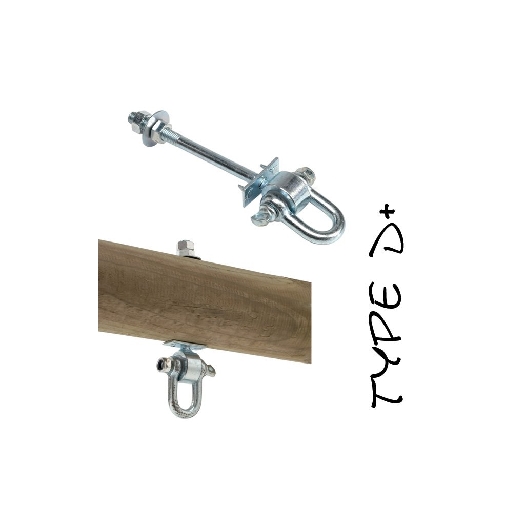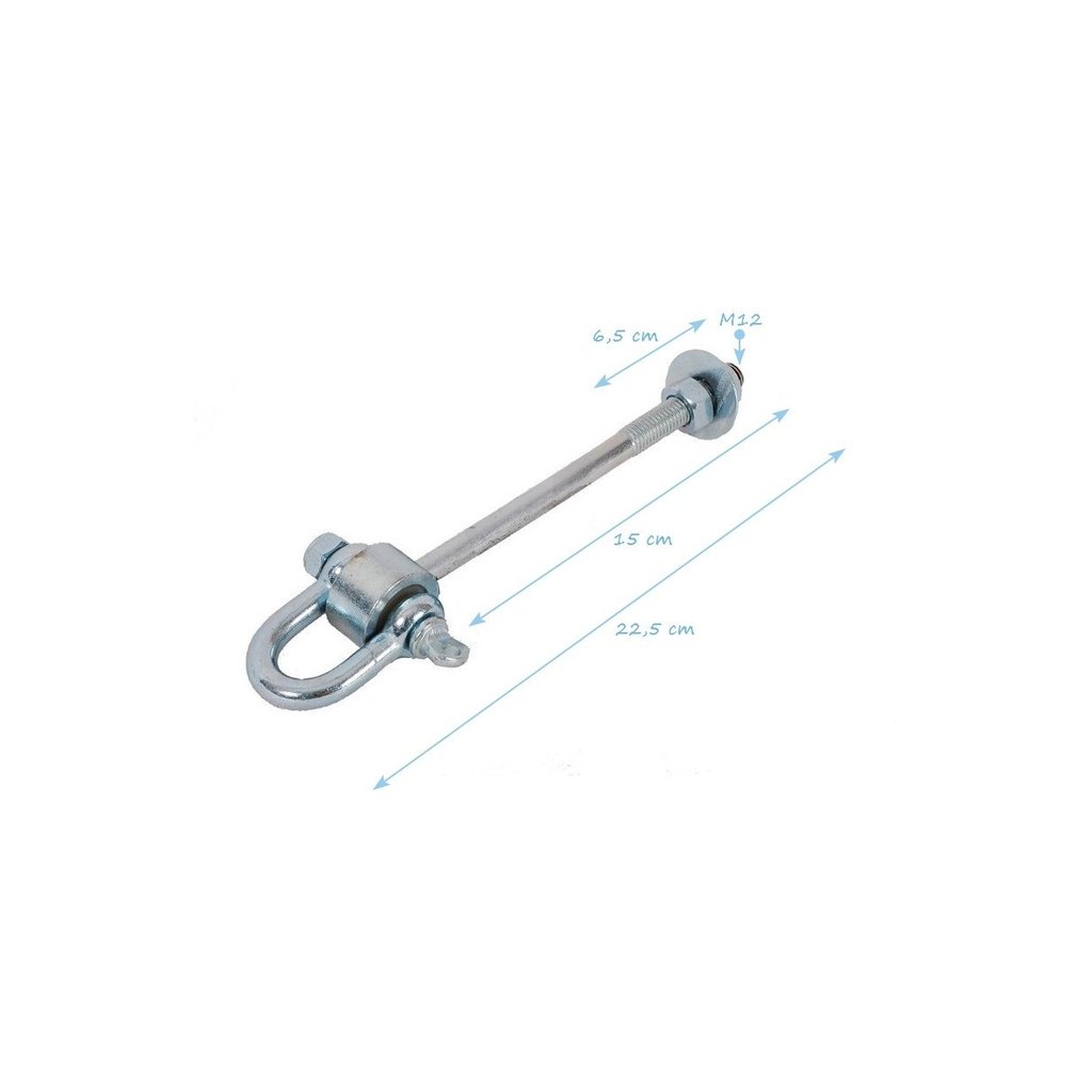 Hojdačkové háky k zaveseniu hojdačiek do drevenej konštrukcie. Systém skrutiek a matiek. Metrický závit je prestrčený skrz otvor brvna a upevnený je matkou.Dodávka obsahuje: 1ks