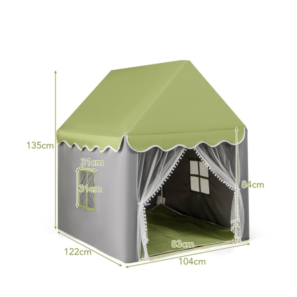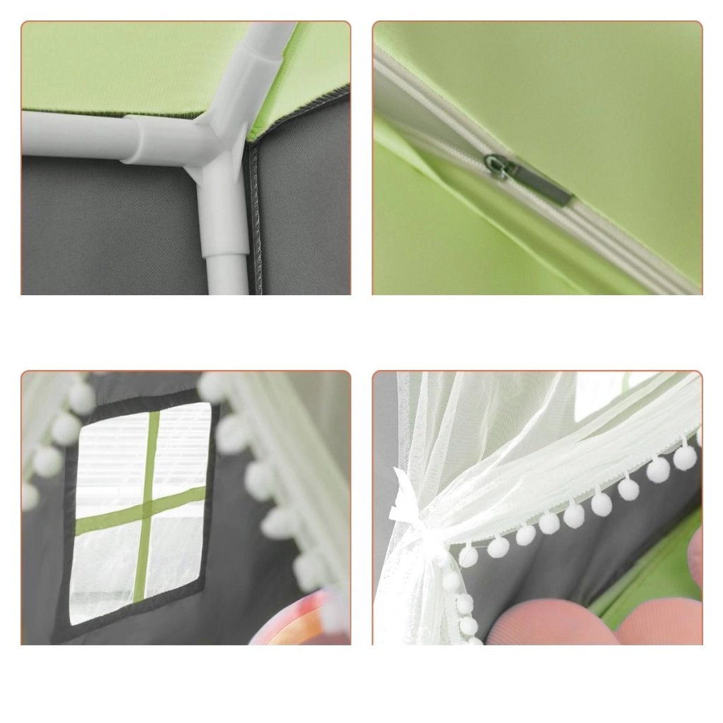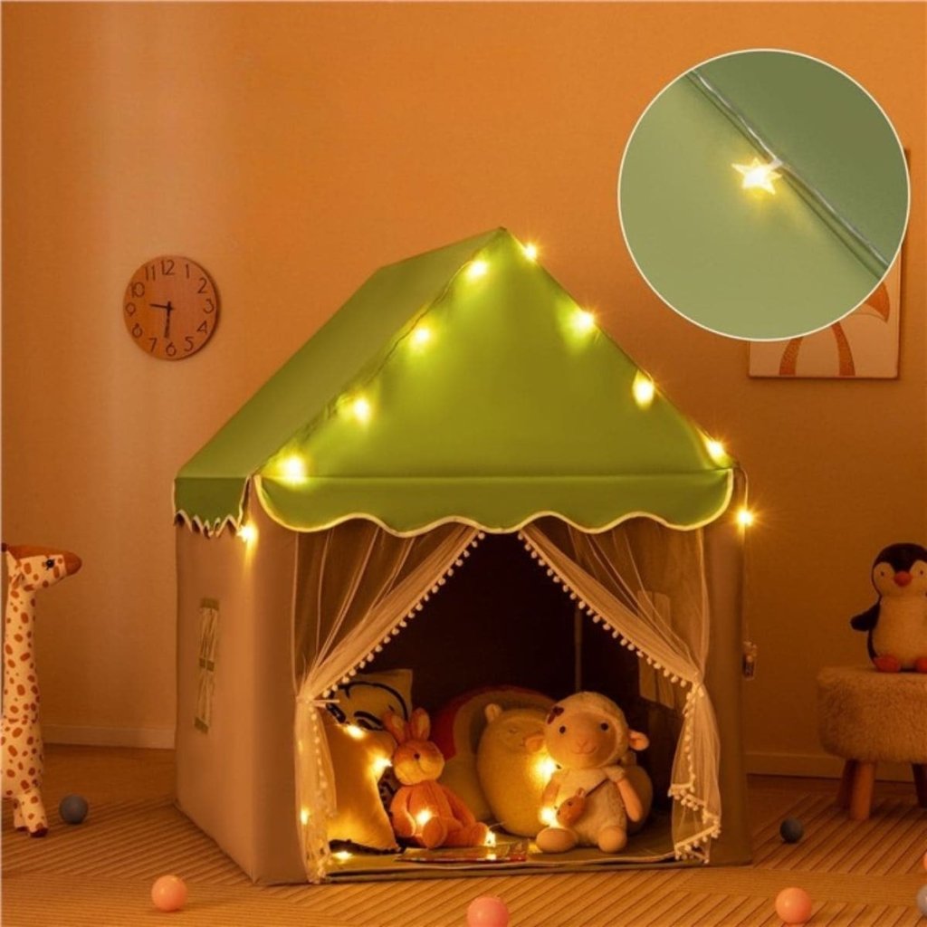 Dizajnový stan v tvare domčeka v zelenom prevedení, nadchne všetky deti. Domček bude dominantou detskej izby! Domček si môžete zariadiť podľa vašej fantázie, môžete dať do domčeka deku s vankúšom a hneď tam deťom vytvoríte pohodlné a komfortné miesto na odpočívanie, k tomu ešte lampičku a môžu si čítať svoje obľúbené knižné príbehy zo svojho domčeka. Tento priestor je dostatočne veľký, aby sa v ňom mohli voľne pohybovať deti aj rodičia. LED reťaz s teplým svetlom vytvára večer kúzelnú atmosféru. Tento domček na hranie vďaka svojmu elegantnému a očarujúcemu exteriéru ľahko upúta pozornosť detí a bude nepochybne dokonalým darčekom pre kohokoľvek. Každé dieťa by malo mať svoju vlastnú tajnú základňu, aby mohlo rozvíjať svoju vlastnú inováciu a nezávislé myslenie. Parametre: Rozmery: 121 cm x 105 cm x 136 cm Dĺžka svetelnej reťaze: 200 cm Batérie: 2 x AA (nie je súčasťou balenia) Materiál: polyester-bavlnená tkanina, PVCDodatočné parametre