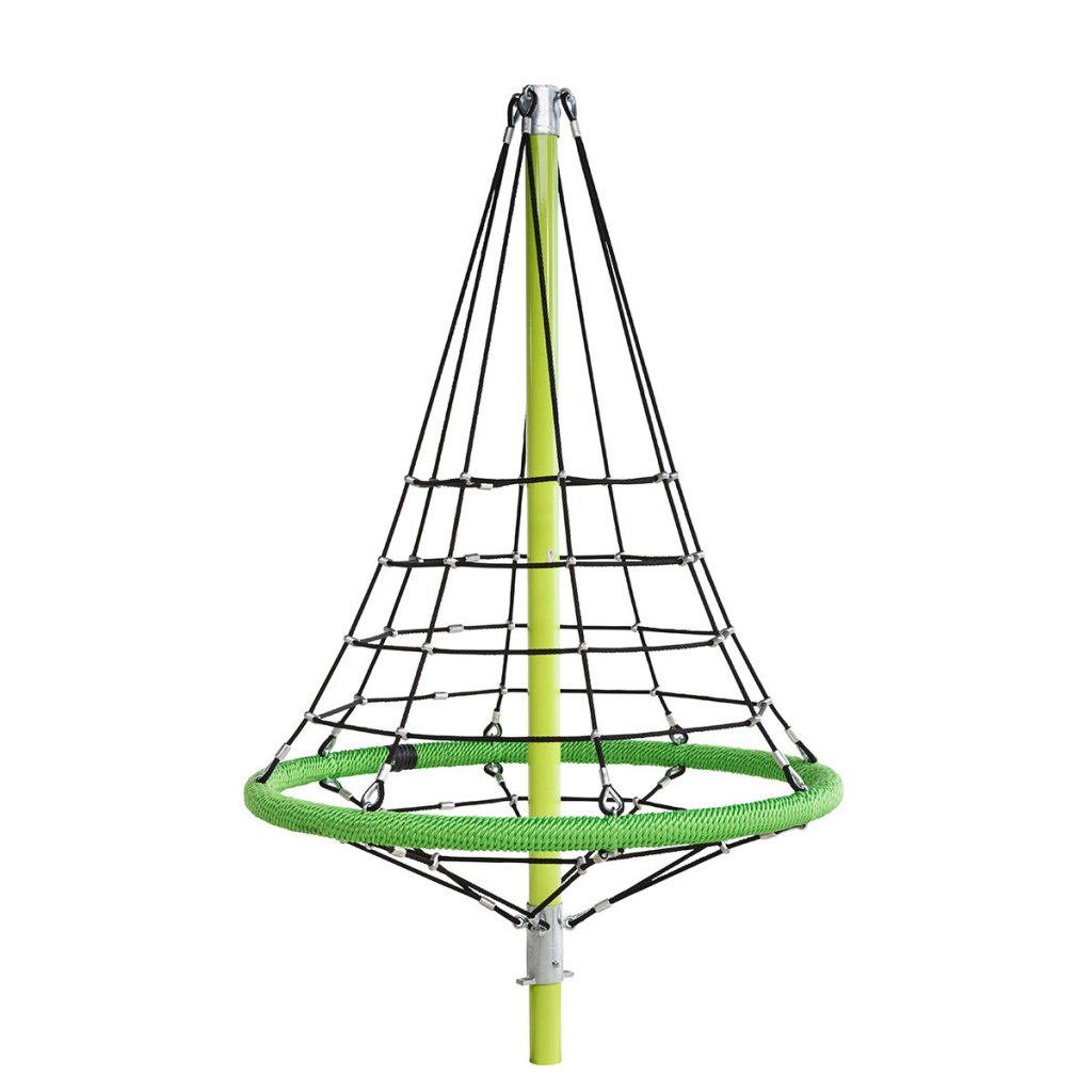 Vzhledem k rozměrům, je tomuto produktu je účtováno speciální dopravné dle místa dodání. Lanová šplhací Pyramida "firry" umožní dětem šplhání po lanech až do výšky 2,7 m a hru na veřejných dětských hřištích. Díky unikátní konstrukci sítě je pádová výška této pyramidy jen do 1 m a není třeba speciálních dopadových ploch. Lanová šplhací pyramida "firry" má ocelový sloup o průměru 12 mm, šplhací síť je vyrobena z lan typu Herkules ((16 mm lana z polypropylenu s vnitřním ocelovým jádrem), k síti je připevněno také pevné kolo o průměru 185 cm, které tvoří základ spodního hnízda, kde mohou děti posedávat a odpočívat. Tento pevný kruh opletený lanem také pomáhá síti držet tvar. Jednotlivá lana sítě jsou spojena masivními a odolnými hliníkovými spojkami. Středový sloup pyramidy je nutné betonovat přímo do terénu, aby byla zajištěna stabilita herní sestavy. Šplhací herní sestava Lanová pyramida "firry" je velmi pěkně vypracovaná, dětem nabídne mnoho příležitostí ke šplhání, lezení a bude vhodně rozvíjet jejich motorické schopnosti, v dolní části sestavy nabídne i prostor k sezení a odpočinku v lanovém hnízdě. Sestava je díky své výšce vhodná pro děti od 3 do 12 let, které rádi lezou a posilují. Tuto herní sestavu doporučujeme na dětská hřiště, do zahrad mateřských škol, ale i k restauracím, hotelům, dětským centrům, a pod. Konstrukce herního prvku je vyrobena z odolné oceli, která je ošetřena zinkováním proti korozi. Všechny sítě používané na tyto herní sestavy jsou vyrobené z lan s ocelovou výztuží. Tato lana jsou velmi odolná vandalům a mají také dlouhou životnost. Tato herní sestava velmi dobře odolává zátěži i vandalům. Lanová šplhací pyramida "firry" se skládá z: 1× ocelový sloup síťová plocha z lan s ocel. výztuží a pevným kruhem Lanová šplhací pyramida "firry" má pádovou výšku 1 m a proto stačí jako dopadová plocha jen udržovaný trávník. a není nutné tvořit speciální dopadové plochy. Pokud není na pozemku kvalitní trávník nebo hrozí jeho vyšlapání, doporučujeme zde položit pryžové zatravňovací desky Grass nebo Saf z naší nabídky Lanová šplhací pyramida "firry" je certifikovaná dle EN 1176 pro veřejná dětská hřiště.Dodatočné parametre