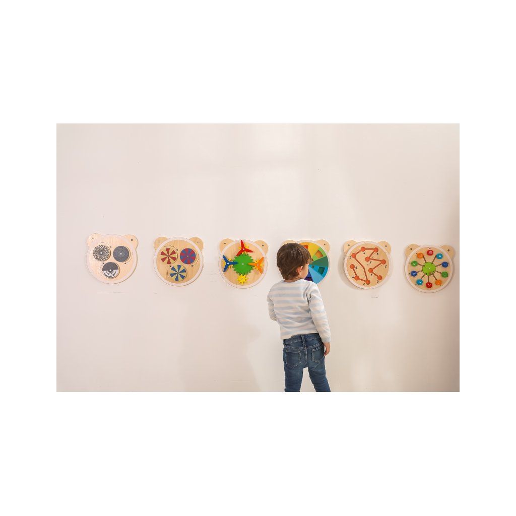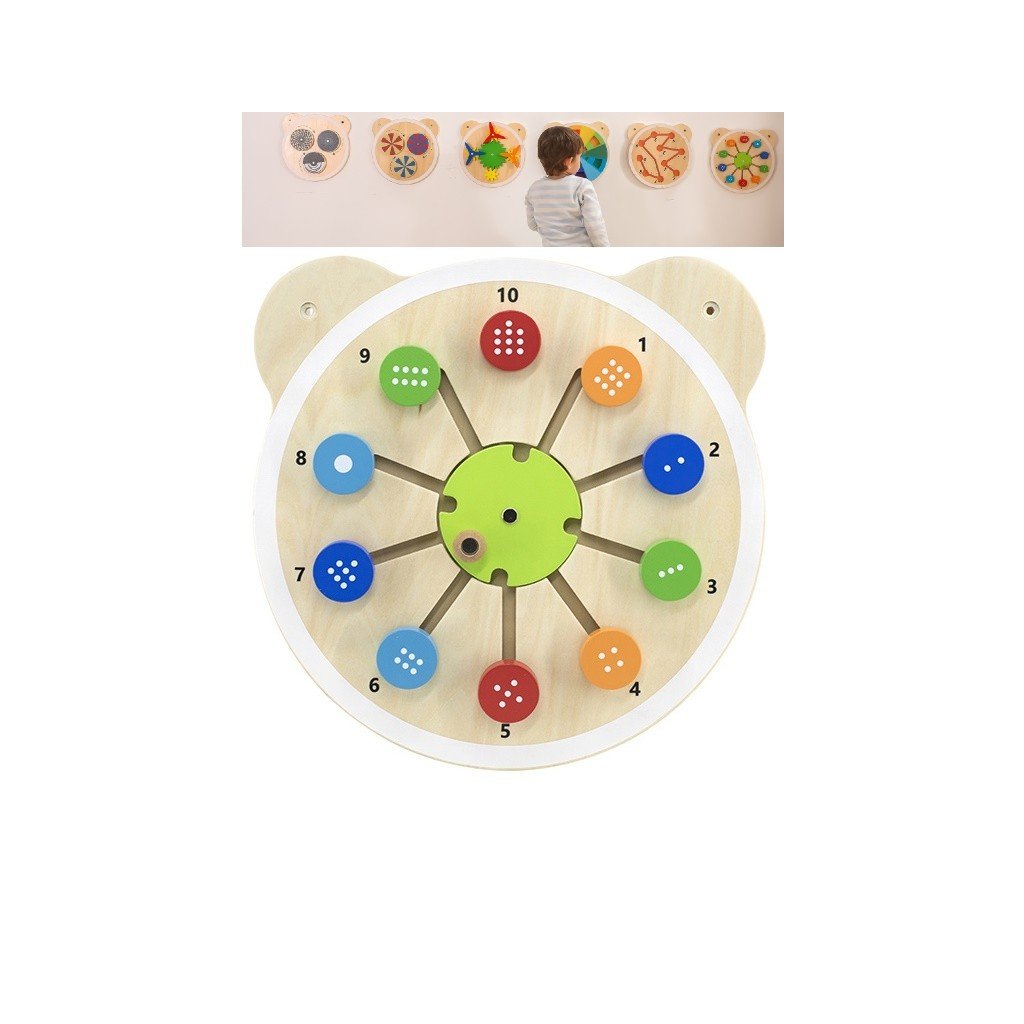 Jedna zo série drevených dosiek s roztomilou hlavou medvedíka. Doska s okrúhlymi blokmi so správnym počtom bodiek, ktoré zodpovedajú príslušnému číslu na doske. Výrobok je ideálny na použitie doma a vo vzdelávacích a predškolských zariadeniach. Zaujímavý design tvaru tabule určite upúta pozornosť každého batoľaťa. Celá súprava je vyrobená z lakovaného dreva a natretá netoxickými farbami v žiarivých farbách, ktoré uspokoja každého používateľa a poskytnú mu veľa zábavy. Výrobok je určený pre deti od 18 mesiacov. V našej ponuke nájdete celú sériu hlavičiek s medvedíkmi. Hra pozostáva z presúvania okrúhlych kociek tak, aby sa príslušný počet bodiek na kocke zhodoval s príslušným číslom na hracej ploche. Všetko je vyrobené z lakovaného dreva a natreté netoxickými farbami v žiarivých farbách. Rozmery: š. 30 x v. 30 x hl. 3,2 cm Materiál: drevoDodatočné parametre