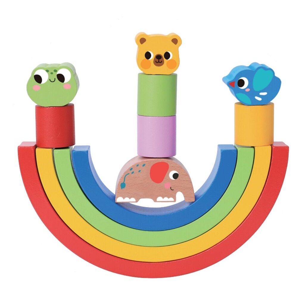 Táto kúzelná drevená hračka prináša deťom radosť z objavovania farieb, rovnováhy a priateľských zvieracích postavičiek. Každý oblúk predstavuje jednu farbu dúhy a nesie na sebe veselého zvieracieho kamaráta – sovičku, vtáčika, žabičku, medvedíka alebo levíčka. Deti sa pri stavaní precvičia jemnú motoriku, koordináciu pohybu a zmysel pre rovnováhu, zatiaľ čo sa hrajú a tvoria vlastné príbehy. Hračka je vyrobená z kvalitného dreva s bezpečnými, netoxickými farbami a je ideálna pre malé deti od troch rokov. Vďaka svojmu nápaditému dizajnu poslúži nielen ako zábavná vzdelávacia pomôcka, ale aj ako štýlová dekorácia do detskej izby. Súčasťou je aj malý drevený sloník, ktorý celú zvieraciu partiu dopĺňa a pridáva hre ďalší rozmer. Skvelý darček, ktorý spája radosť, kreativitu a učenie v jednom. Parametre: Rozmery balenia: 23,5 x 3,7 x 22,5 cm Materiál: drevo Vhodné pre deti: od 3 rokov Sada obsahuje: 26 dielovDodatočné parametre
