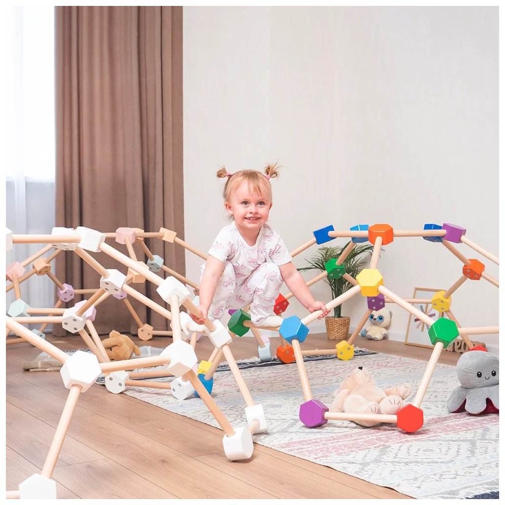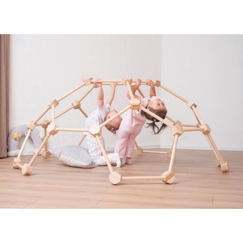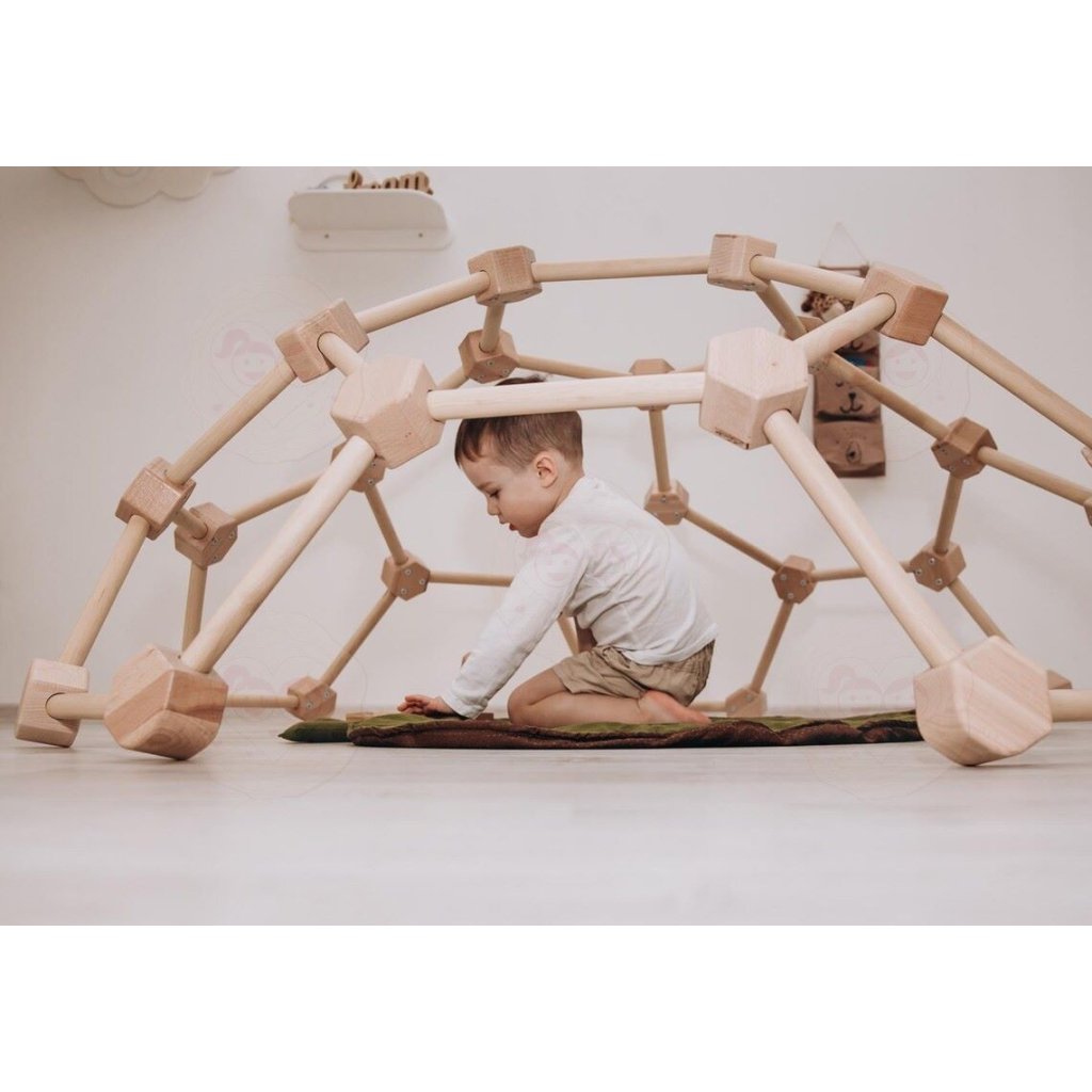 Montessori dětská prolézačka je všestranná vnitřní hřiště navržená tak, aby spolupracovala s motorikou dětí, kontrolou rovnováhy a aci. Díky své lákavé struktuře poskytuje různé možnosti lezení a po zakrytí slouží také jako dětská skrýš. Tato prolézačka, je vyrobena z prvotřídního masivního bukového dřeva, známá svou pevností a flexibilitou, upřednostňuje odolnost a ohleduplnost k životnímu prostředí. Použití vysoce kvalitního ekologického laku na vodní bázi zajišťuje bezpečný a příjemný zážitek ze hry a přírodní barvu dřeva. S maximální nosností 60 kg nabízí tato kopulovitá prolézačka ve velikosti XL bezpečné prostředí pro děti k prozkoumávání a rozvoji jejich fyzických schopností. Parametry: Rozměr: 82 x 189 cm (V x Š) Nosnost: 60 kgDodatočné parametre