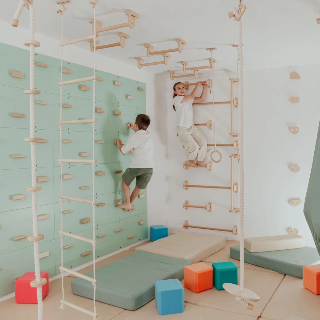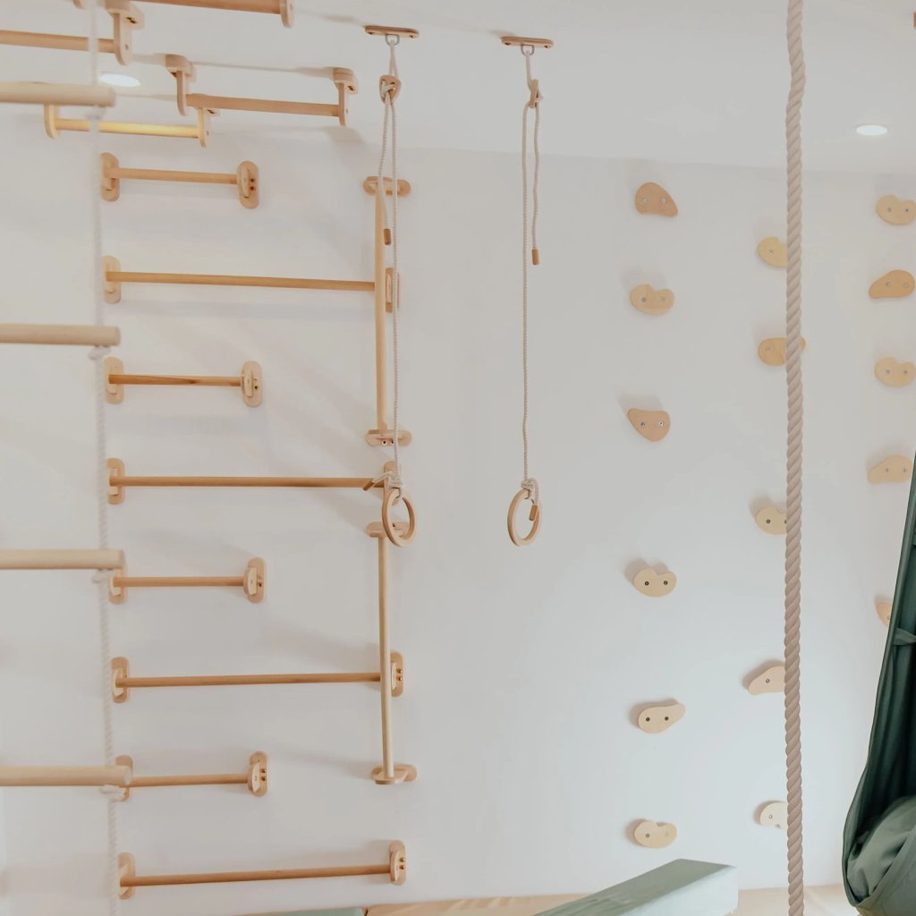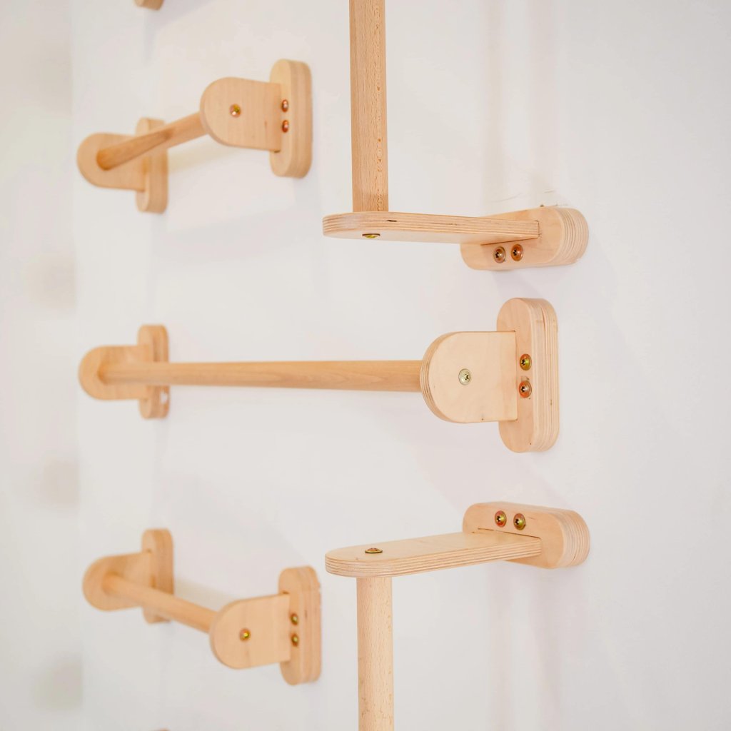 Home Monkey Bars prináša do vášho domova zábavu, pohyb a kreatívny priestor pre deti. Táto elegantná a pevná lezecká konštrukcia premení každú izbu na malú telocvičňu, kde môžu deti objavovať svoje limity, rozvíjať silu i koordináciu a zároveň si užívať aktívnu hru. Vyrobená je z kvalitného bukového dreva a brezovej preglejky, ktoré zaručujú vysokú odolnosť a dlhú životnosť. Prírodný hladký povrch je šetrný k detským rukám a neobsahuje žiadne škodlivé chemikálie. Každý kus nesie autentickú štruktúru dreva, vďaka ktorej pôsobí v interiéri teple a harmonicky. Home Monkey Bars je možné pripevniť na stenu alebo na strop, takže sa ľahko prispôsobí akémukoľvek priestoru. Inštalácia je jednoduchá a bezpečná – súčasťou balenia je montážna sada aj prehľadný návod. Konštrukciu je možné kombinovať s ďalšími hernými prvkami alebo používať samostatne. Vďaka nosnosti až 60 kg zvládne konštrukcia aj spoločné cvičenie rodičov s deťmi. Home Monkey Bars je nielen nástrojom na pohyb a rozvoj, ale aj krásnym dizajnovým doplnkom, ktorý prirodzene zapadne do každej modernej či detskej izby. 1 ks Parametre: Výška madla je 14 cm. Šírka je 84 cm. Hĺbka madla je 13 cm. Odporúčané zaťaženie: 60 kg. Materiál: bukové drevo a brezová preglejkaDodatočné parametre
