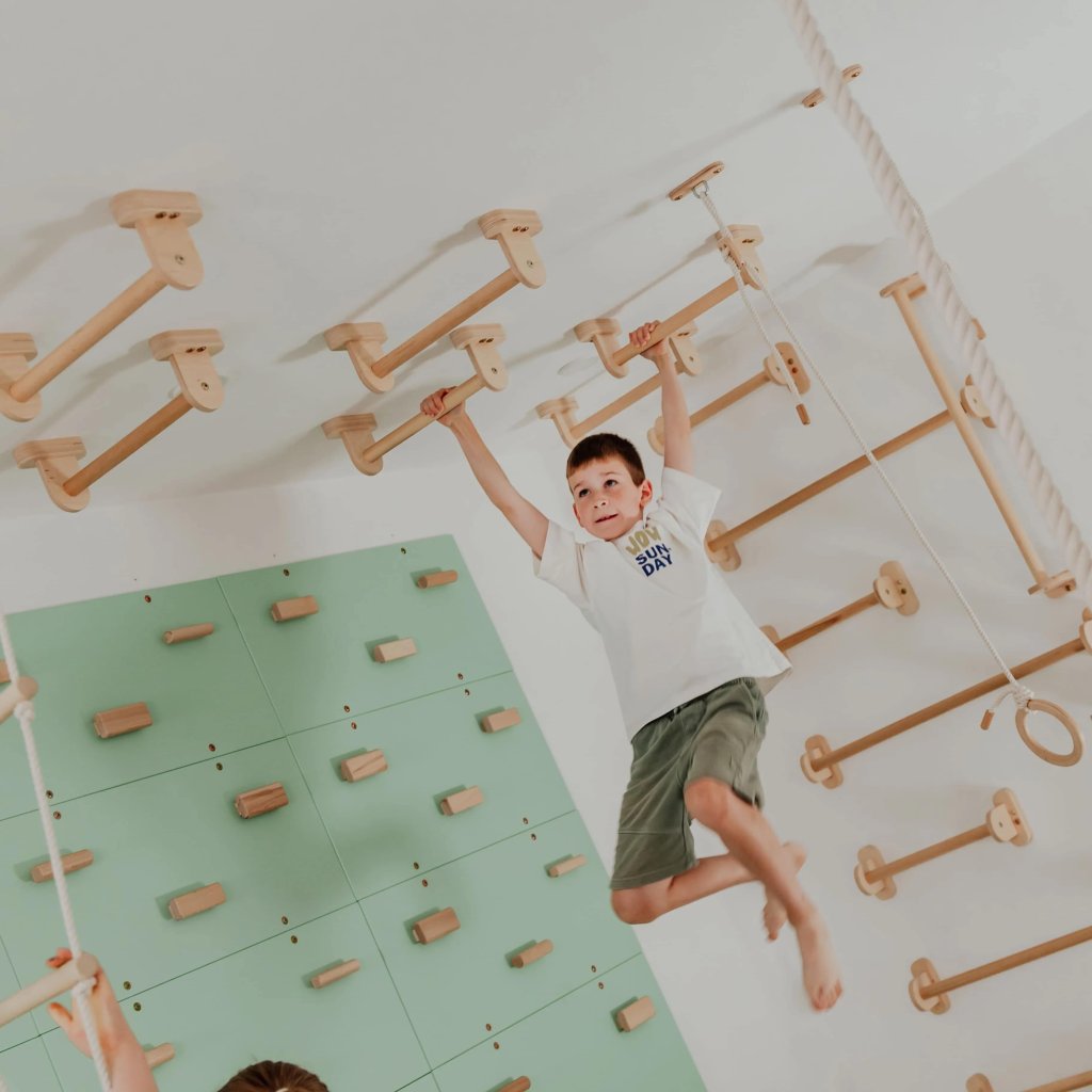 Produkt Monkey Bars ponúka inšpiratívny spôsob, ako premeniť detskú izbu či herňu na aktívny a kreatívny priestor pre pohyb a objavovanie. Hrazdičku je možné montovať vodorovne aj zvisle, na stenu alebo na strop - vytvárate tak vlastnú lezeckú stenu. Tieto hrazdičky sú vyrobené z bukového dreva a brezovej preglejky, čo zaručuje konštrukčnú pevnosť aj esteticky prírodný vzhľad. Prirodzená farba dreva nezaťažuje dizajn interiéru a dobre ladí s modernými aj pokojnejšími priestormi. Montáž je jednoduchá a flexibilná - vďaka možnosti kombinovať niekoľko sád je možné vytvoriť väčšiu plochu či systém pre viac detí či variabilné hranie. Odporúčaný limit pre bežné použitie je 60 kg. Tým je zaistená bezpečnosť a dlhodobá spoľahlivosť pri každodennom hraní. S Monkey Bars získavate vybavenie, ktoré podporuje rozvoj telesnej sily, koordinácie, rovnováhy i motorických zručností detí a zároveň sa stáva štýlovým prvkom každého priestoru. 1 ks Parametre: Výška madla je 14 cm. Šírka je 43,6 cm. Hĺbka madla je 13 cm. Odporúčané zaťaženie: 60 kg. Materiál: bukové drevo a brezová preglejkaDodatočné parametre