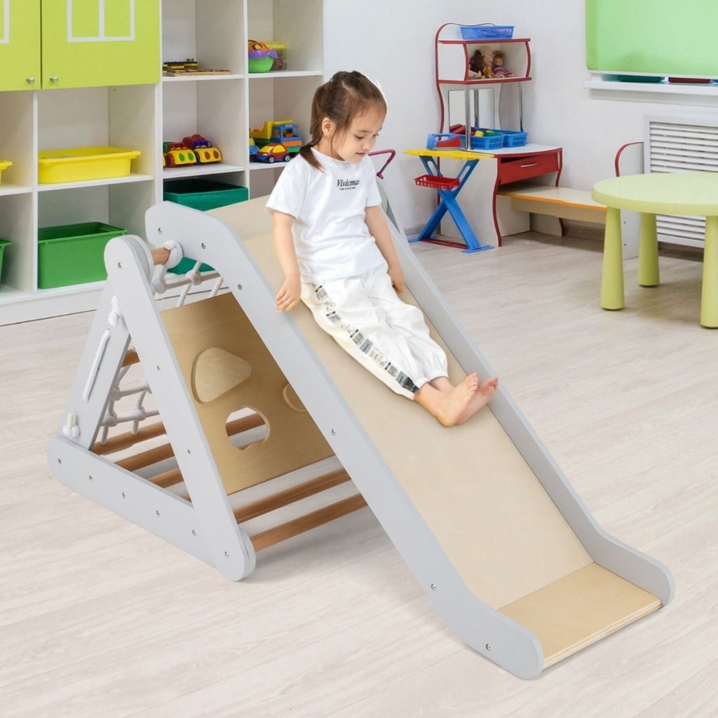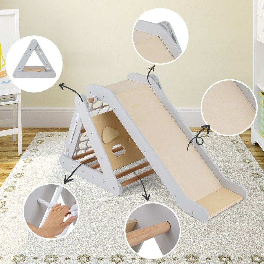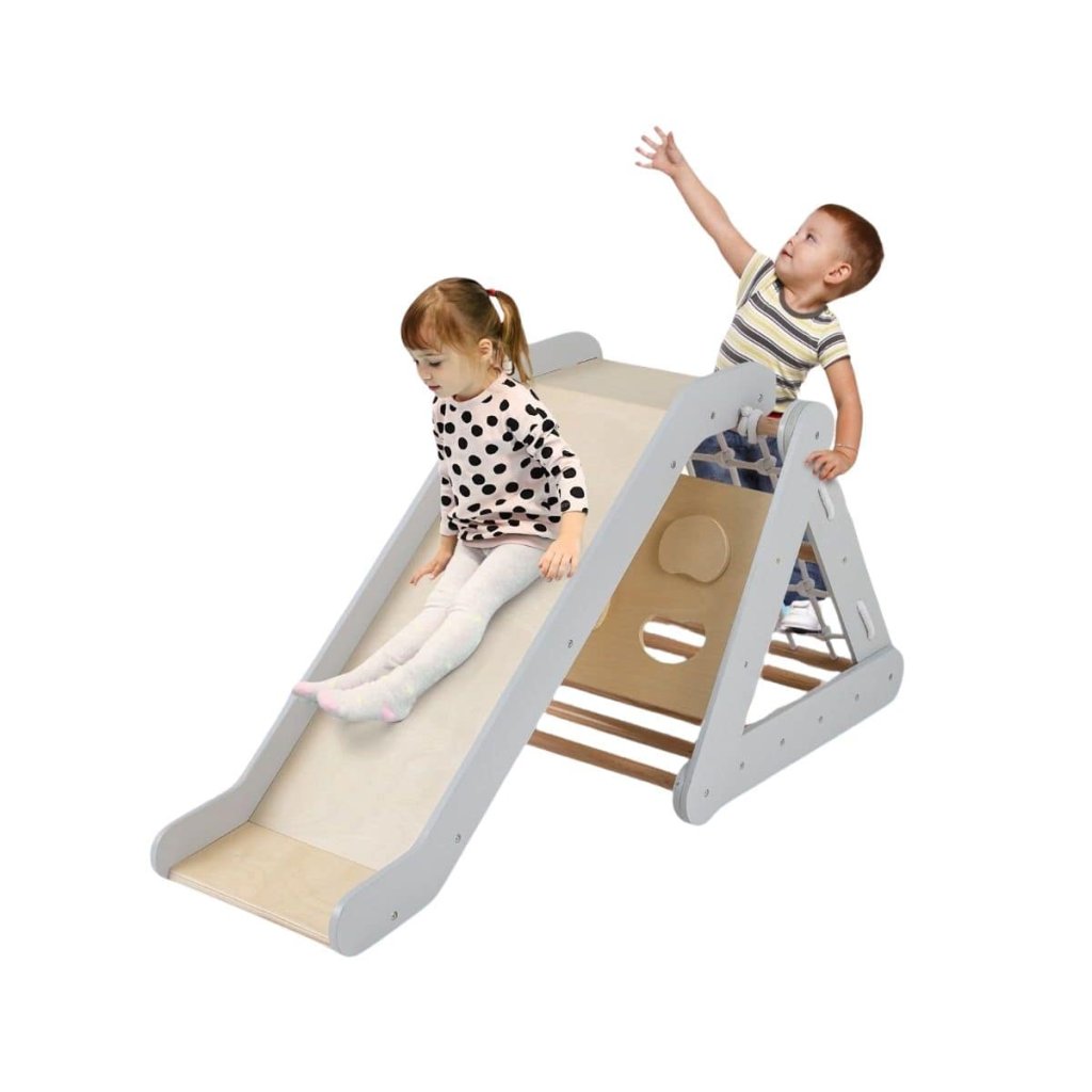 Montessori Piklerové trojuholník 4v1 s rampou a šmýkačkou šedý