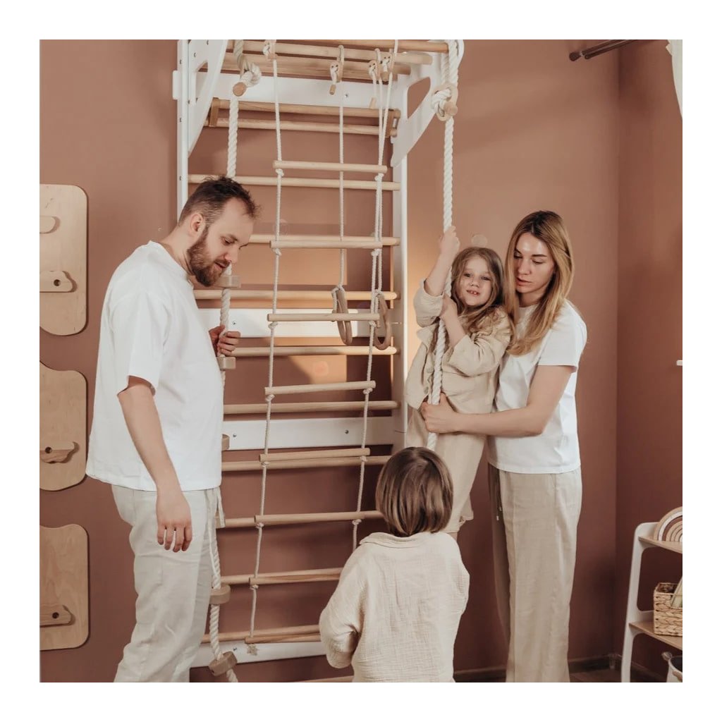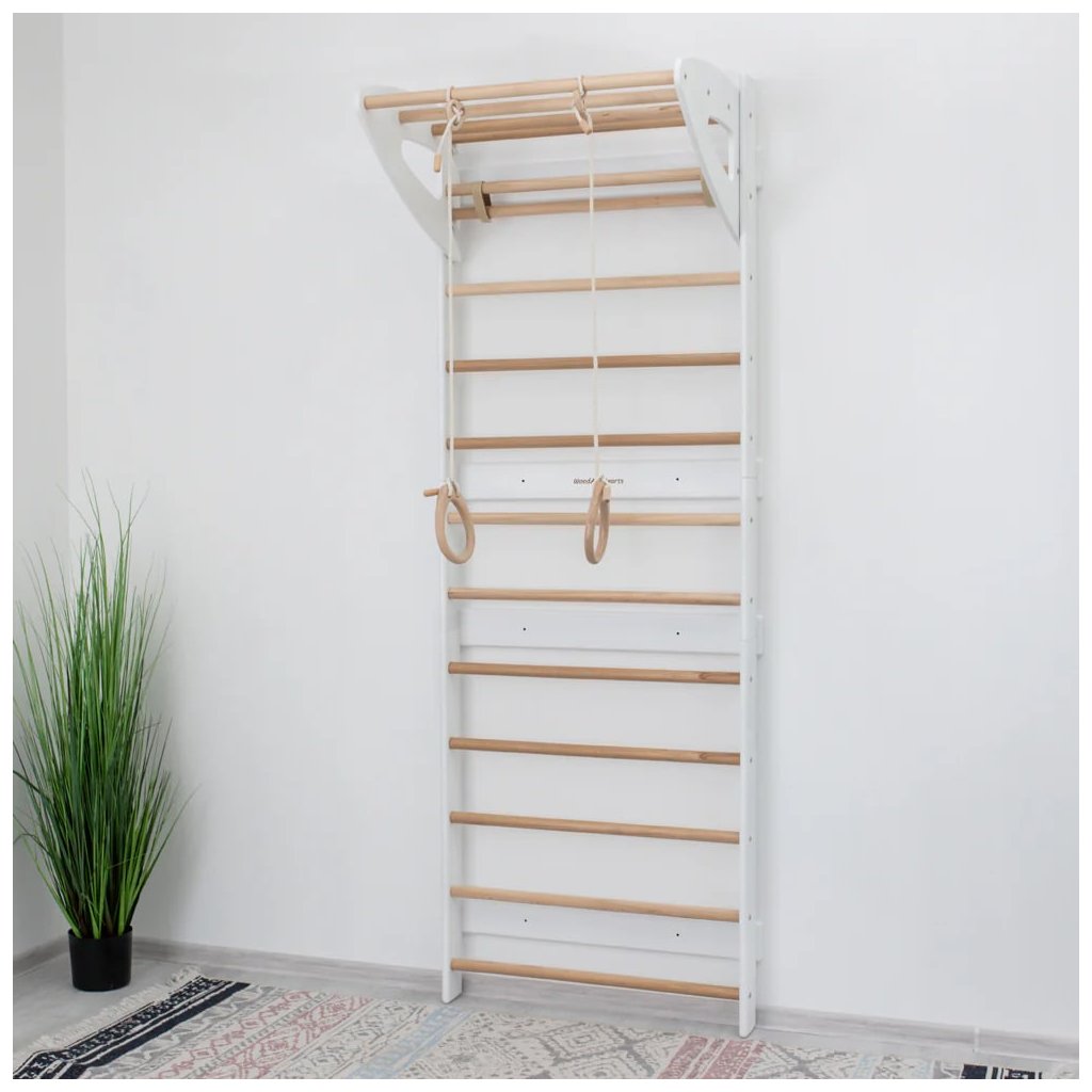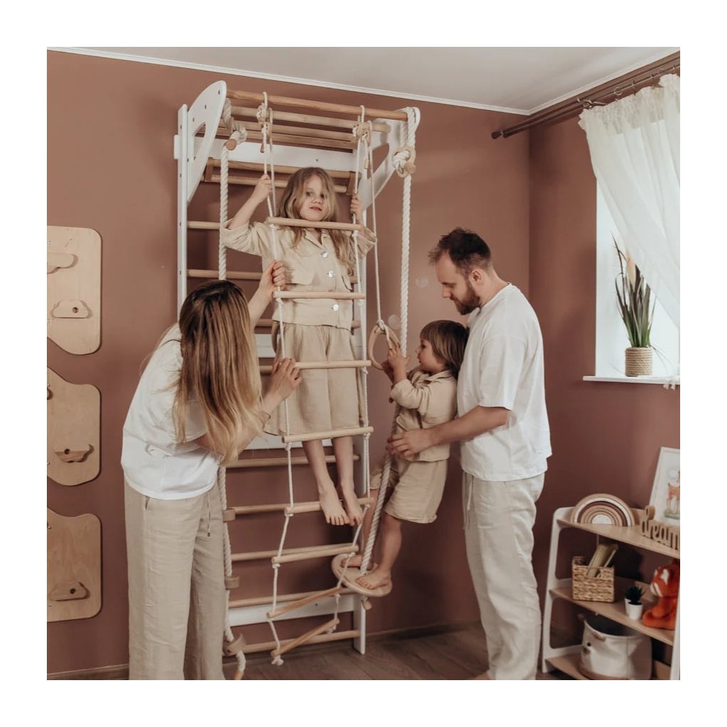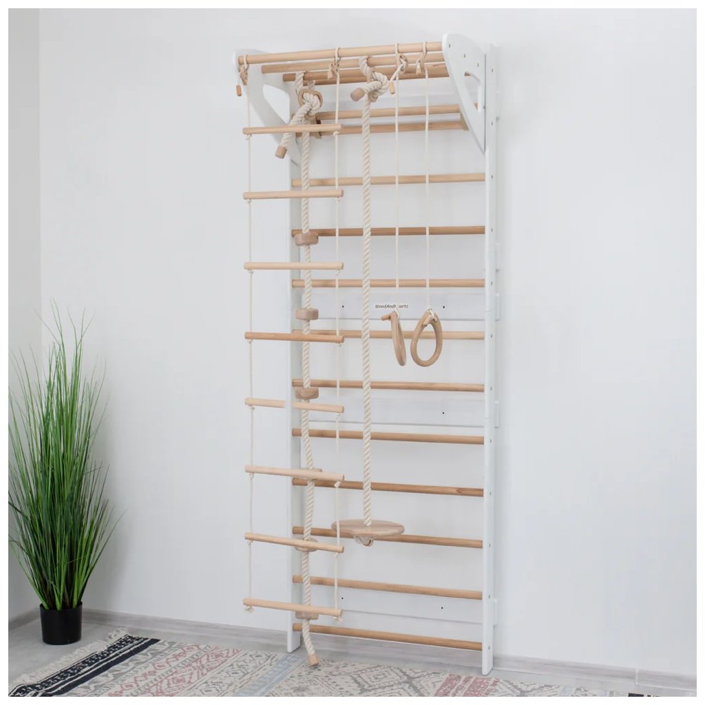Švédska stena - Swedish Wall – trojdielny variant je kvalitné domáce lezecké zariadenie určené pre deti i dospievajúcich, ktoré podporuje prirodzený pohyb, rozvoj sily, koordinácie a rovnováhy. Je vyrobená z pevného prírodného dreva s ekologickou povrchovou úpravou, neobsahuje žiadne škodlivé chemikálie a všetky hrany sú ručne brúsené a zaoblené pre maximálnu bezpečnosť. Trojdielna konštrukcia meria 228,4 cm na výšku, 82,6 cm na šírku a 63,2 cm do hĺbky. Je testovaná na nosnosť až 100 kg, pričom odporúčaná maximálna hmotnosť užívateľa je 60 kg. Stena sa montuje na pevný tehlový alebo betónový múr, prípadne na drevený či kovový rám. Dizajn kombinuje funkčnosť a estetiku - prírodné drevo vynikne v každom interiéri a prináša do detskej izby teplo aj štýl. Je možné ju doplniť o rôzne prvky, napríklad hrazdu, lano alebo gymnastické kruhy, ktoré rozširujú možnosti pohybu a hier. Trojdielna Swedish Wall je ideálnou voľbou pre rodičov, ktorí chcú deťom ponúknuť možnosť aktívneho pohybu priamo doma – bezpečne, zábavne av duchu škandinávskeho minimalizmu. Biele farebné prevedenie Rozmery rebrín: 228.4 x 82.6 x 63.2 cm Nosnosť: do 60 kg Vyrobené z: Bukového dreva, Brezové preglejkyDodatočné parametre