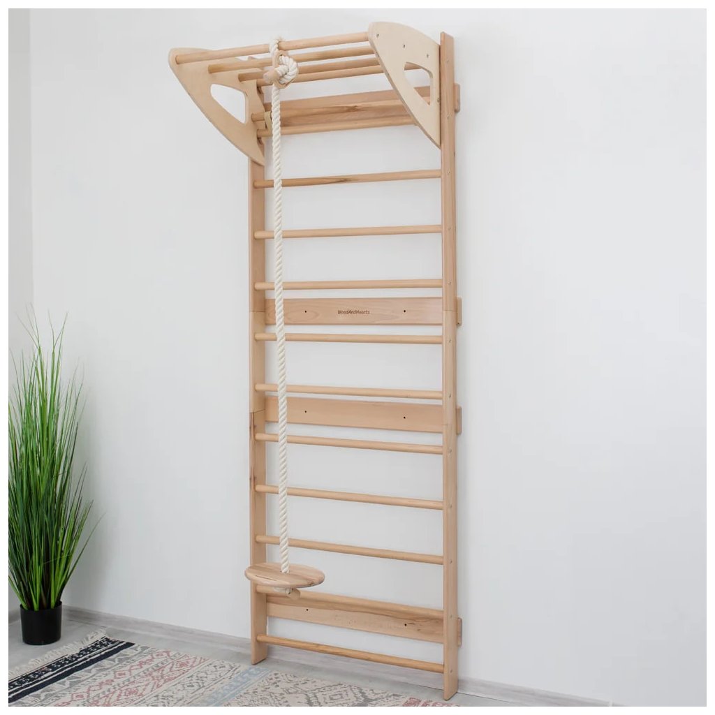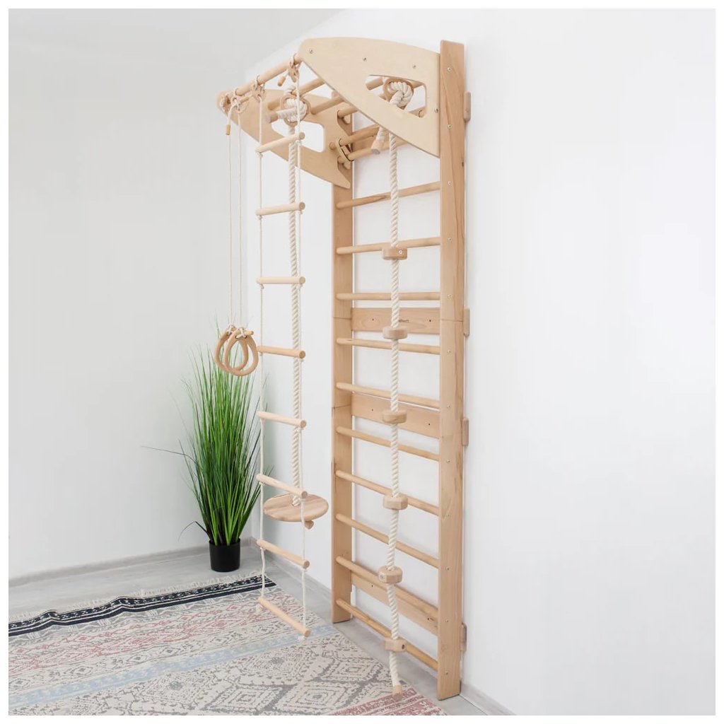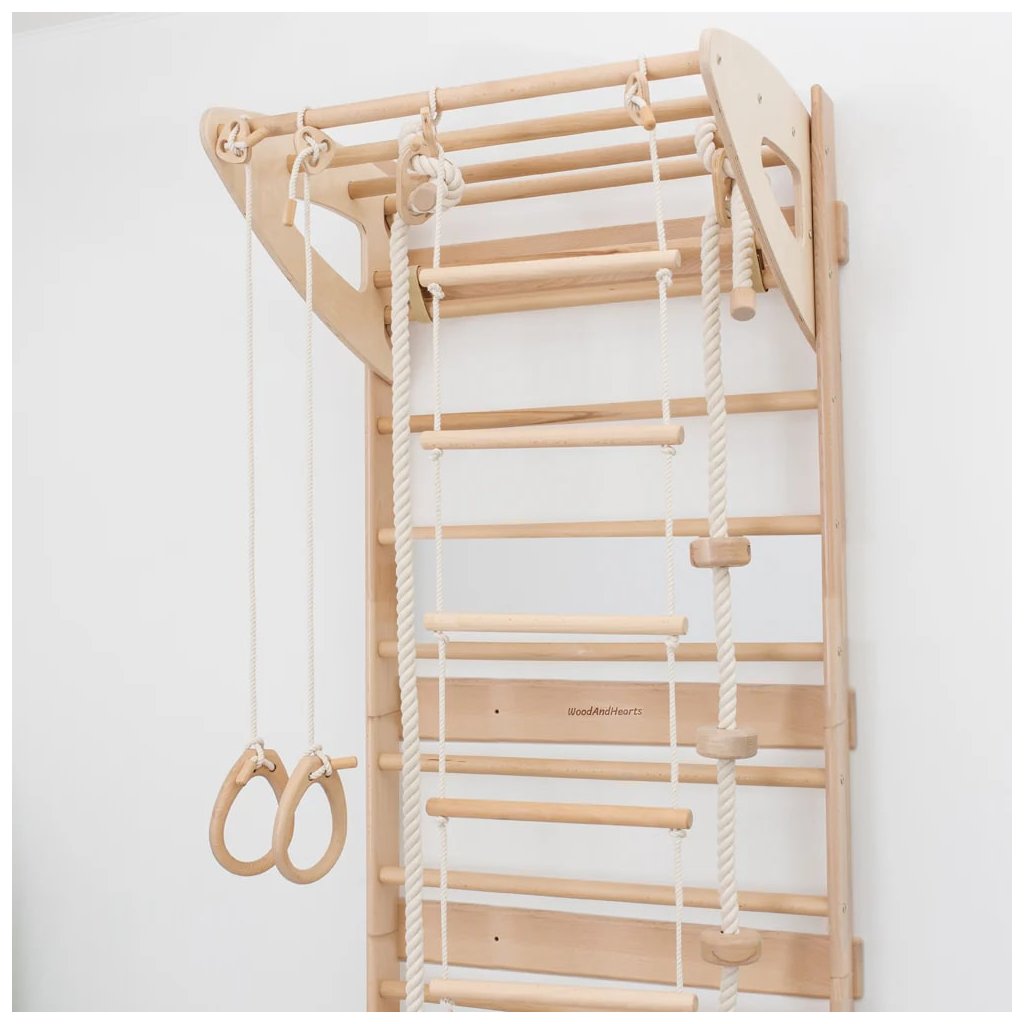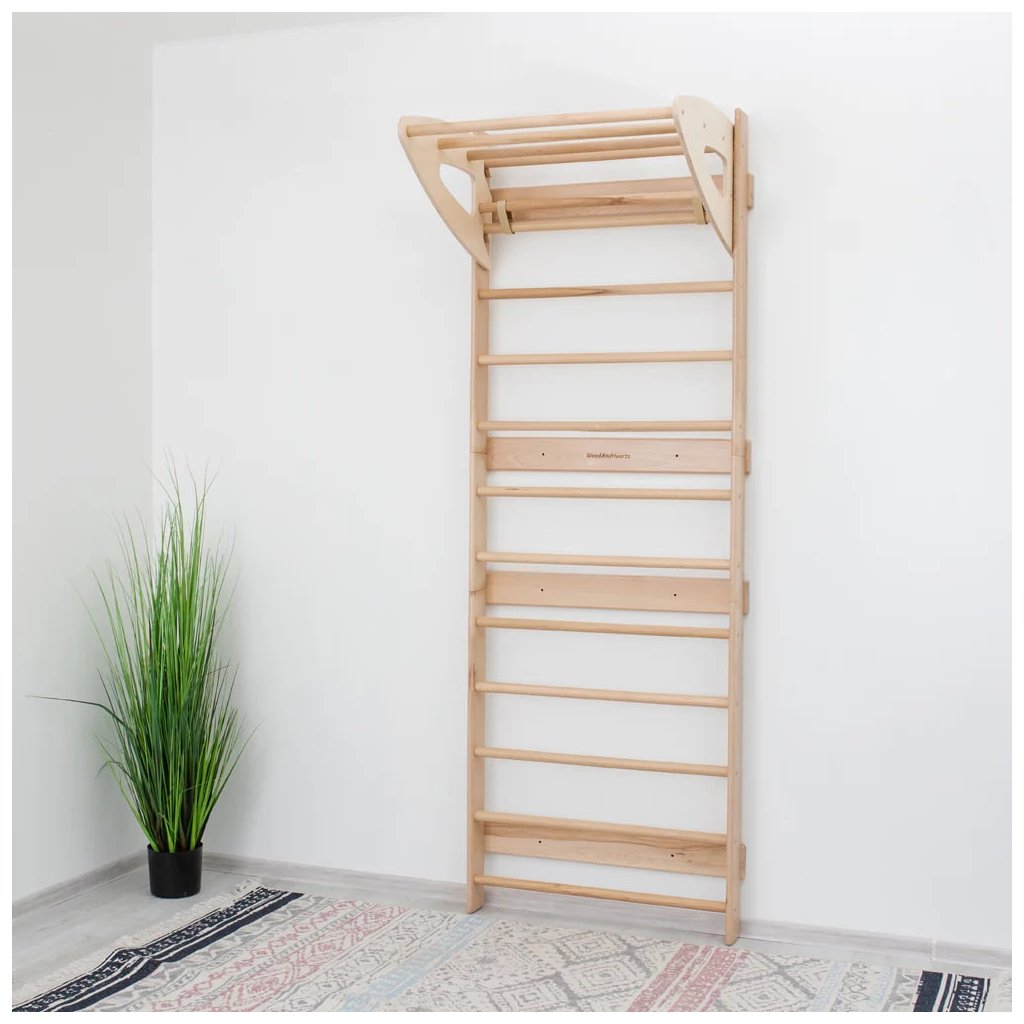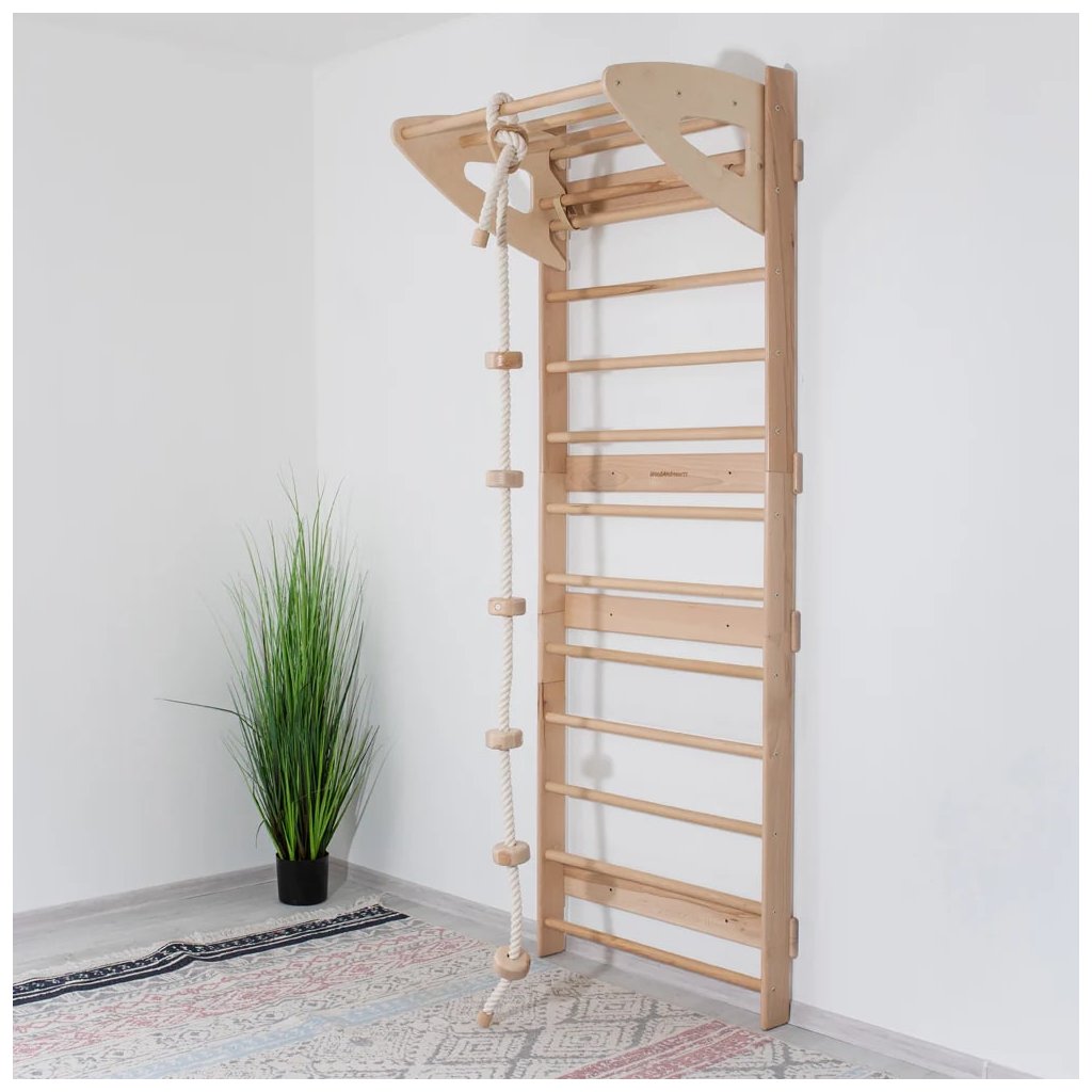 Švédska stena - Swedish Wall – trojdielny variant je kvalitné domáce lezecké zariadenie určené pre deti i dospievajúcich, ktoré podporuje prirodzený pohyb, rozvoj sily, koordinácie a rovnováhy. Je vyrobená z pevného prírodného dreva s ekologickou povrchovou úpravou, neobsahuje žiadne škodlivé chemikálie a všetky hrany sú ručne brúsené a zaoblené pre maximálnu bezpečnosť. Trojdielna konštrukcia meria 228,4 cm na výšku, 82,6 cm na šírku a 63,2 cm do hĺbky. Je testovaná na nosnosť až 100 kg, pričom odporúčaná maximálna hmotnosť užívateľa je 60 kg. Stena sa montuje na pevný tehlový alebo betónový múr, prípadne na drevený či kovový rám. Dizajn kombinuje funkčnosť a estetiku - prírodné drevo vynikne v každom interiéri a prináša do detskej izby teplo aj štýl. Je možné ju doplniť o rôzne prvky, napríklad hrazdu, lano alebo gymnastické kruhy, ktoré rozširujú možnosti pohybu a hier. Trojdielna Swedish Wall je ideálnou voľbou pre rodičov, ktorí chcú deťom ponúknuť možnosť aktívneho pohybu priamo doma – bezpečne, zábavne av duchu škandinávskeho minimalizmu. Natural farebné prevedenie Rozmery rebrín: 228.4 x 82.6 x 63.2 cm Nosnosť: do 60 kg Vyrobené z: Bukového dreva, Brezové preglejkyDodatočné parametre