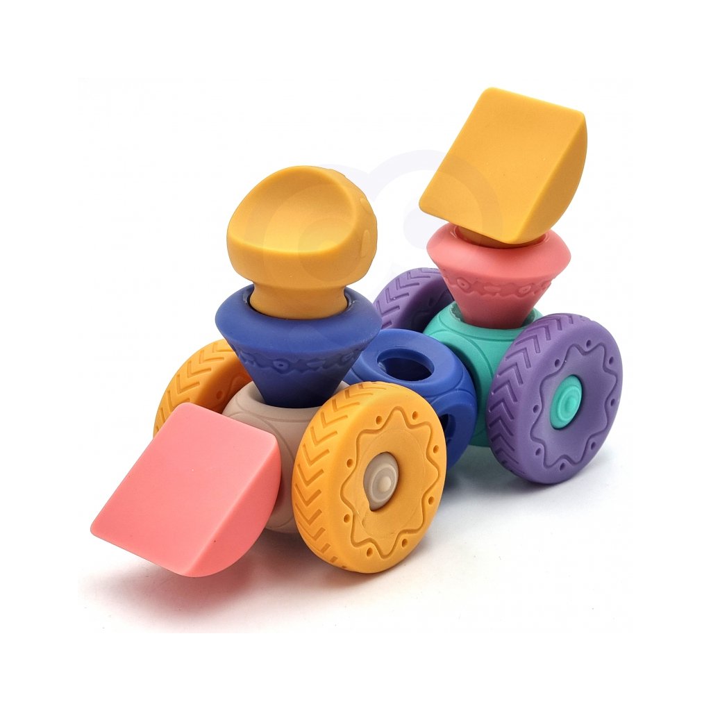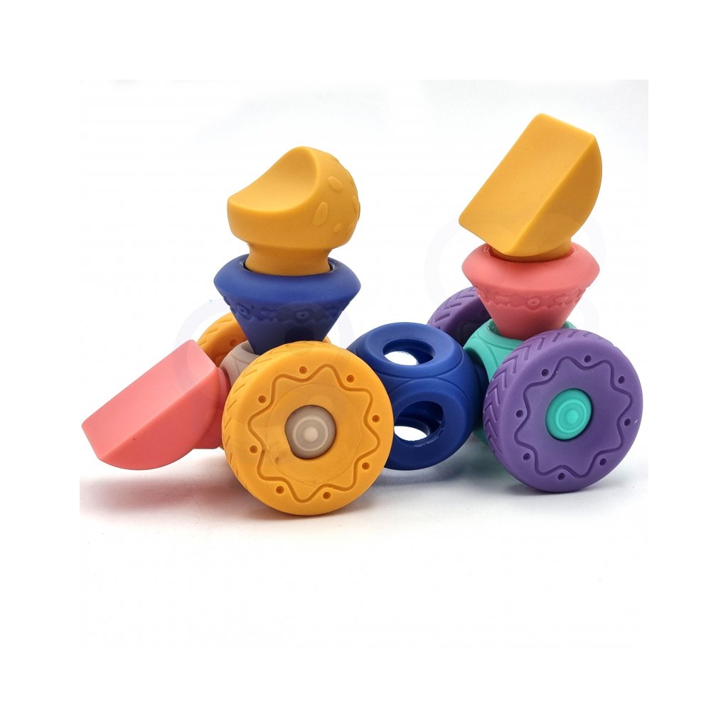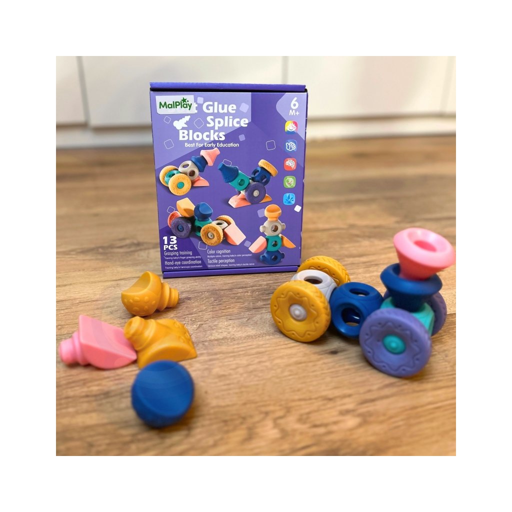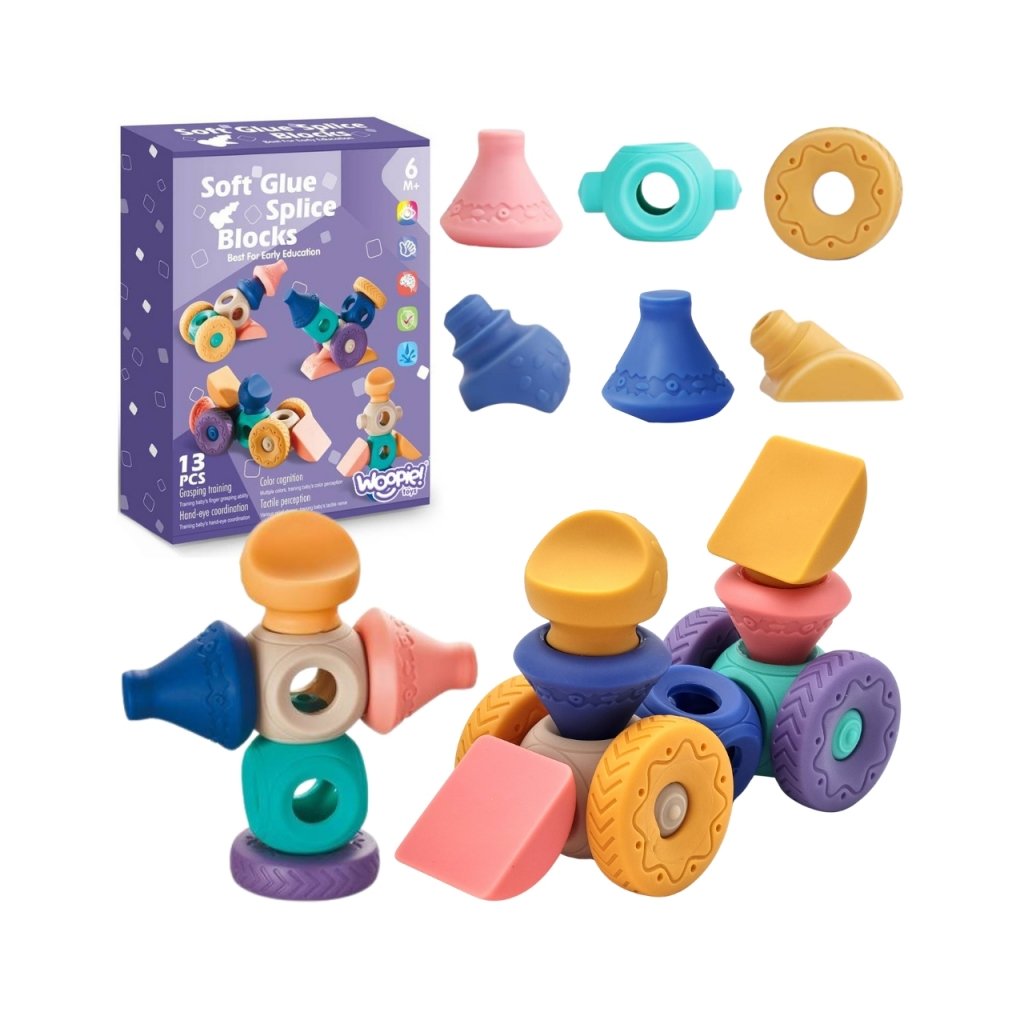 Senzomotorické konštrukčné kocky - 13dielna sada pre najmenšie deti od 6 mesiacov veku je skvelou hračkou, ktorá podporuje prirodzený rozvoj zmyslov, jemnej motoriky a tvorivosti. Mäkké farebné kocky sú vyrobené z kvalitného, ??bezpečného plastu príjemného na dotyk a ideálne sa hodia do malých detských ručičiek. Každá kocka má inú textúru, reliéfny vzor alebo motív zvieratka či geometrického tvaru, čo stimuluje hmat, zrak aj zvedavosť dieťaťa. Vďaka rôznym tvarom a spojovacím prvkom je možné kocky skladať na seba, spájať a vytvárať jednoduché konštrukcie alebo postavičky. Deti si tak precvičujú koordináciu oko-ruka, logické myslenie a kreativitu. Zaujímavým prvkom je aj možnosť kocky stláčať – pri stlačení vydávajú jemný pískavý zvuk, ktorý upúta pozornosť a podporuje sluchové vnímanie. Vďaka mäkkému materiálu sú úplne bezpečné, neobsahujú ostré hrany ani malé časti. Hračka pomáha rozvíjať jemnú motoriku, zmyslové vnímanie, rozpoznávanie tvarov a farieb aj schopnosť manipulácie s predmetmi. Je vhodná ako pre chlapcov, tak pre dievčatá a vďaka atraktívnemu baleniu je ideálnym darčekom pre malé deti. Rozmery jednej kocky sú približne 6 × 6 × 2 cm, celé balenie má rozmer asi 22,5 × 17,5 × 5,5 cm. Súprava obsahuje celkom 13 kociek. Parametre: Kocky - 6 × 6 × 2 cm Balenie: 22,5 × 17,5 × 5,5 cm Sada obsahuje: 13 kociek Materiál: mäkká gumaDodatočné parametre
