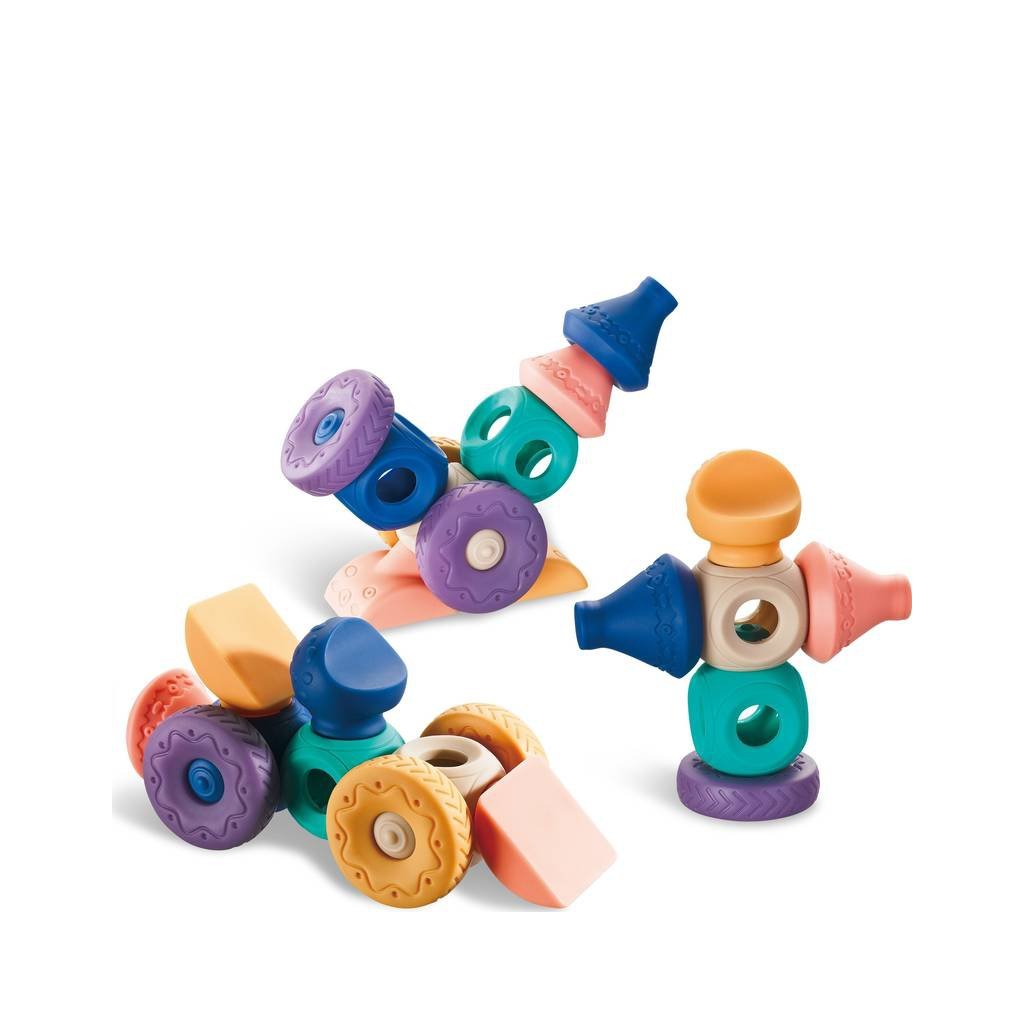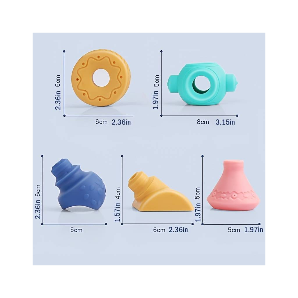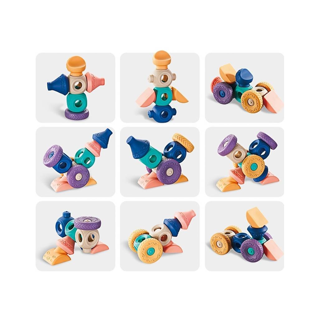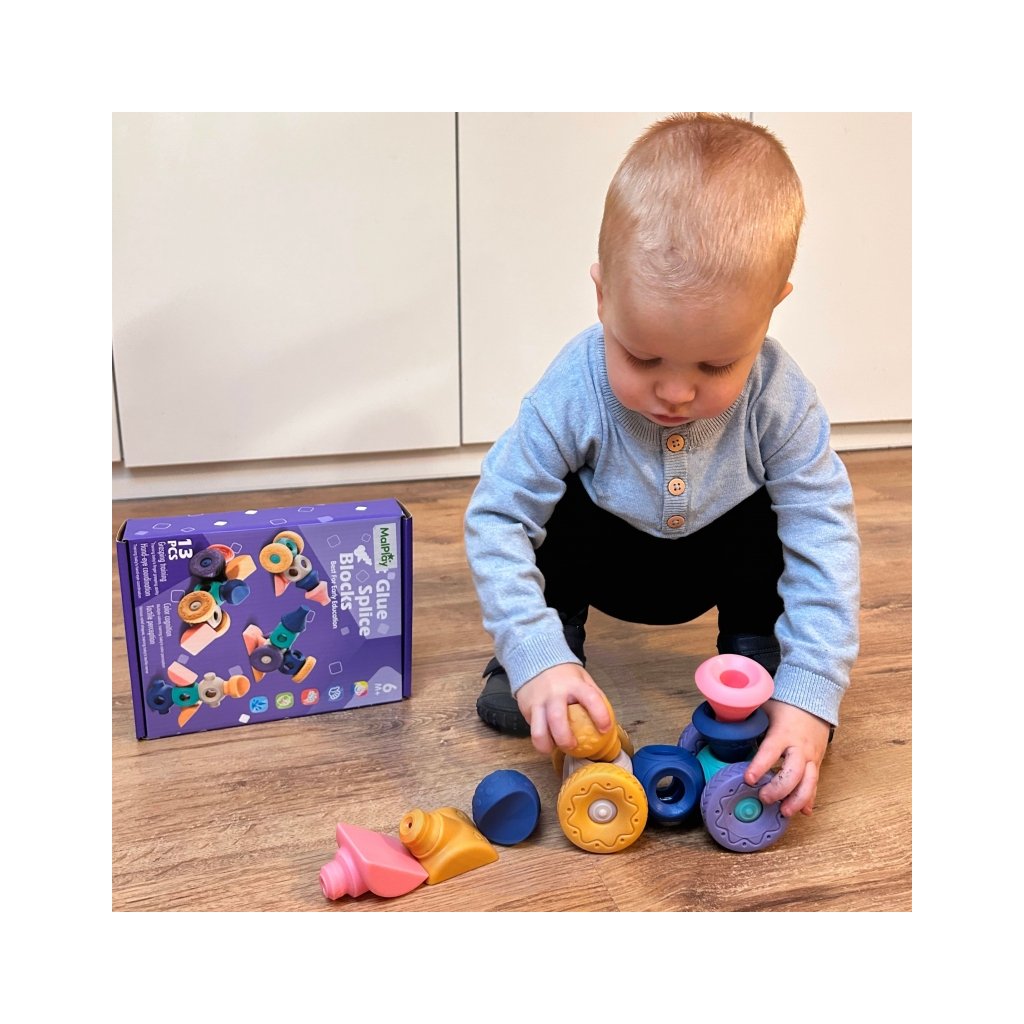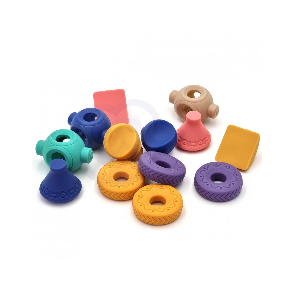 Senzomotorické konštrukčné kocky - 13dielna sada pre najmenšie deti od 6 mesiacov veku je skvelou hračkou, ktorá podporuje prirodzený rozvoj zmyslov, jemnej motoriky a tvorivosti. Mäkké farebné kocky sú vyrobené z kvalitného, ??bezpečného plastu príjemného na dotyk a ideálne sa hodia do malých detských ručičiek. Každá kocka má inú textúru, reliéfny vzor alebo motív zvieratka či geometrického tvaru, čo stimuluje hmat, zrak aj zvedavosť dieťaťa. Vďaka rôznym tvarom a spojovacím prvkom je možné kocky skladať na seba, spájať a vytvárať jednoduché konštrukcie alebo postavičky. Deti si tak precvičujú koordináciu oko-ruka, logické myslenie a kreativitu. Zaujímavým prvkom je aj možnosť kocky stláčať – pri stlačení vydávajú jemný pískavý zvuk, ktorý upúta pozornosť a podporuje sluchové vnímanie. Vďaka mäkkému materiálu sú úplne bezpečné, neobsahujú ostré hrany ani malé časti. Hračka pomáha rozvíjať jemnú motoriku, zmyslové vnímanie, rozpoznávanie tvarov a farieb aj schopnosť manipulácie s predmetmi. Je vhodná ako pre chlapcov, tak pre dievčatá a vďaka atraktívnemu baleniu je ideálnym darčekom pre malé deti. Rozmery jednej kocky sú približne 6 × 6 × 2 cm, celé balenie má rozmer asi 22,5 × 17,5 × 5,5 cm. Súprava obsahuje celkom 13 kociek. Parametre: Kocky - 6 × 6 × 2 cm Balenie: 22,5 × 17,5 × 5,5 cm Sada obsahuje: 13 kociek Materiál: mäkká gumaDodatočné parametre