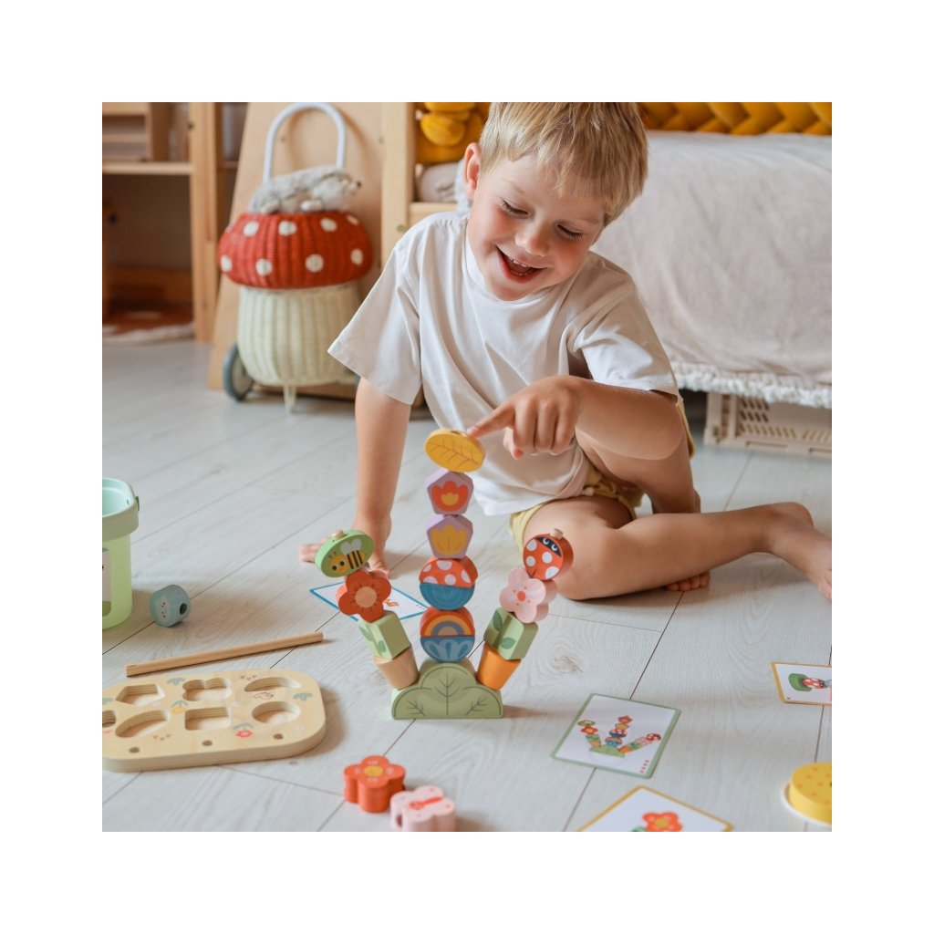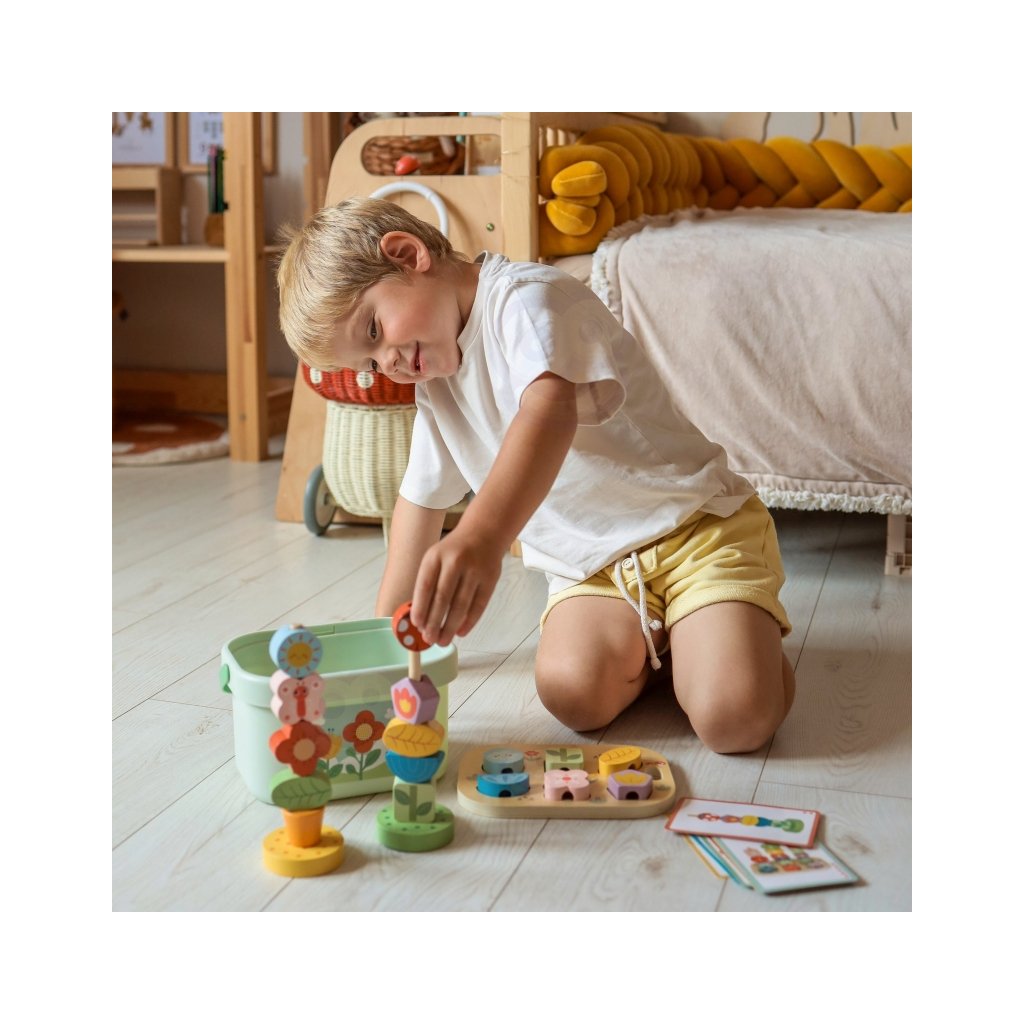 Vzdelávací box ponúka päť rôznych aktivít v jednom praktickom balení, ktoré zaujme každé dieťa od troch rokov. Hračka rozvíja jemnú motoriku, koordináciu ruka-oko, logické myslenie, priestorovú predstavivosť aj schopnosť sústredenia. Je navrhnutá podľa princípov Montessori pedagogiky, ktorá podporuje prirodzené učenie prostredníctvom hry a skúmania. Box je vyrobený z kvalitného dreva a natretý netoxickými, bezpečnými farbami. Má rozmery približne 21,8 × 15,4 × 12 cm. Vnútri sa skrýva niekoľko herných aktivít - navliekanie korálikov pre rozvoj jemnej motoriky, triedenie tvarov a farieb pre tréning logického myslenia, stavanie podľa vzorov pre rozvoj priestorovej predstavivosti a ďalšie úlohy podporujúce pozornosť aj tvorivosť. Praktický drevený box zároveň slúži ako úložný priestor, takže všetky diely je možné ľahko upratať a prenášať. Vďaka svojmu dizajnu a multifunkčnosti je táto hračka ideálna pre domáce aj škôlkové prostredie. Drevený box „Kúzelná záhrada“ je skvelou voľbou pre rodičov, ktorí chcú dieťaťu ponúknuť zábavnú a zároveň vzdelávaciu hračku, ktorá podporuje samostatnosť, zvedavosť a kreativitu. Parametre: Rozmery: 21,8 x 15,4 x 12 cm Materiál: drevo Vhodné pre deti od 3 rokovDodatočné parametre