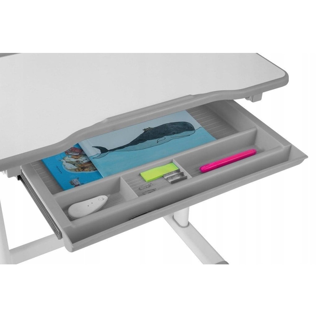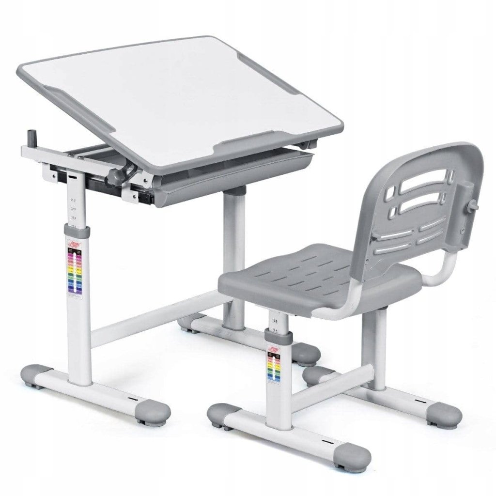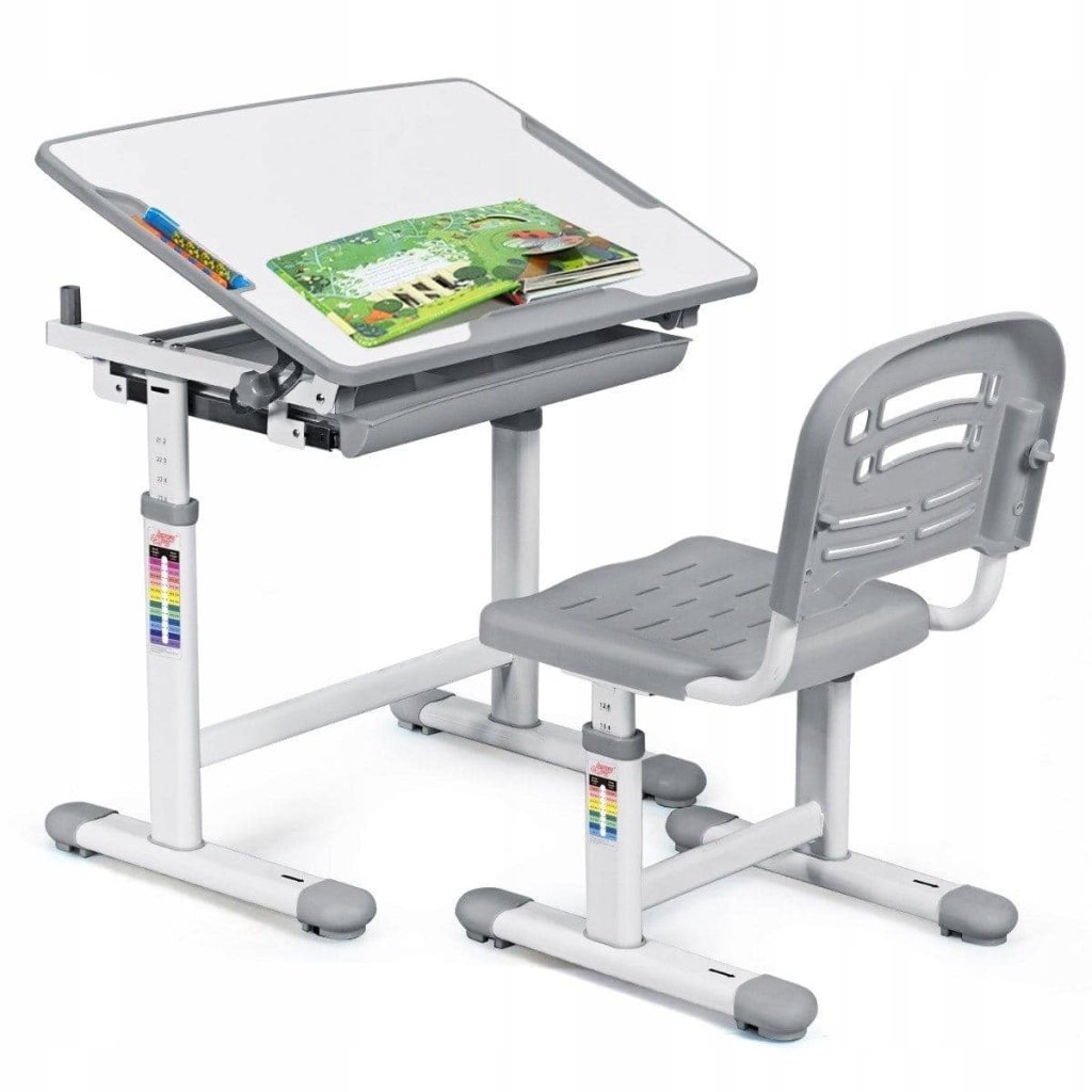 Moderný a ergonomicky navrhnutý písací stôl s nastaviteľnou stoličkou je ideálnou voľbou pre školákov aj predškolákov. Tento funkčný set poskytuje vášmu dieťaťu pohodlné a zdravé prostredie na učenie, kreslenie aj čítanie. Vďaka premyslenému designu rastie spolu s dieťaťom a podporuje správne držanie tela už od útleho veku. Stôl je výškovo nastaviteľný, takže ho ľahko prispôsobíte veku a výške dieťaťa. Pracovnú dosku je možné naklápať v niekoľkých uhloch, čo je ideálne na kreslenie, písanie aj čítanie – pomáha tak predchádzať bolestiam chrbta a krčnej chrbtice. Súčasťou stola je praktická výsuvná zásuvka na ukladanie písacích potrieb a ďalšieho vybavenia. Stolička je tiež výškovo nastaviteľná a ergonomicky tvarovaná na podporu zdravého sedenia. Otvory v operadle a sedadle zaisťujú dostatočné vetranie a pohodlie pri dlhšom sedení. Tento set je vyrobený z kvalitných a odolných materiálov, ktoré spĺňajú bezpečnostné normy pre detský nábytok. Neutrálne šedé prevedenie sa hodí ako do dievčenskej, tak chlapčenskej izby a ľahko sa kombinuje s ďalšími prvkami interiéru. Pokiaľ hľadáte praktický, bezpečný a štýlový písací stôl, ktorý porastie spolu s vašim dieťaťom, tento set je ideálnym riešením. Vhodný pre deti približne od 4 do 12 rokov. Parametre: Materiál: vysoko kvalitné MDF, PP plast a kov Hmotnosť: 15 kg Farba: šedý Maximálne zaťaženie: 80 kg Rozmery: 34,5 × 36,5 × 32-44 cm Rozmery stola: 66 x 47 x 54,5-76 cmDodatočné parametre