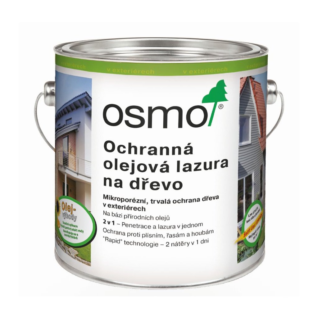 Ochranná olejová lazúra OSMO je polomatná, transparentná lazúra, na báze prírodných voskov a olejov, určená k ochrane dreva v exteriéri. Po nátere sú stále na dreve viditeľné letokruhy. Vyniká dvojnásobnou výdatnosťou - 2 v 1- natrie dvojnásobok než obvyklá farba. Ochranná olejová lazúra chráni drevo pred napadnutím riasami, pliesňami a hubami a je mimoriadne odolná voči UV žiareniu a poveternostným vplyvom.