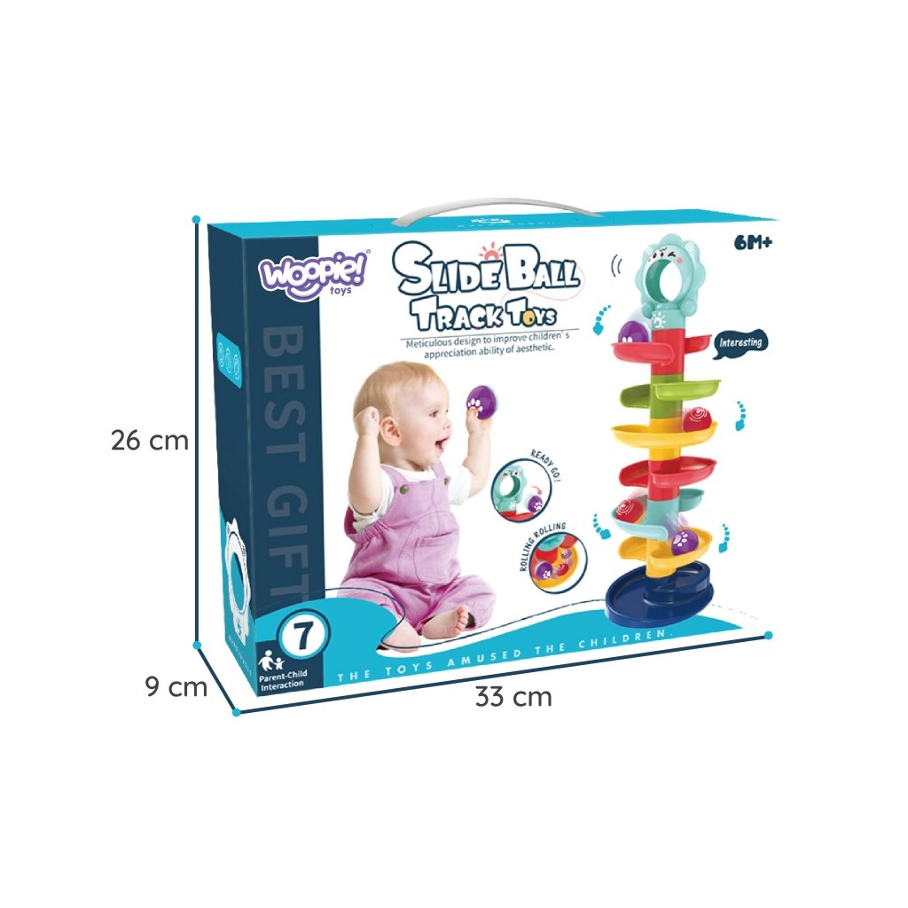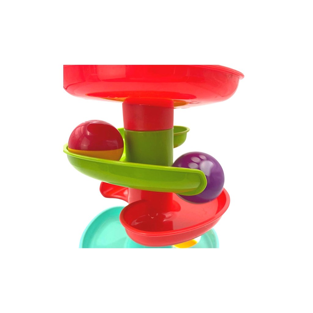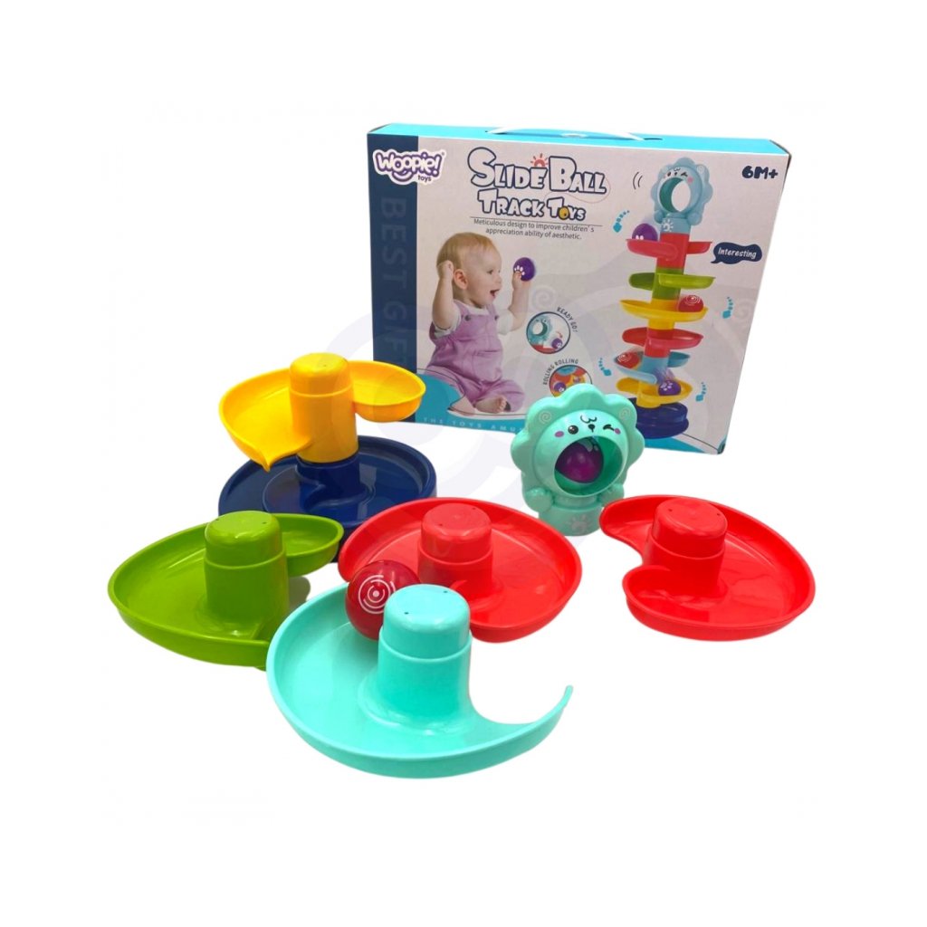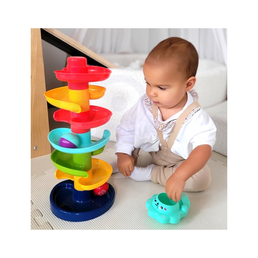 Farebný guľodróm je ideálna hračka pre najmenšie deti, ktoré začínajú objavovať svet okolo seba. Sada sa skladá z 8 farebných plastových dielov, ktoré je možné jednoducho spojiť do stabilnej špirály. Súčasťou sú dve ľahké guličky, ktoré sa po spustení z vrchu kotúľajú dole a vydávajú jemný zvuk. Fanúšikovia dieťa tak rozvíja koordináciu pohybu očí a rúk, učí sa vnímať a trénuje jemnú motoriku. Hračka vyvíja: - koordinácia oko-ruka, - manuálne zručnosti Parametre: Rozmery: 44 × 17 × 17 cm Materiál: plast Vhodné pre deti: od 6 mesiacovDodatočné parametre