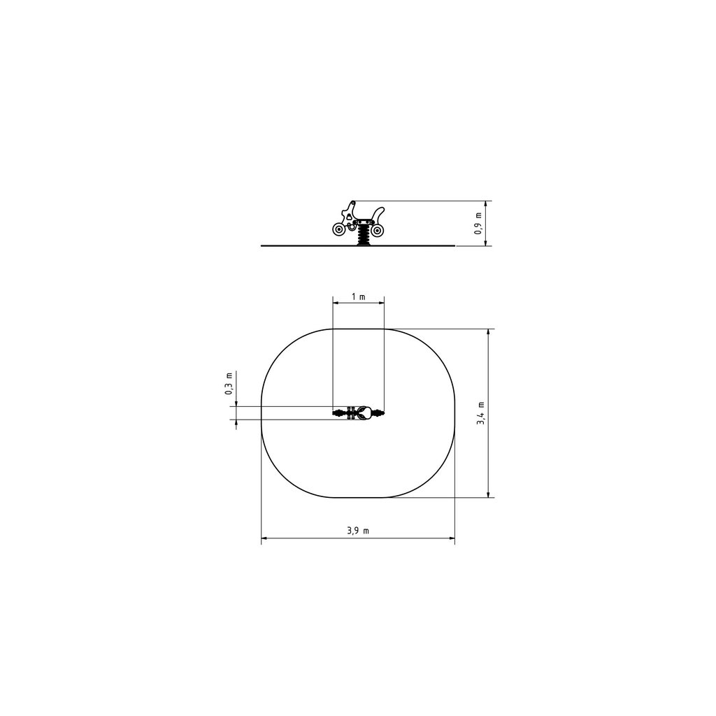 Výška pádu pružinovej hojdačky Motorka - B je 0,5 m a preto nemusí mať dopadové plochy tlmiace pád, stačí iba udržiavaný trávnik. V prípade umiestnenia pružinovej hojdačky na spevnenú plochu (napr. betón, asfalt a pod.), alebo pokiaľ hrozí vyšlapanie trávnika v okolí pružinovej hojdačky, odporúčame položiť gumovú podložku pod pružinové hojdačky.