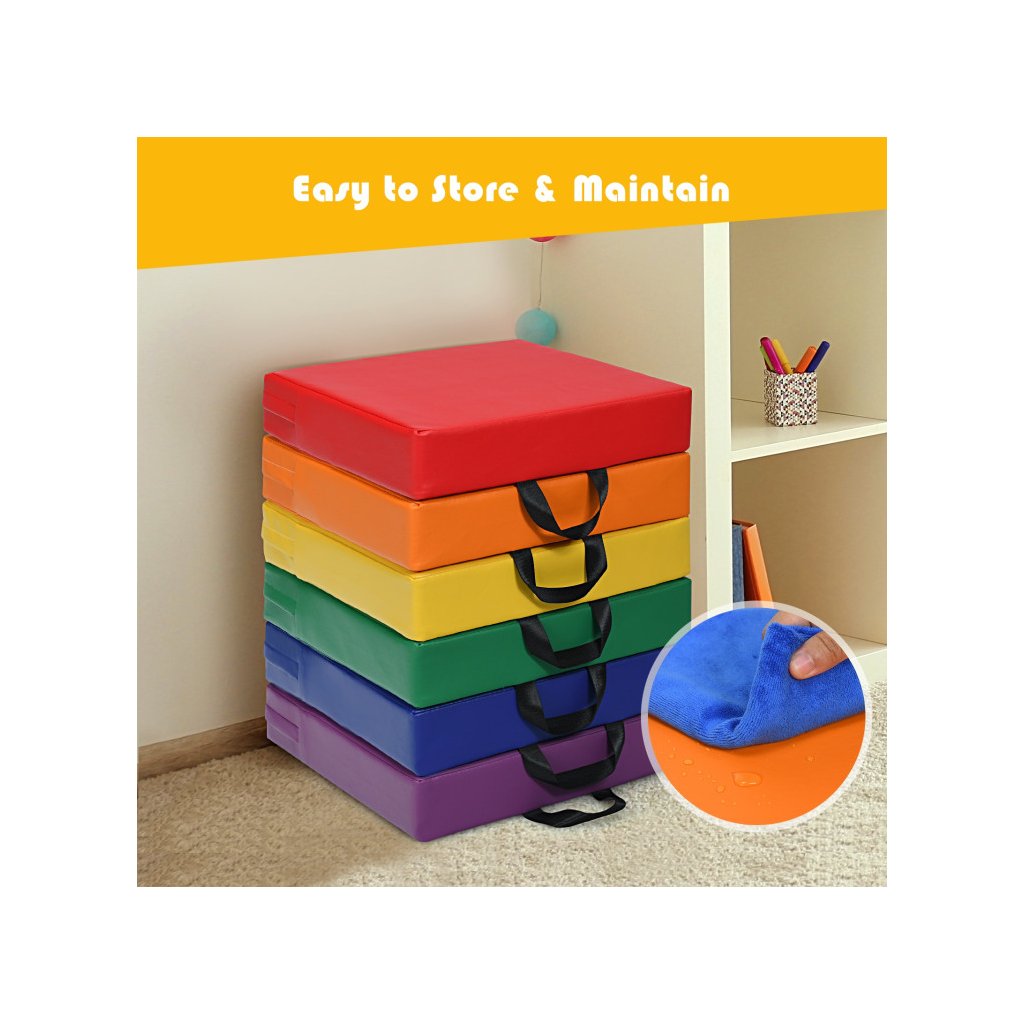 Vďaka skvelému dizajnu a pohodlným držadlám na prenášanie si tieto podložky môžete ľahko vziať so sebou, nech ste kdekoľvek. Mäkká podlahová podložka vyrobená z vysoko kvalitnej PU kože a elastickej EPE peny poskytuje pohodlný a bezpečný povrch na sedenie. V závislosti na vašich potrebách ju možno použiť aj ako hraciu podložku pre deti. Poťah možno ľahko čistí. Špecifikácia: Farba: Viacfarebná Materiál: PU, EPE pena Rozmery v rozloženom stave: 38 x 38 x 9 cm (Š x V) Čistá hmotnosť: 5,5 kg Rozsah dodávky: 6 x podložka 1 x návodDodatočné parametre