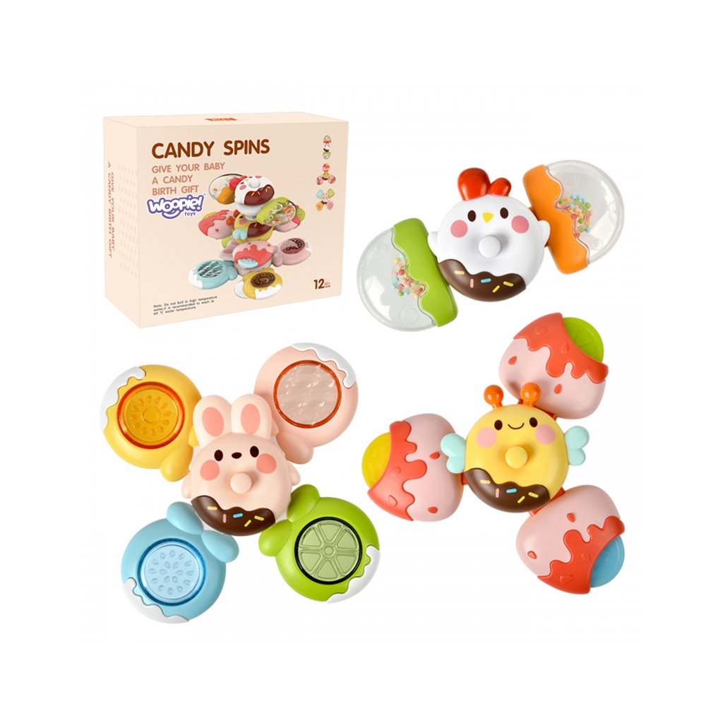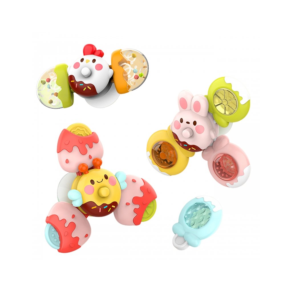 Senzorická sada Spinnerov urobí na vaše dieťa skvelý dojem. Spinnery si dieťa môže vziať kamkoľvek a pripevniť všade vďaka gumovým prísavkám. Spinner môžete pripevniť na sklo počas jazdy v aute, ako aj na iné rovné povrchy. Ložiská zaručujú dlhú rotáciu. Odnímateľné prvky vám umožnia kombinovať ich ľubovoľným spôsobom a je tiež možné kombinovať spinnery dohromady. Hračky majú gumové a hrkajúce prvky, ktoré rozvíjajú zmysly dieťaťa. Hra trénuje obratnosť ruky dieťaťa a zlepšuje koordináciu ruka-oko. Parametre: 3 spinnery v balení Materiál: plast Vhodné pre deti: od 18 mesiacov vekuDodatočné parametre